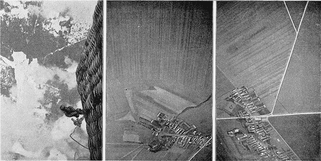 | Les Karpathes (2.500 m.) vus d'une altitude de 4.900 mètres. | Villages et champs hongrois photographiés à 4.500 mètres de hauteur. |