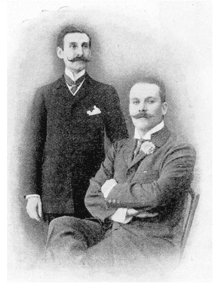 | M. Loubet et son fils, M. Paul Loubet, dans leur abri à la chasse de Rio-Frio. --Phot, M. de Baena. |