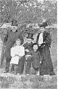 L'excursion à Cintra, le samedi 28 octobre, eut surtout le caractère d'une partie de campagne, et là, plus qu'ailleurs, l'étiquette protocolaire se départit de sa rigueur, laissant libre carrière à un aimable enjouement, dont les souverains portugais donnaient l'exemple. C'est ainsi qu'à l'issue du déjeuner au Palais Royal, la reine Amélie organisa une séance de photographie, invitant avec une bonne grâce charmante tous les convives à la suivre devant les objectifs préparés par les opérateurs de L'Illustration. Après le groupe général, elle voulut un groupe plus intime, à l'arrangement duquel elle se fit un plaisir de procéder elle-même. Le président Loubet était placé à sa gauche, le roi à sa droite; derrière eux se tenaient le prince royal et le duc d'Oporto, frère du roi. La pose, excellente, favorisa la réussite des clichés.