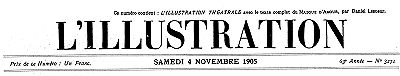 Project Gutenberg's L'Illustration, No. 3271, 4 Novembre 1905, by Various This eBook is for the use of anyone anywhere at no cost and with almost no restrictions whatsoever. You may copy it, give it away or re-use it under the terms of the Project Gutenberg License included with this eBook or online at www.gutenberg.org Title: L'Illustration, No. 3271, 4 Novembre 1905 Author: Various Release Date: July 9, 2011 [EBook #36676] Language: French Character set encoding: ISO-8859-1 *** START OF THIS PROJECT GUTENBERG EBOOK L'ILLUSTRATION, NO. 3271, 4 NOVEMBRE 1905 *** Produced by Jeroen Hellingman and Rénald Lévesque