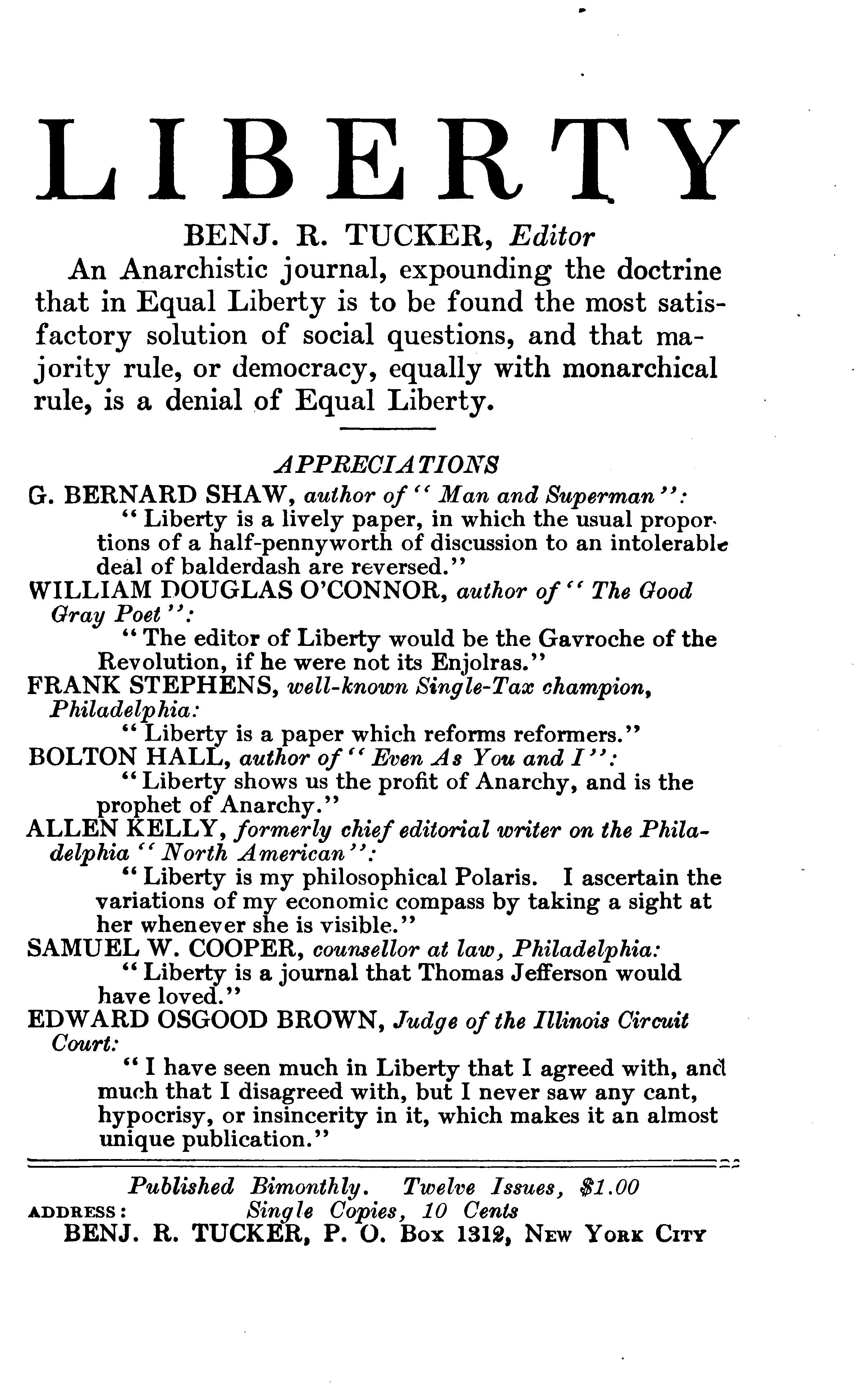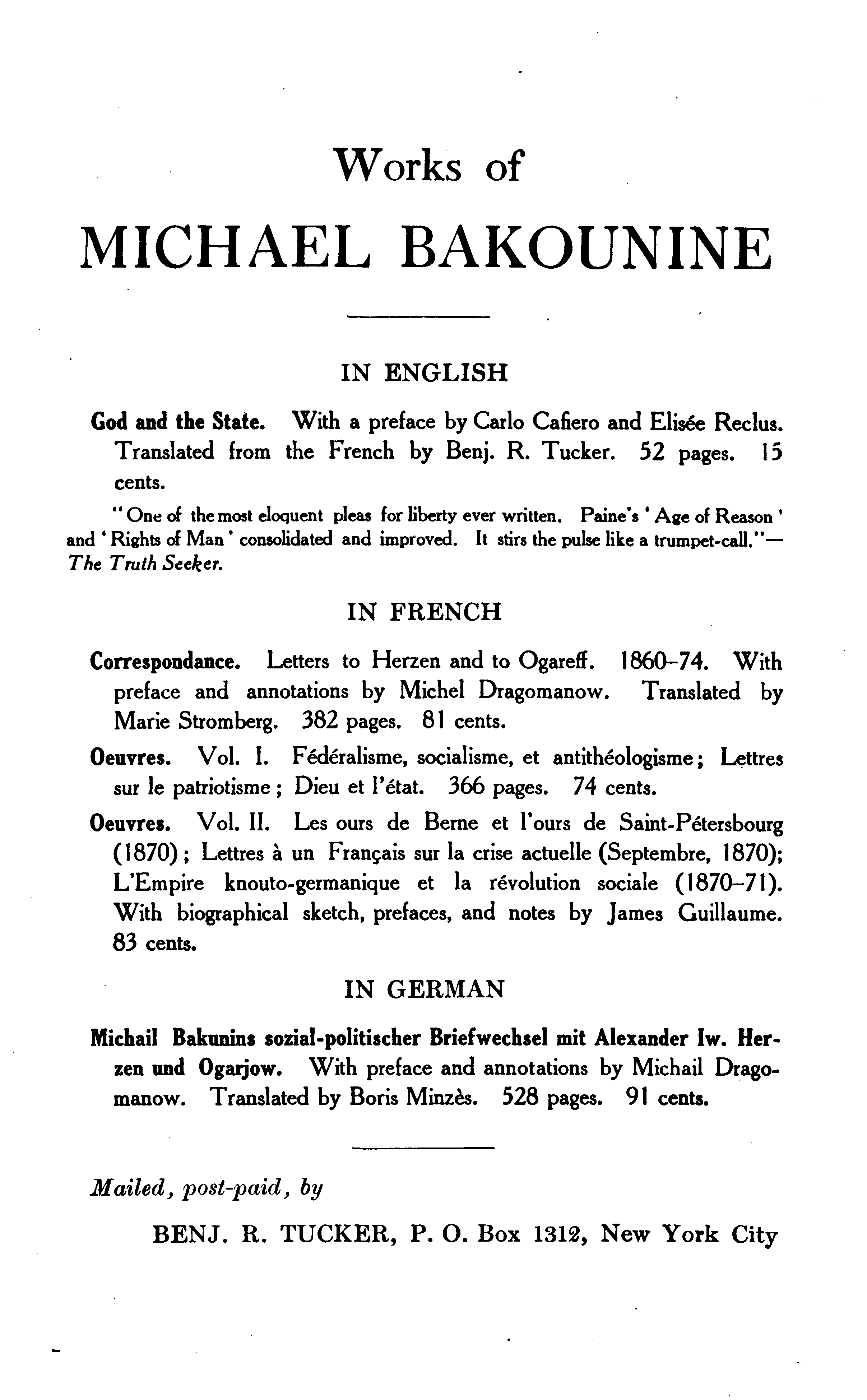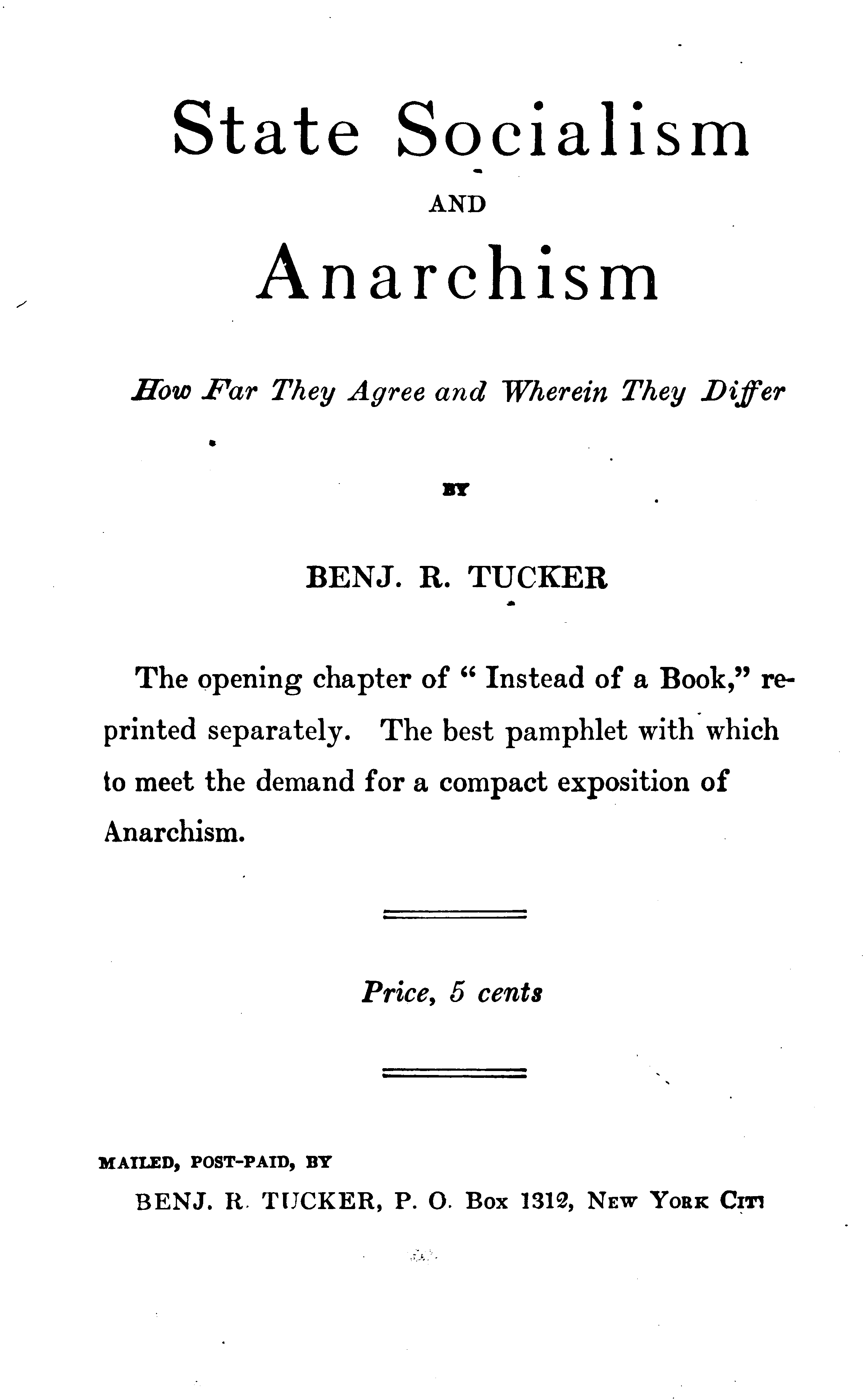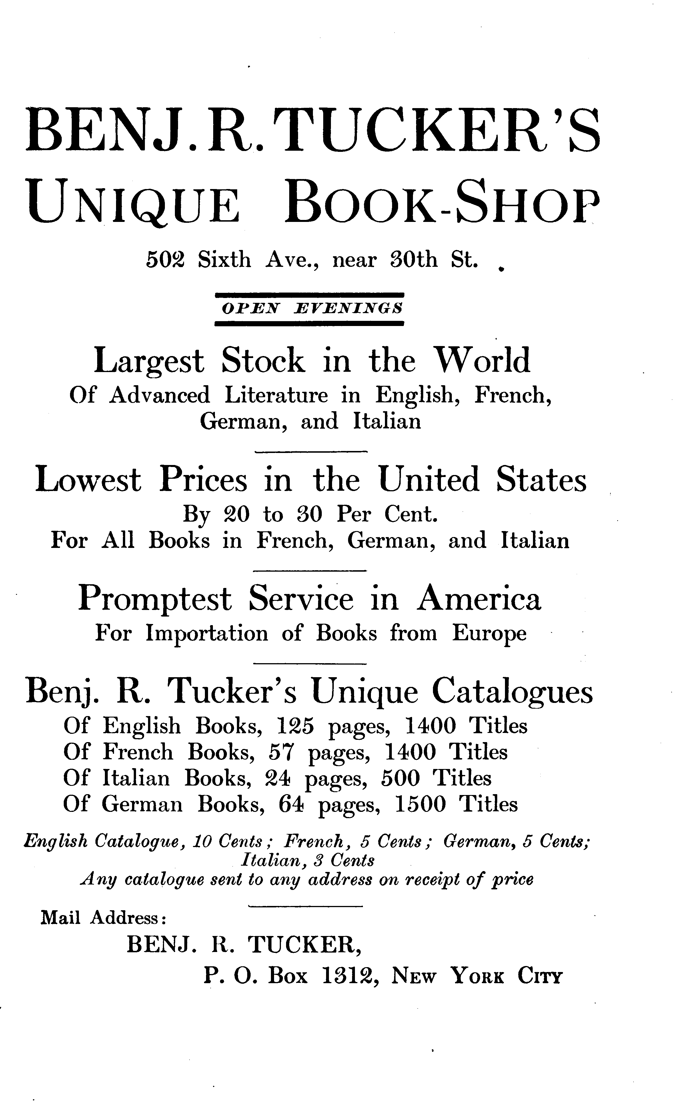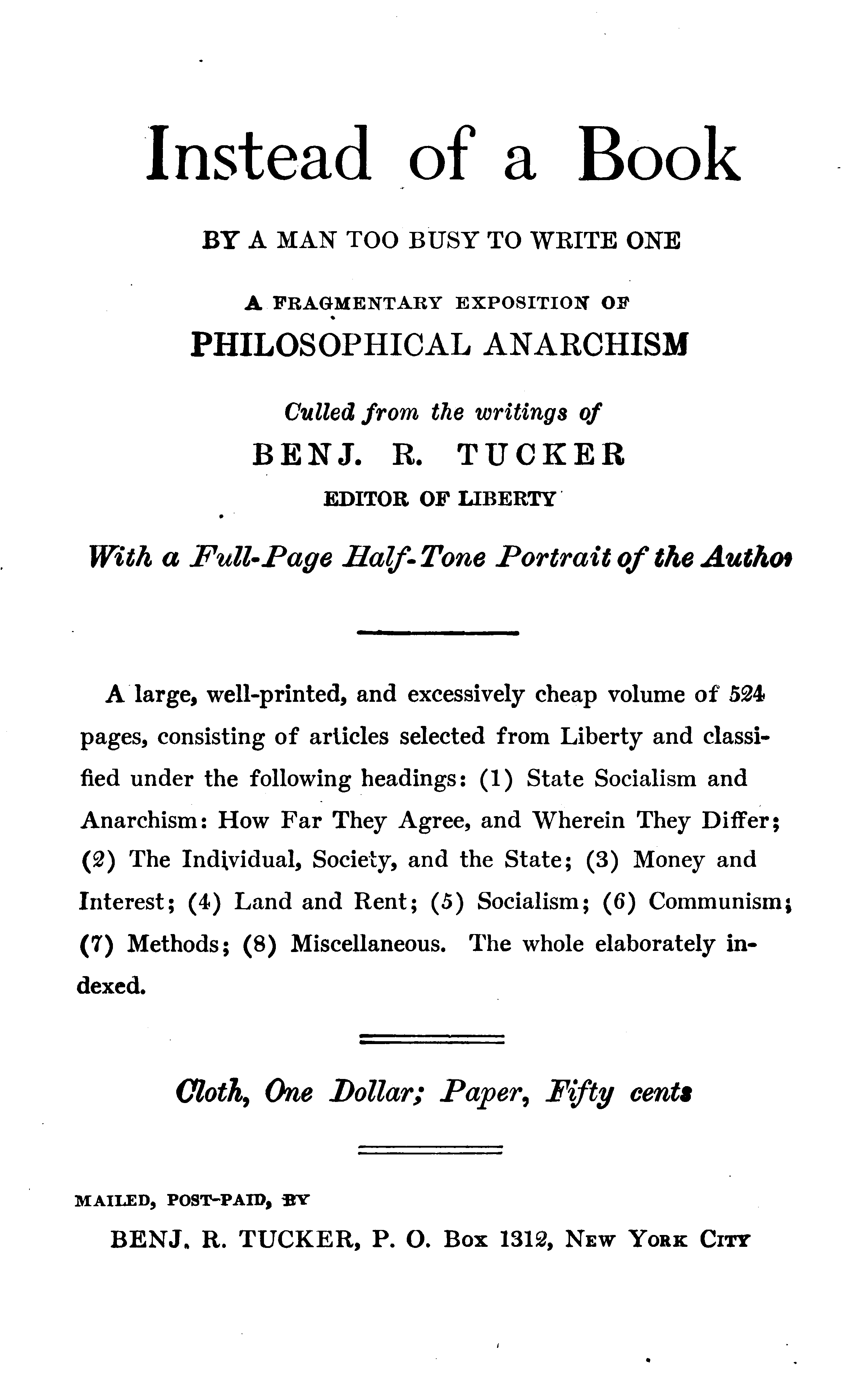 NEW YORK: BENJ. R. TUCKER.