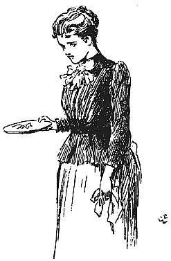 “This way, ladies,” said the tall creature, saving himself once more from tippling over by seizing the drawing-room door-handle, and then, as he turned and swung by it, sending the blood tingling into my cheeks by announcing—