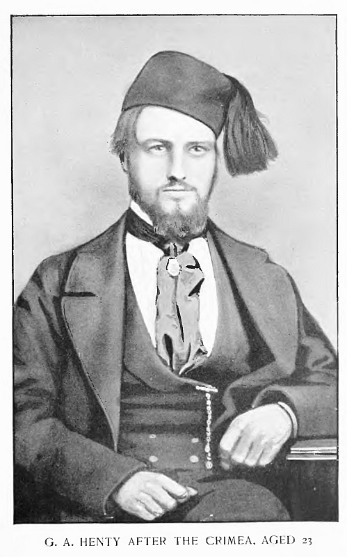 Excitement was raging in England after the failures and disappointments that were being canvassed during the Crimean War; all England was wroth as William Howard Russell’s letters were read, telling the terrible tales of disease, starvation, and neglect suffered by our brave soldiers. Accusations against the authorities were rife, accusations which stirred the Government to action and to making more systematic provision for our troops. It will be readily understood, therefore, that the offer made by a man, so full of energy as Henty, to become a recruit in the Purveyors’ Department in the Crimea, that is to say, the Hospital Commissariat, was accepted at once, though his place would more naturally have been in the fighting line.