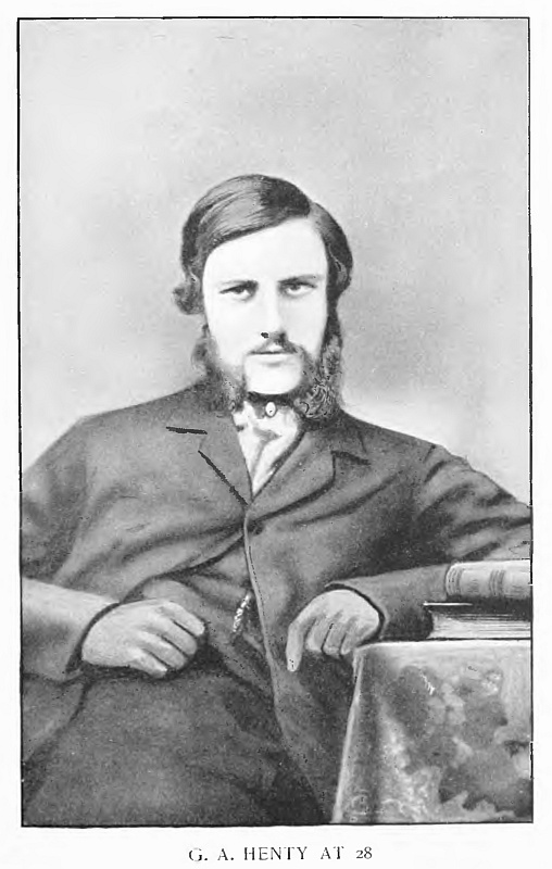 G.A. Henty occupied so large a place in the hearts of boys that, when his active life all too soon came to a close, it seemed desirable that those readers whom he had entertained for so many years should have an opportunity of knowing something more of the man himself than was contained in his books. Every writer, consciously or unconsciously, reveals himself in his work, but nevertheless it cannot fail to be interesting to boys to read of the actual experiences of the sturdy war correspondent—those experiences which furnished him with many a vivid background for his romances. It was at once the fascination and the value of his tales that, while nominally fiction, they were built up on a solid substratum of fact. When the present writer, however, was asked to undertake this memoir of his old and valued friend, he was confronted with a grave difficulty. Of few men of George Henty’s eminence is less known about their private lives. A staunch and loyal friend, he yet strongly believed, to use the old Cockney phrase, in “keeping himself to himself.” His letters were never autobiographical, and about himself he was never very communicative. Little more than his vivid letters from foreign countries exist to give an insight into the man and his character.