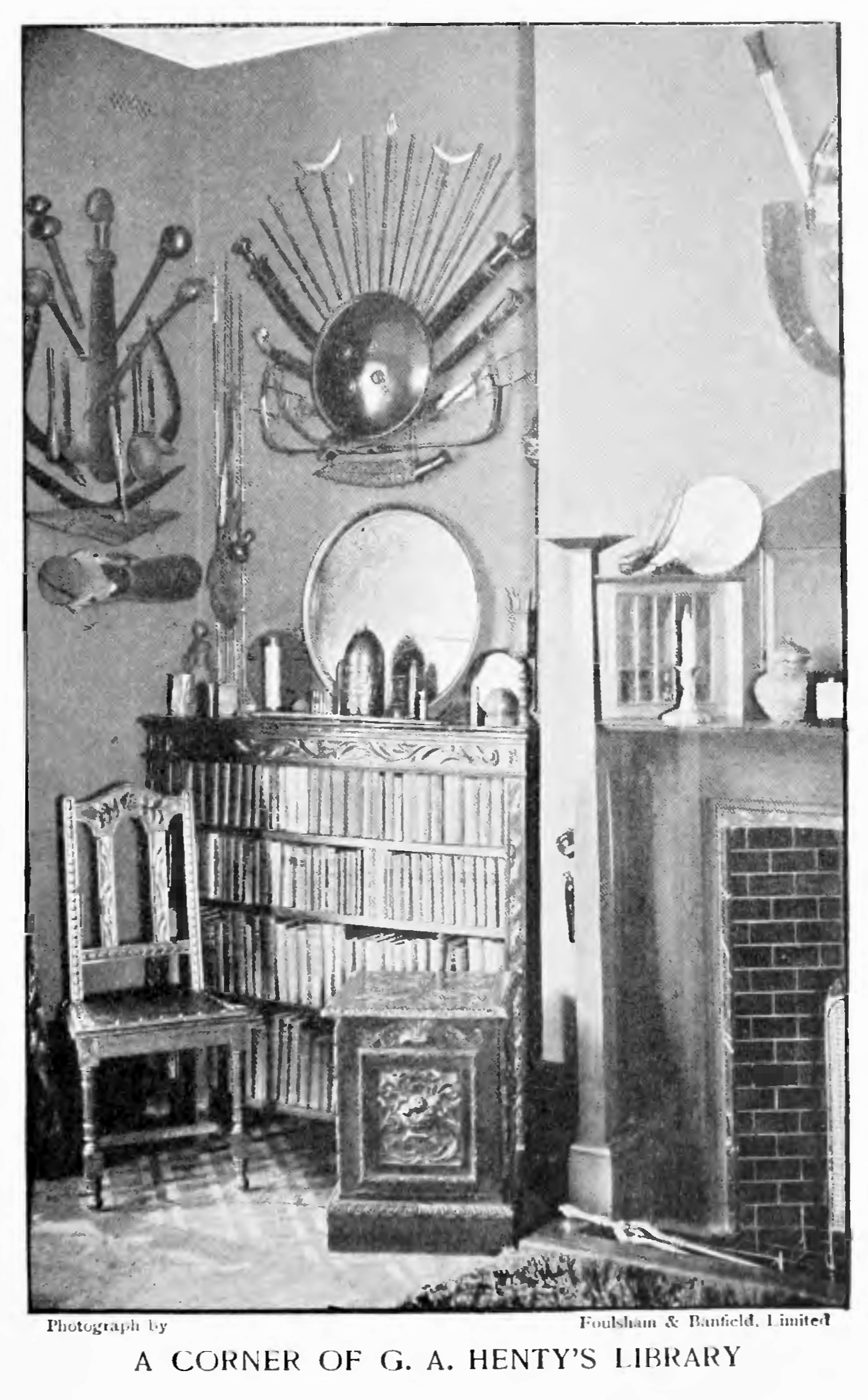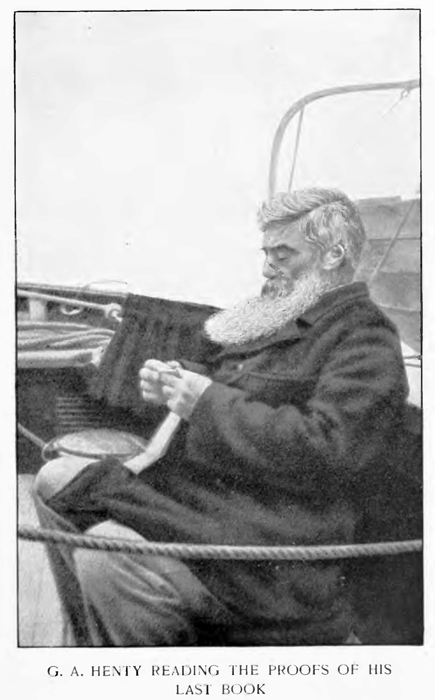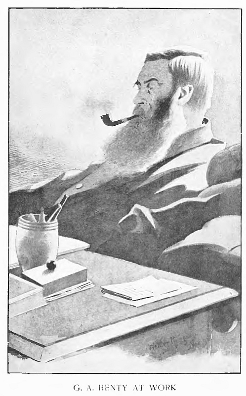 We might know very little of the life of the late George Alfred Henty—writer for and teacher of boys, novelist, and one of the most virile of our war correspondents—but for one fortunate fact. His busy pen soon made him popular, and in course of time this popularity was sufficient to make editors of journals for the young realise that their readers would gladly learn something of the early life of the man whose vivid tales of adventure were being read with avidity wherever the English language had spread. In these days few are content to know a man only by his work, and even boys like to know something about the personality and experiences of the writers who have given them keen pleasure. As a result the inevitable came to pass, and the modern chronicler of personal details sought out the author. To his interviewers Henty told fragments of his past life, and these reminiscences were taken down in short or long hand, and built up into articles, and have remained, to bring before us vividly what would otherwise never have been known save perhaps by tradition.