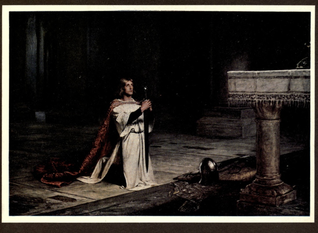 "A Sword-and-Dagger Fight," exhibited in the following year, is one of many pictures that show Pettie's dramatic perception and his power of representing physical exertion and momentary movement. Almost at the same time was painted "Disbanded," a rough and ragged but stalwart Highlander, without doubt a rebel of "the '45" on his return from Culloden. This is one of many subjects for which the artist sought inspiration in the novels of Sir Walter Scott. "The Clash of Steel," painted in 1888, obviously owes its origin to the first chapter of "The Fortunes of Nigel." It depicts the time when the cry of "Clubs! Clubs! 'Prentices!" often echoed along a London street.