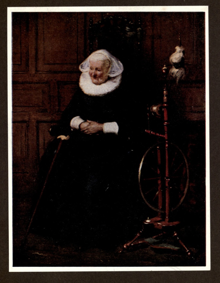 In 1874 Pettie was elected a Royal Academician, filling the vacancy caused by the death of Sir Edwin Landseer. His first exhibits were two of his finest works, "A State Secret," and "Ho! Ho! Old Noll!" The scene in the latter is a tennis-court where two cavaliers are looking on with a chuckle of amusement at the spirited caricature which a third has made upon the wall. "Ho! Ho! Old Noll" is the work of a master draughtsman. The light pose and easy grace of the cavalier who makes the sketch, the foreshortening of his arm, the hand that holds the chalk—so lightly that it seems to move—are all superbly rendered. Two years later, in 1876, he exhibited "The Step," a picture of a little girl with golden hair, in a pale blue dress, dancing before her grandmother. The same old lady, with spinning-wheel and high-backed chair, formed the subject of a picture titled "Grandmother's Memories."