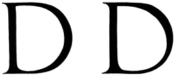 The letter D you shall make thus: Divide its square by the perpendicular or vertical line g. h. and by the horizontal line e. f. into four small squares, and call their point of intersection i.: then draw the broader limb of the letter from the side a. b. downwards, to meet the side c. d. and at the distance of its own width from a. c.; and produce the limb at top and bottom to a sharp point at the angles a. and c. as was shown above in B; using the same method in all straight limbs in the remaining letters. Next you are to produce from this limb two narrower tracts horizontally, and from these are to be described the circular arcs of the letter between the line a. b. at top and the line c. d. at bottom, and extending as far as the perpendicular g. h.; next, with your compass join g. f. h. Then, in the line e. f. lay off a portion equal in breadth to the widest limb of the letter, at the point k.; next, set one foot of your compass on k. and let the other cut the said line e. f. in l.; let this be the immovable leg of your compass, and with the other, beginning from k., describe internally, to the narrower transverse limbs, an arc which shall touch both, completing your acute angle above, but rounding out the lower one by a circular arc of the same diameter as the one by which you sharpened your exterior subtending angle.