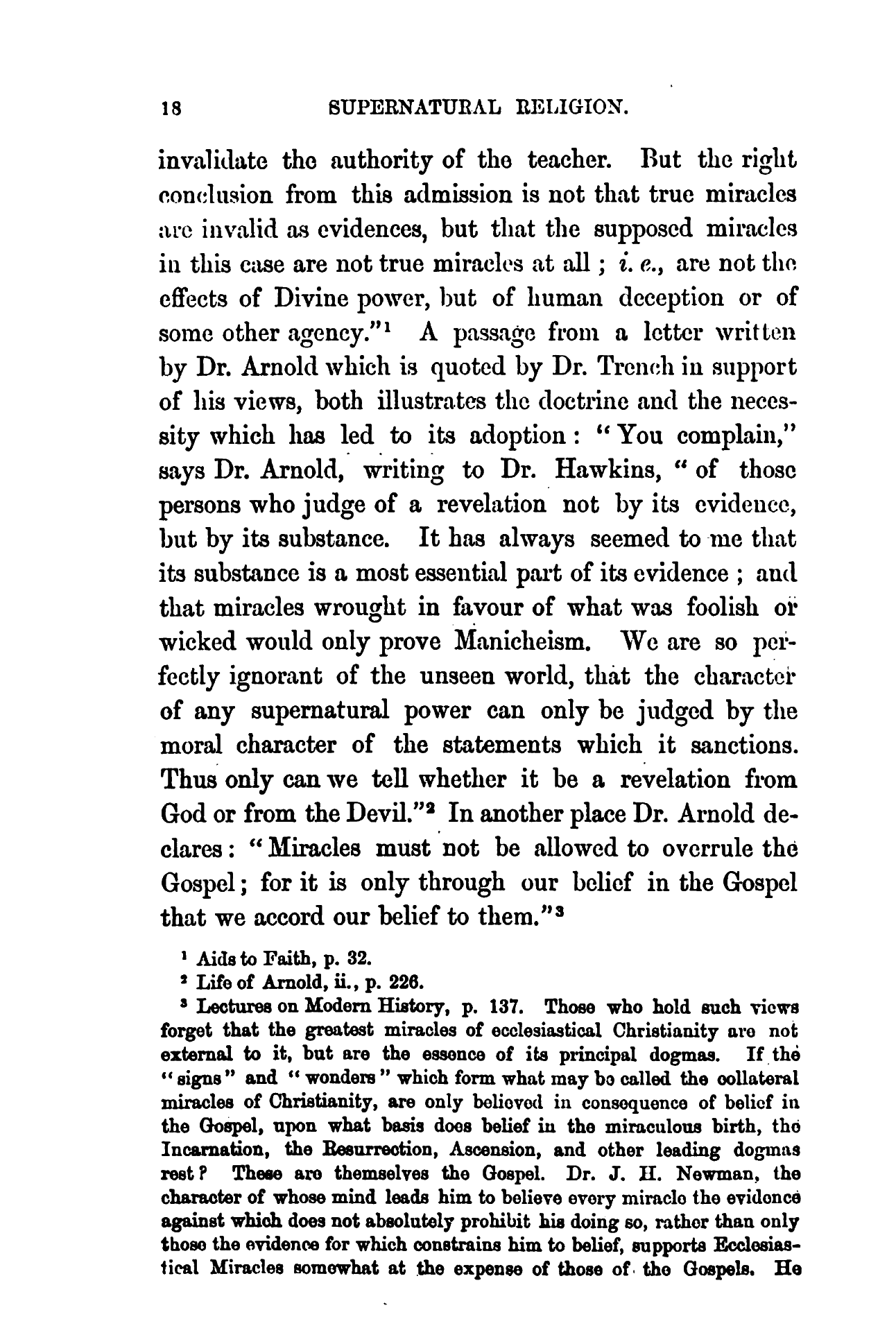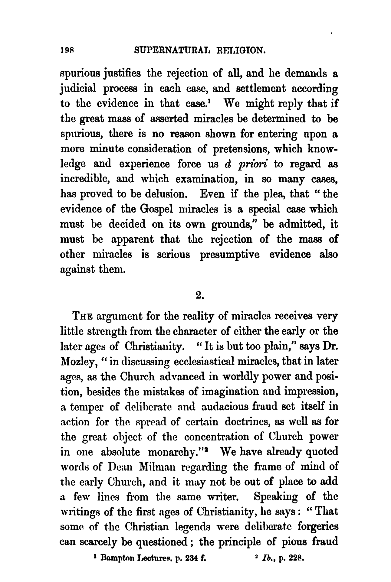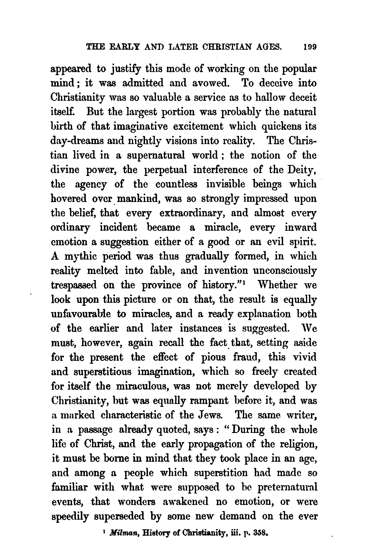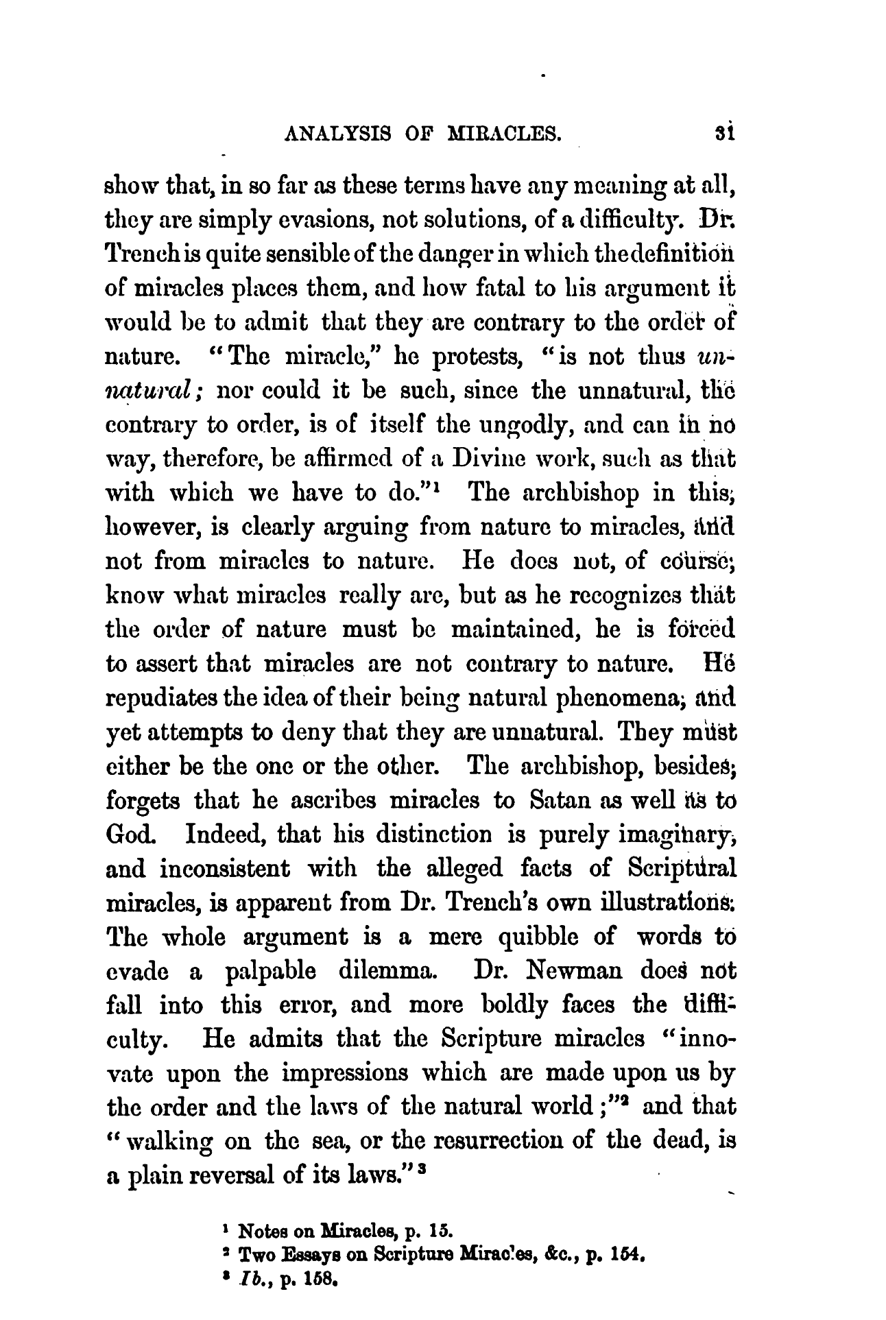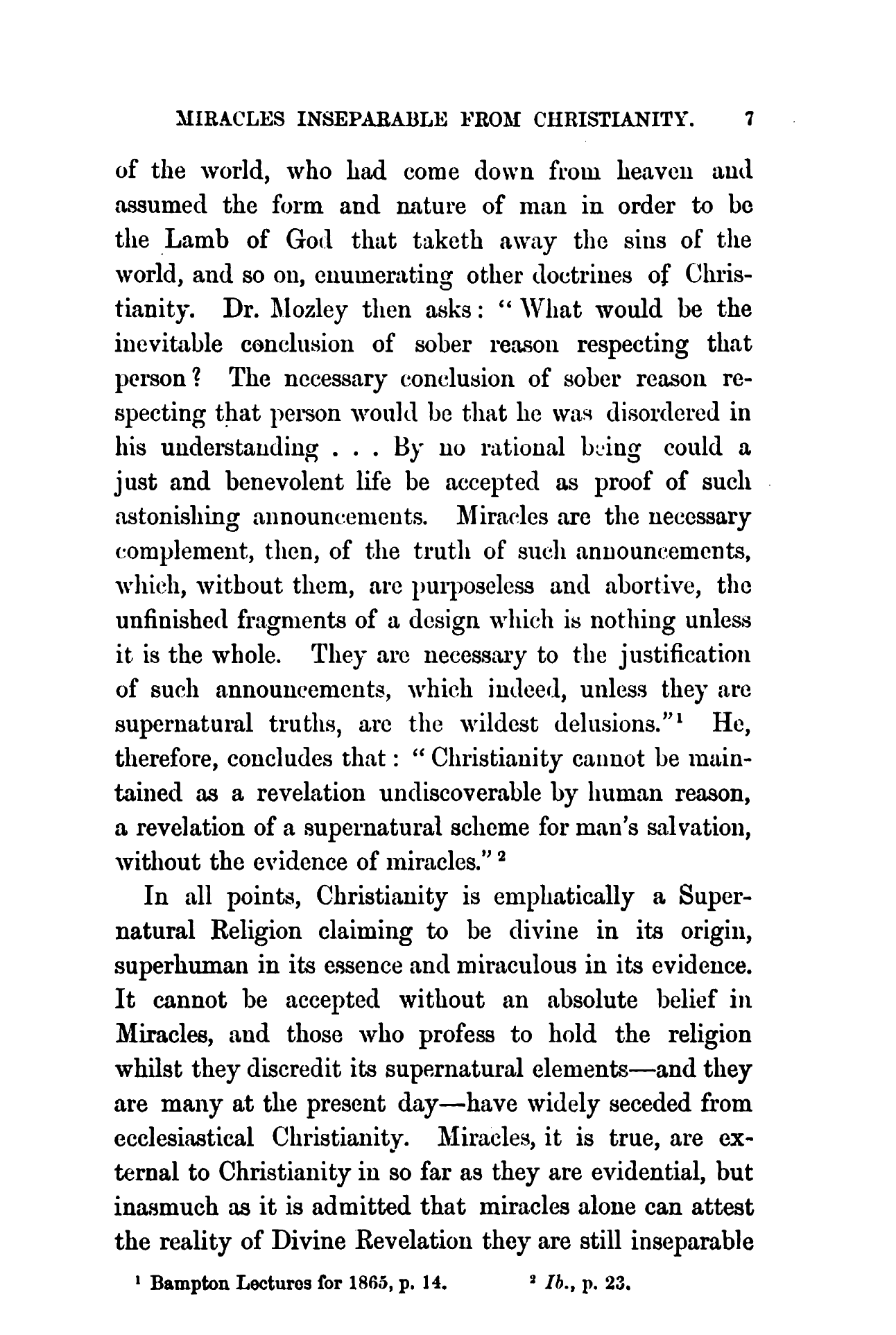 persons, equally ignorant and superstitious, have believed them. I venture to say that no one who advances the argument to which I am referring can have realized the nature of the question at issue, and the relation of miracles to the order of nature.