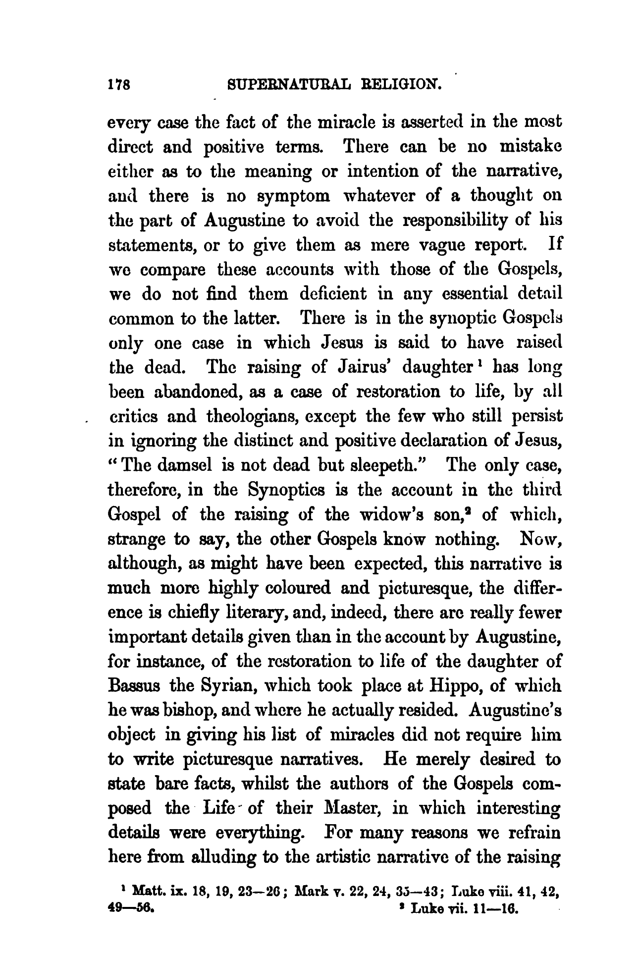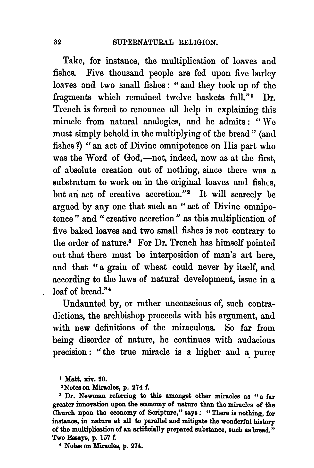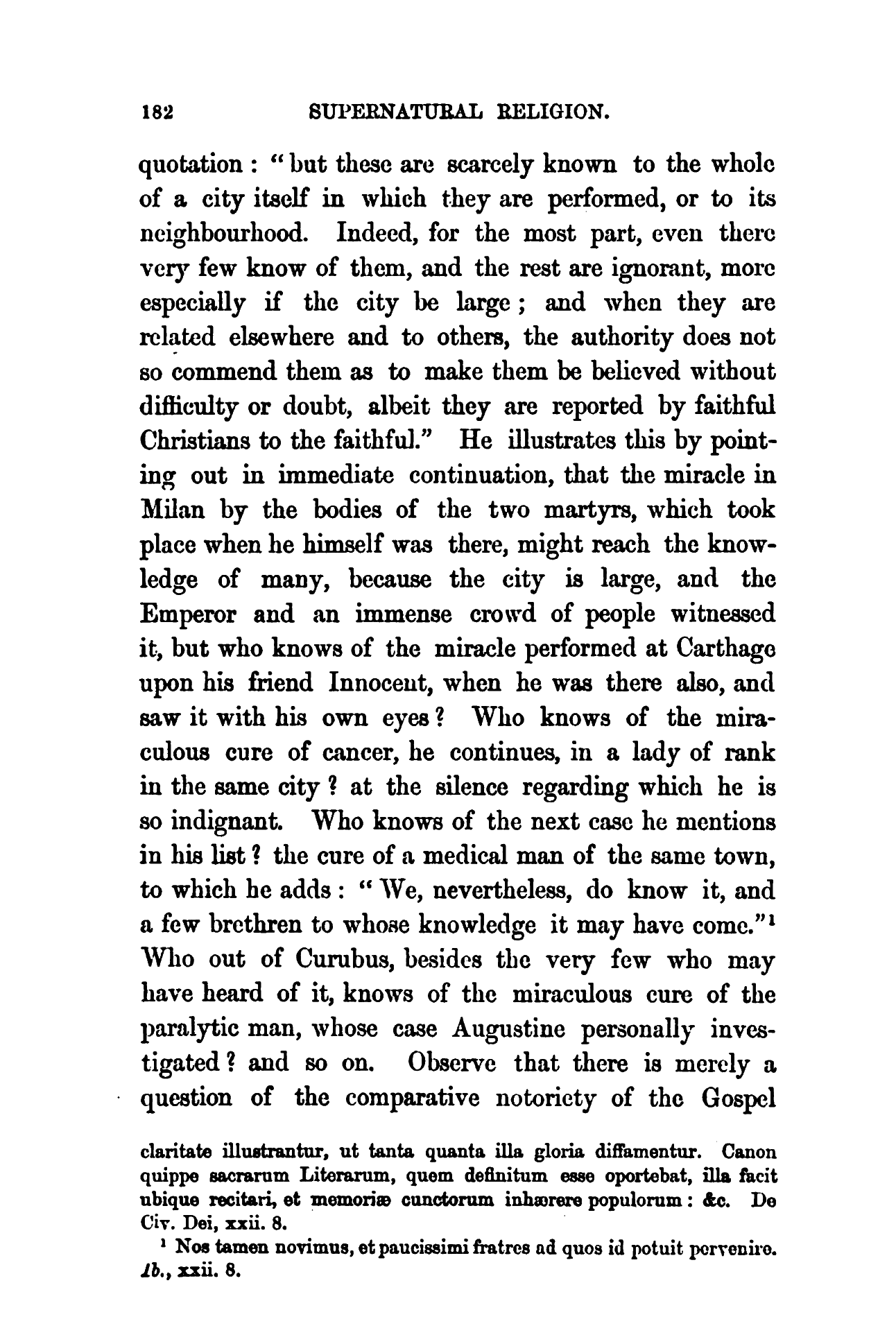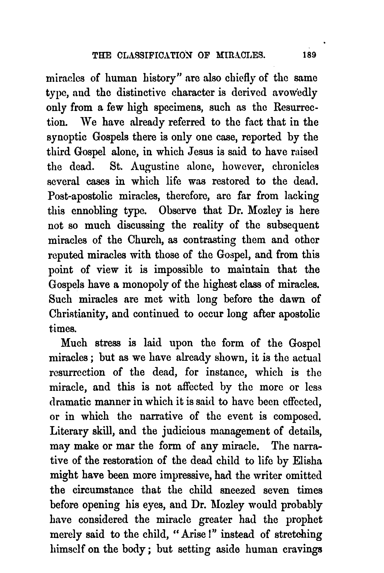 persons, equally ignorant and superstitious, have believed them. I venture to say that no one who advances the argument to which I am referring can have realized the nature of the question at issue, and the relation of miracles to the order of nature.