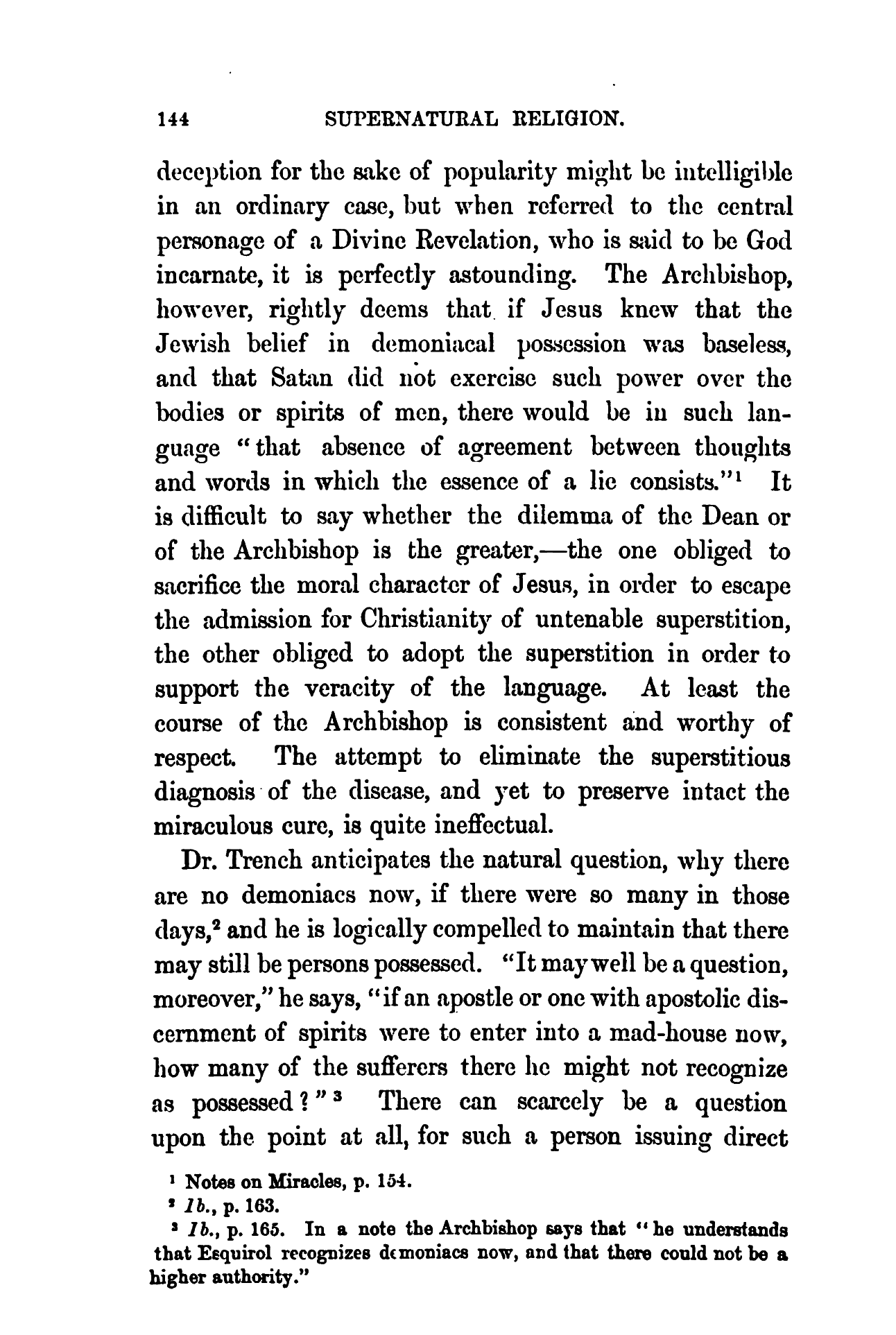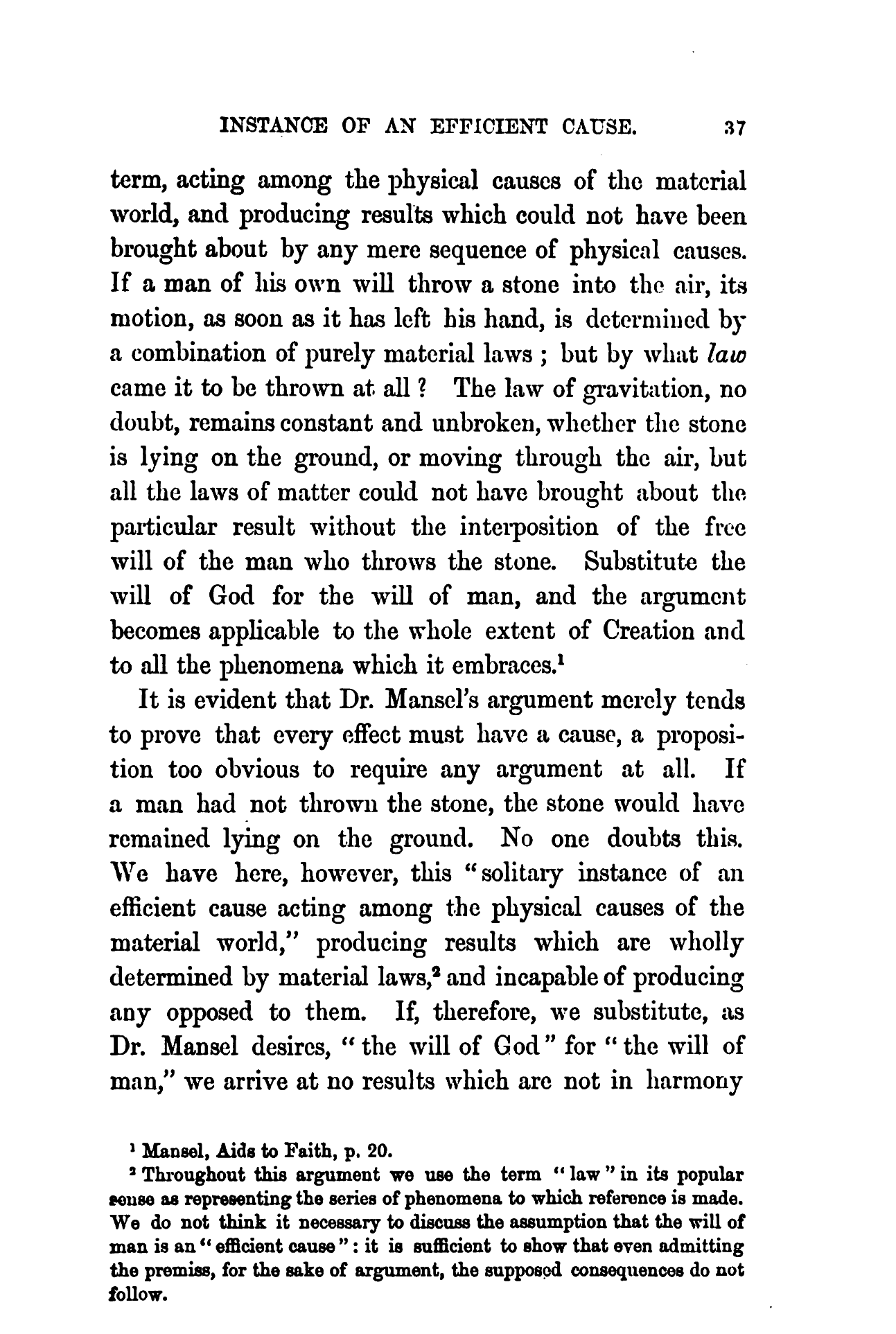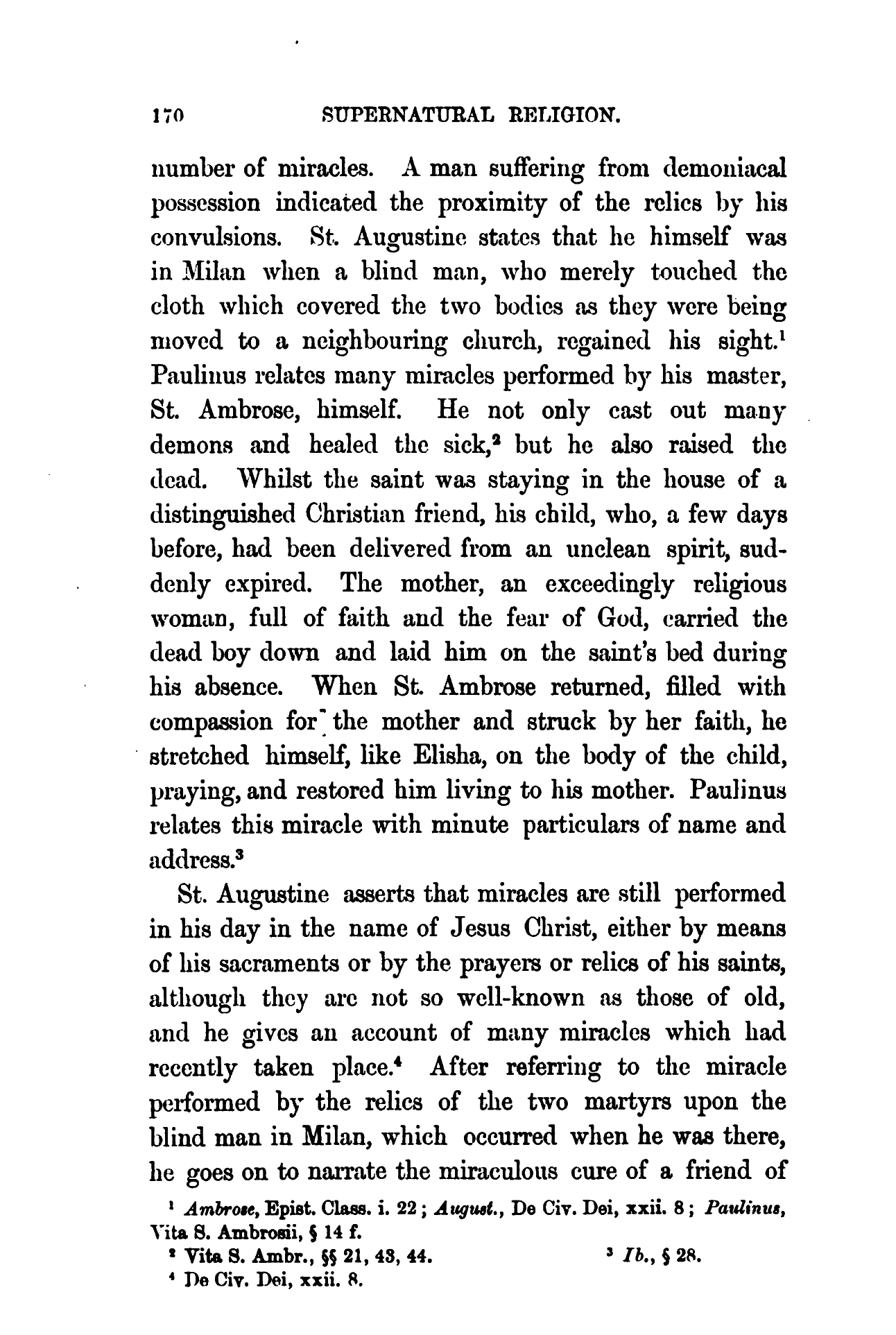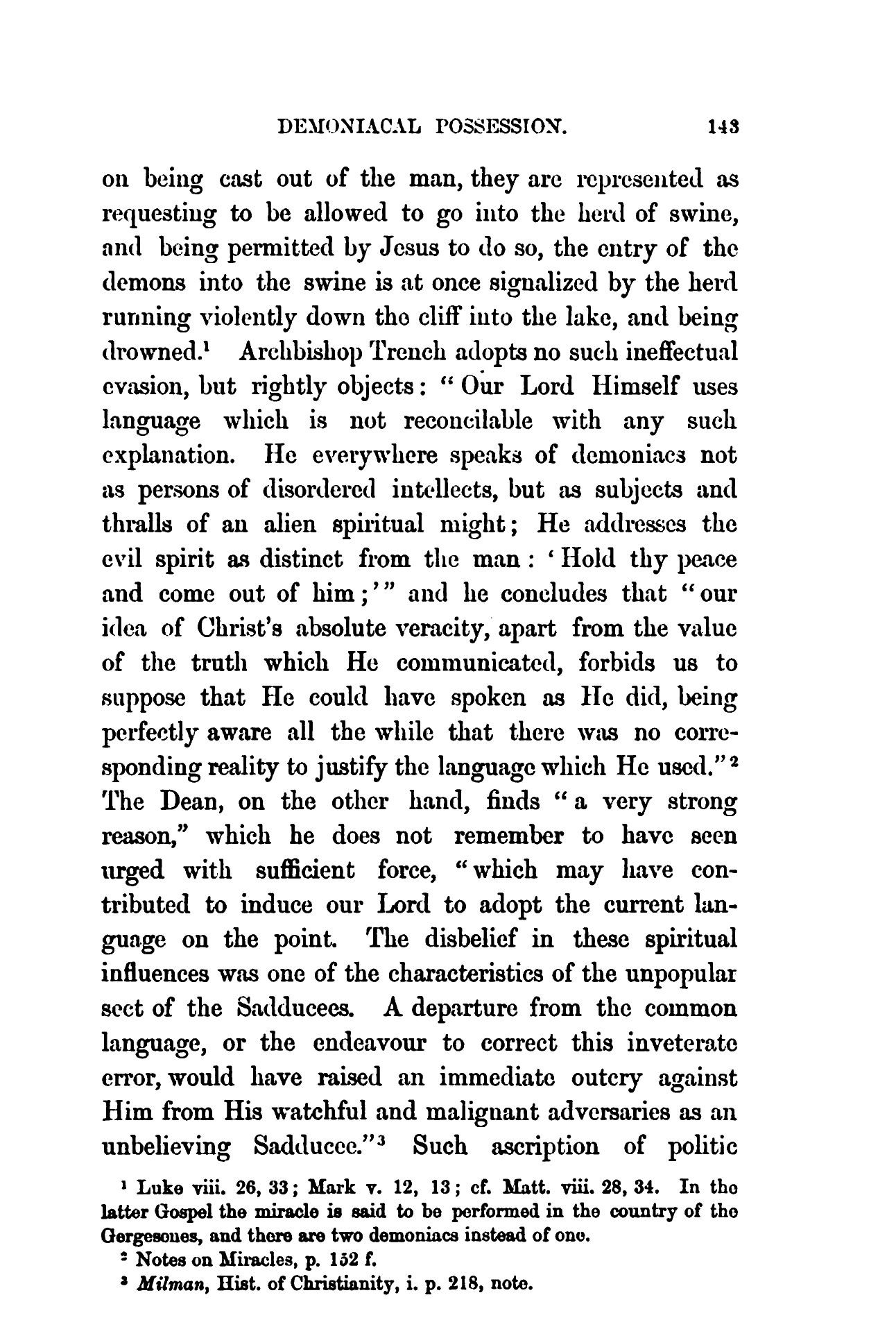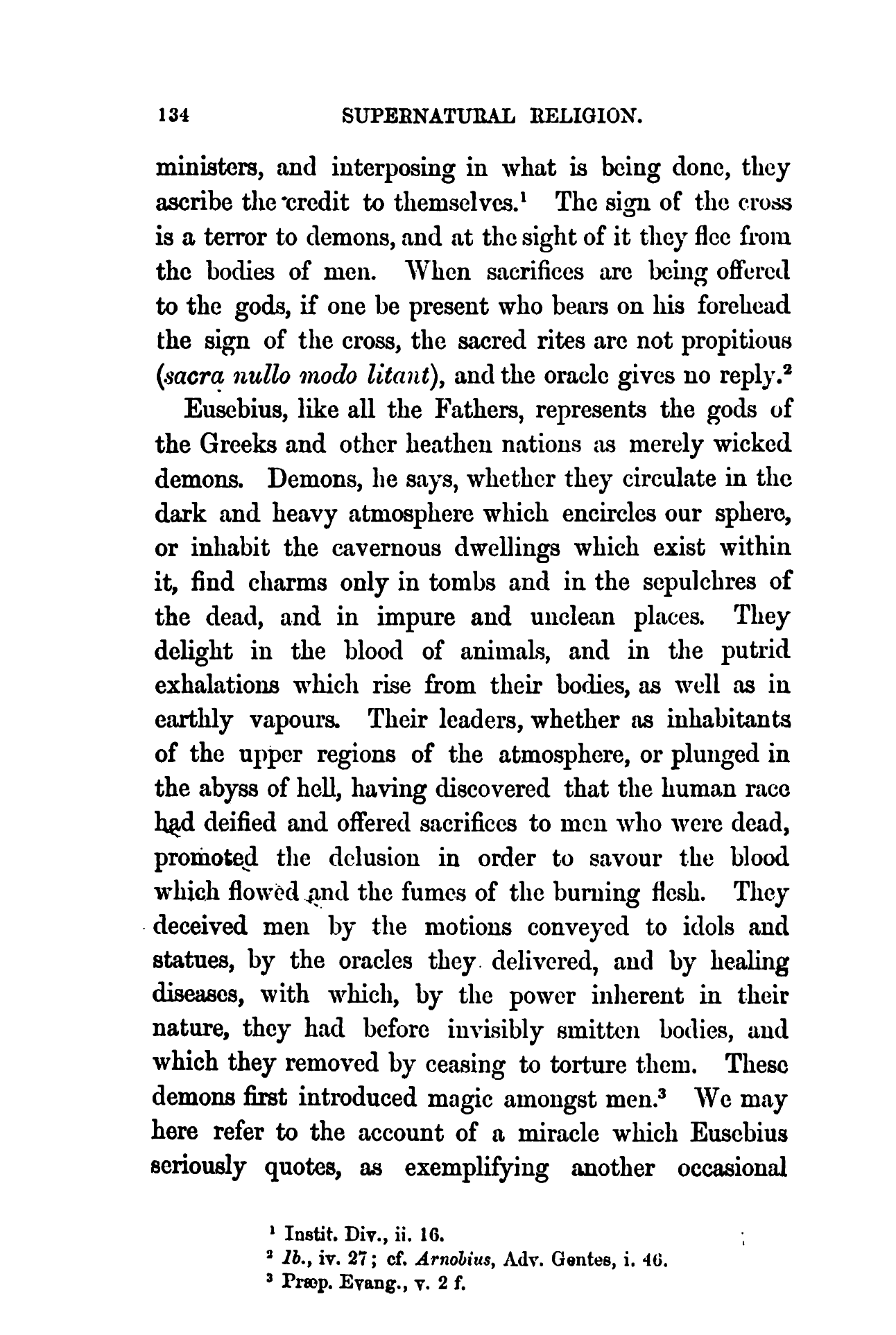 persons, equally ignorant and superstitious, have believed them. I venture to say that no one who advances the argument to which I am referring can have realized the nature of the question at issue, and the relation of miracles to the order of nature.
