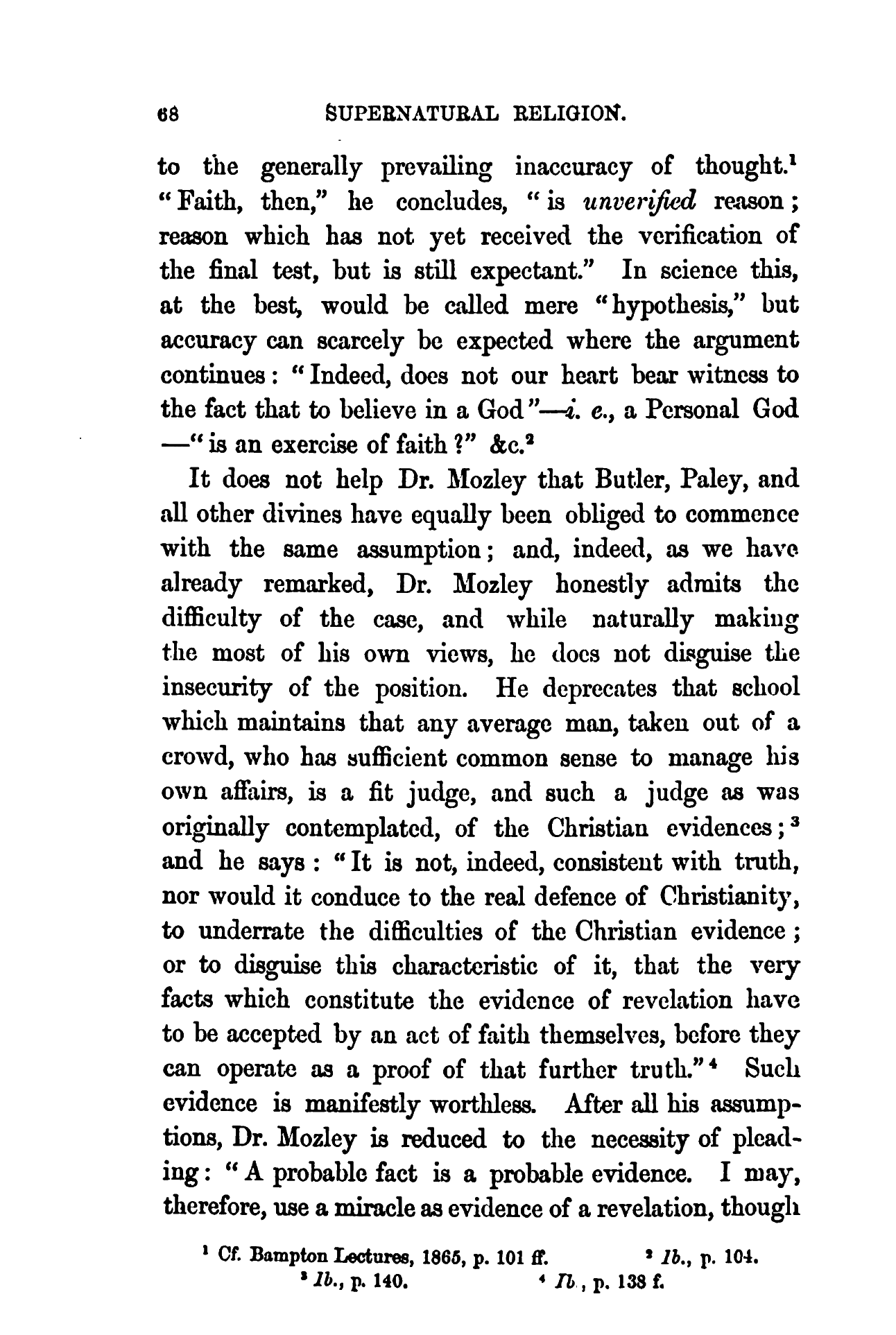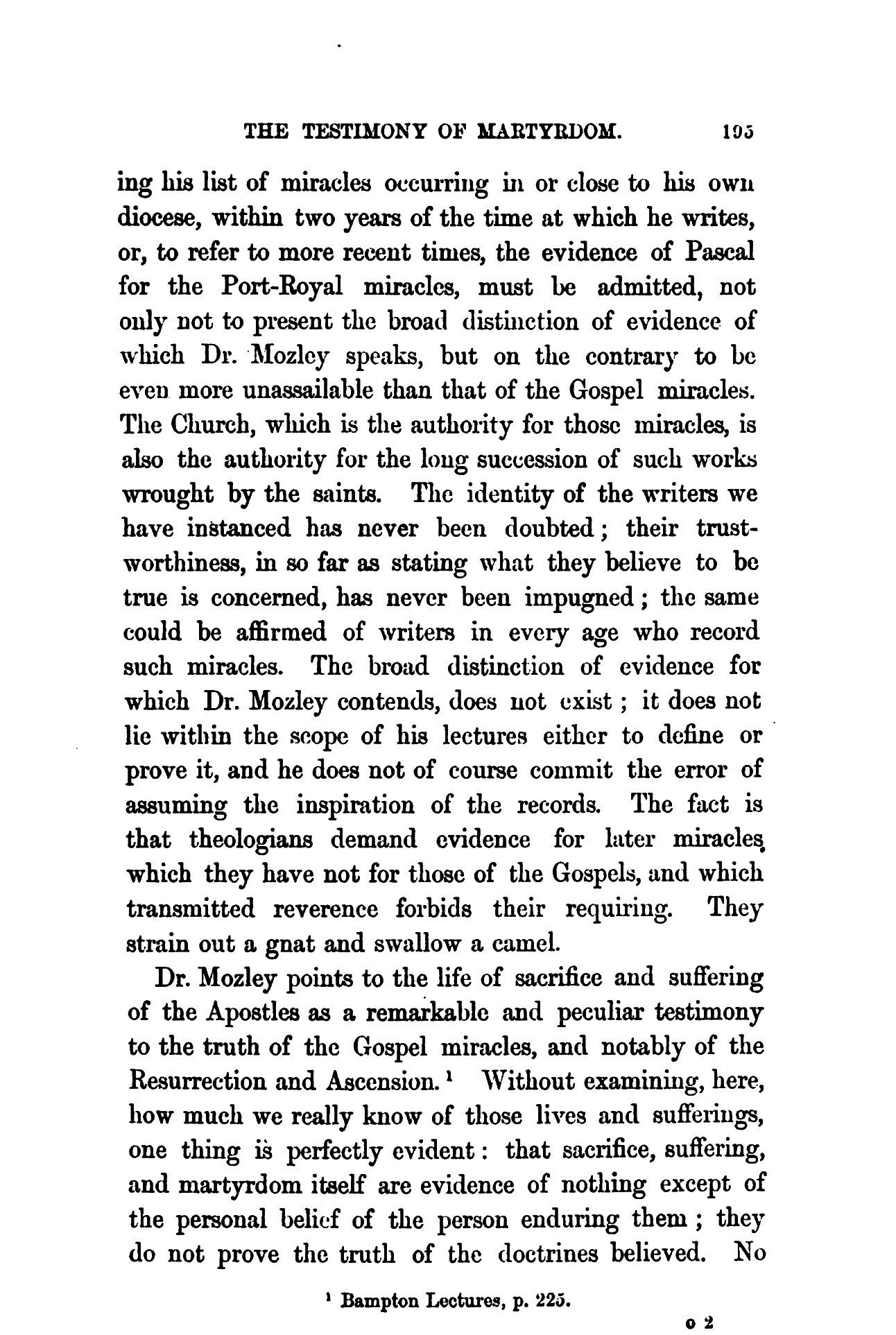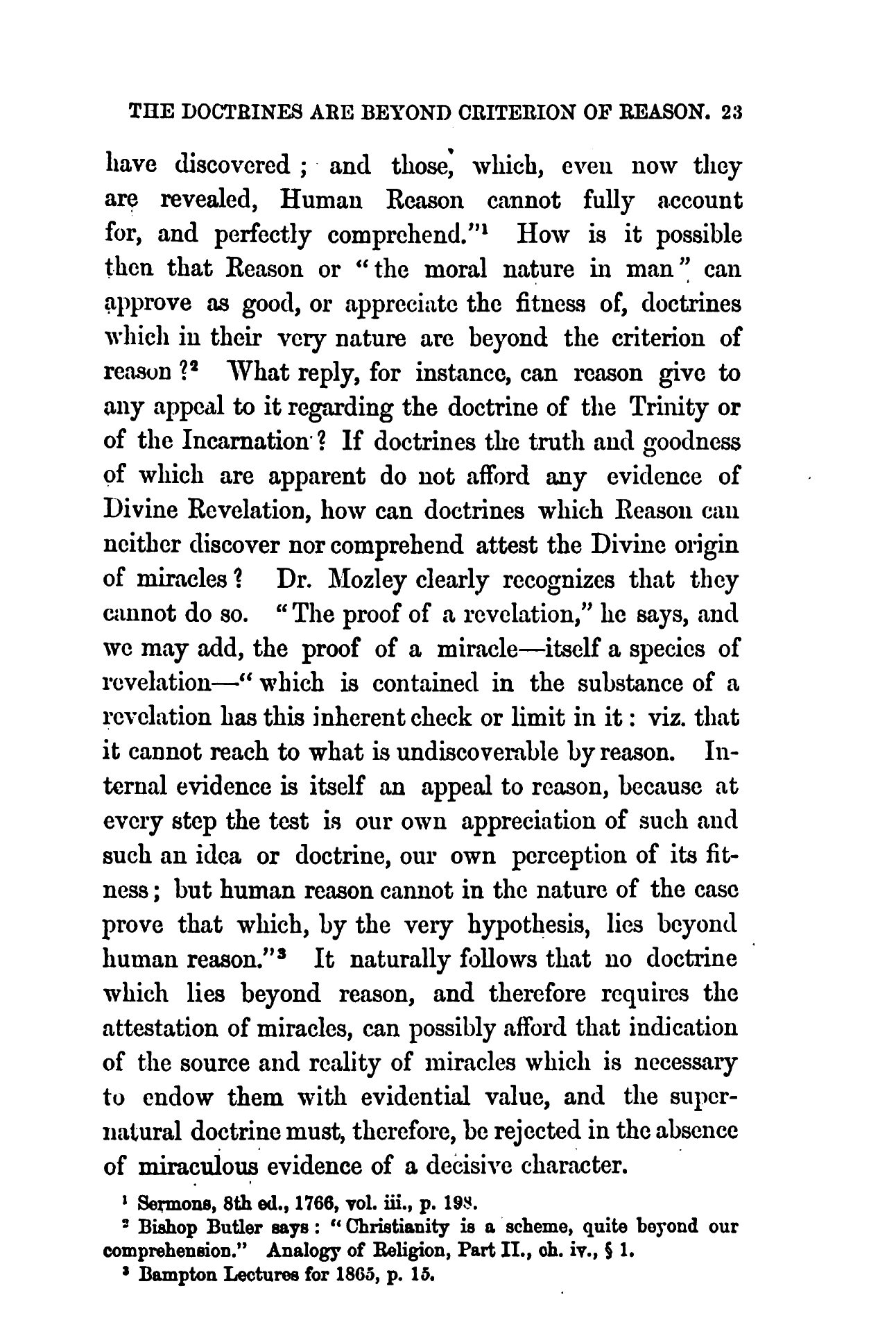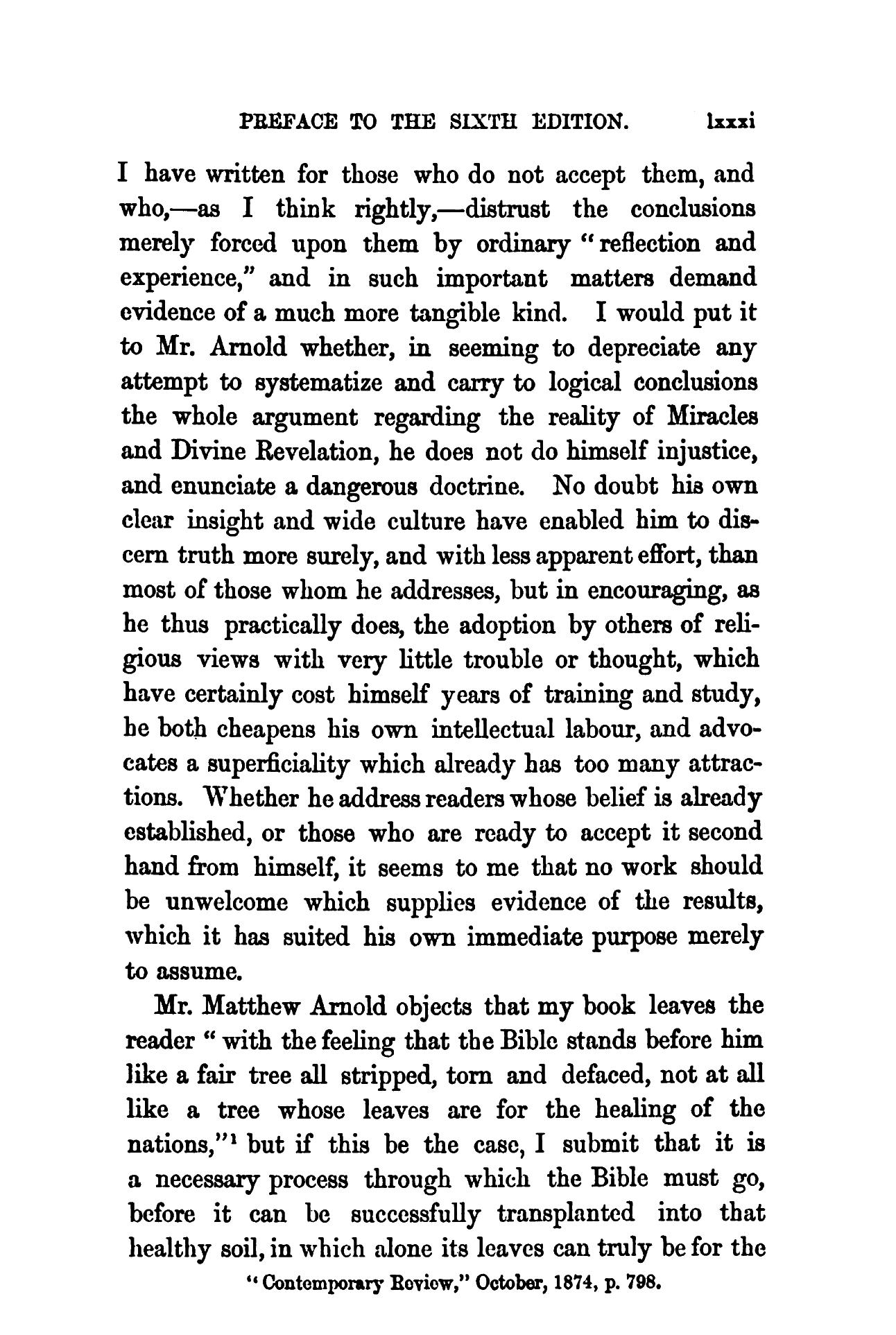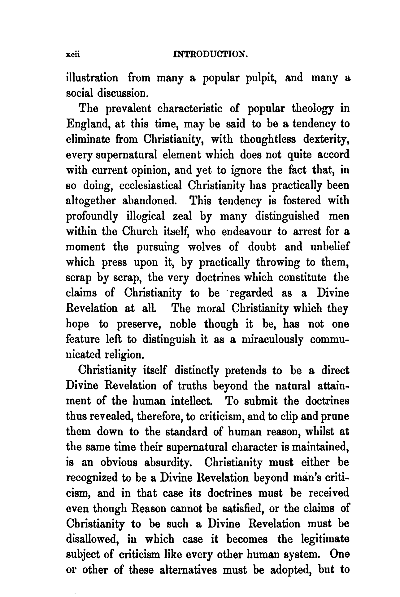 The best and most powerful reasons which able divines and apologists have been able to bring forward against its main argument have, I submit, not only failed to shake it, but have, by inference, shown it to be unassailable. Very many of those who have professedly advanced against the citadel itself have practically attacked nothing but some outlying fort, which was scarcely worth defence, whilst others, who have seriously attempted an assault, have shown that the Church has no artillery capable of making a practicable breach in the rationalistic stronghold. I say this solely in reference to the argument which I have taken upon myself to represent, and in no sense of my own individual share in its maintenance.