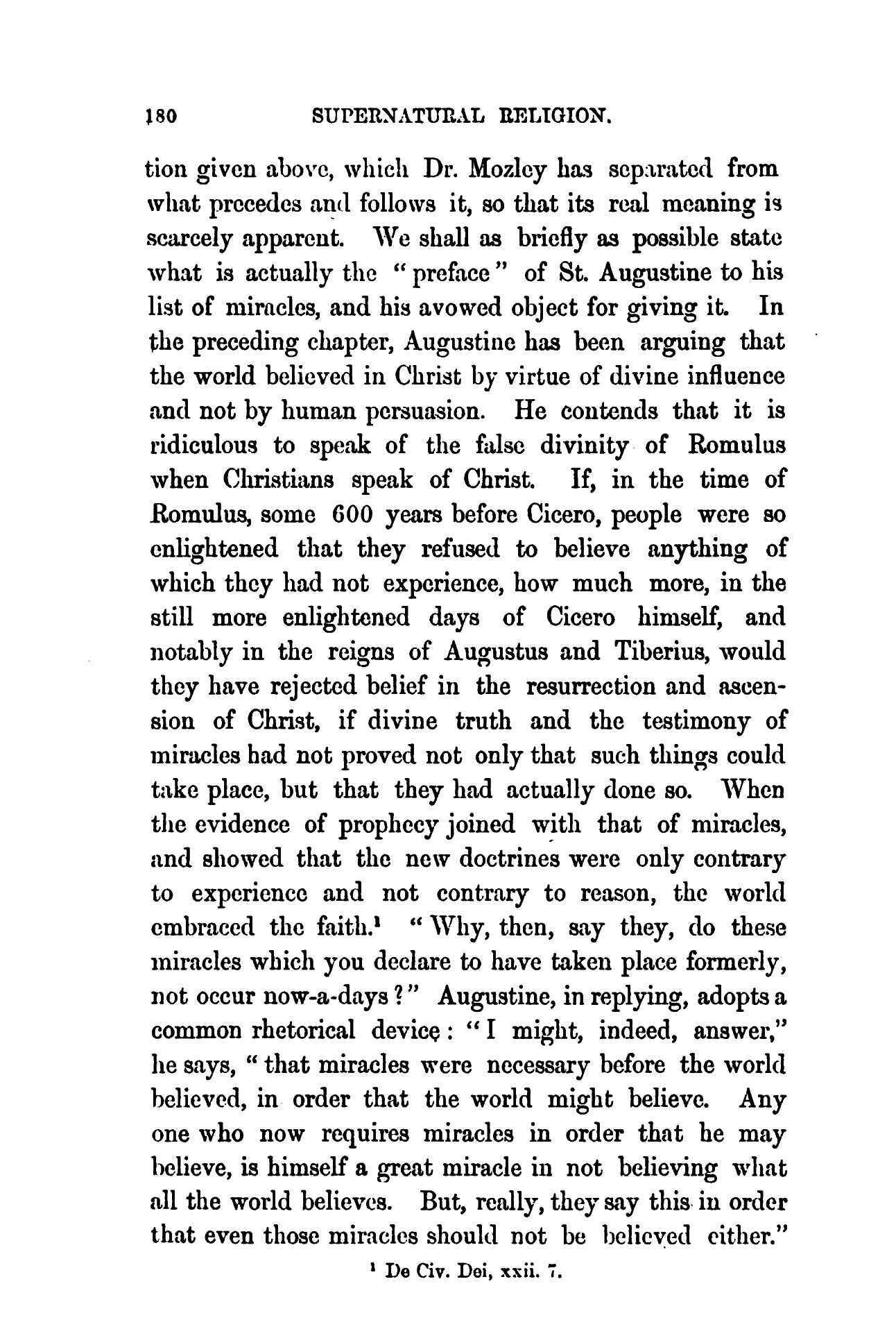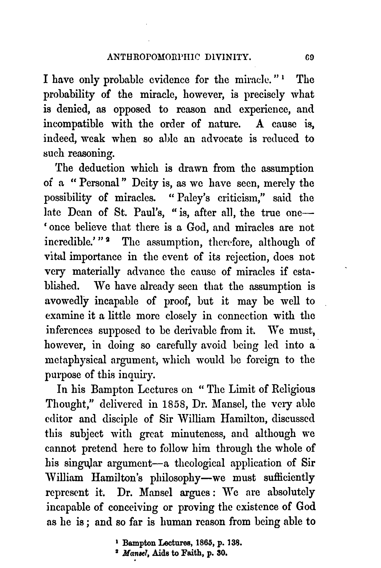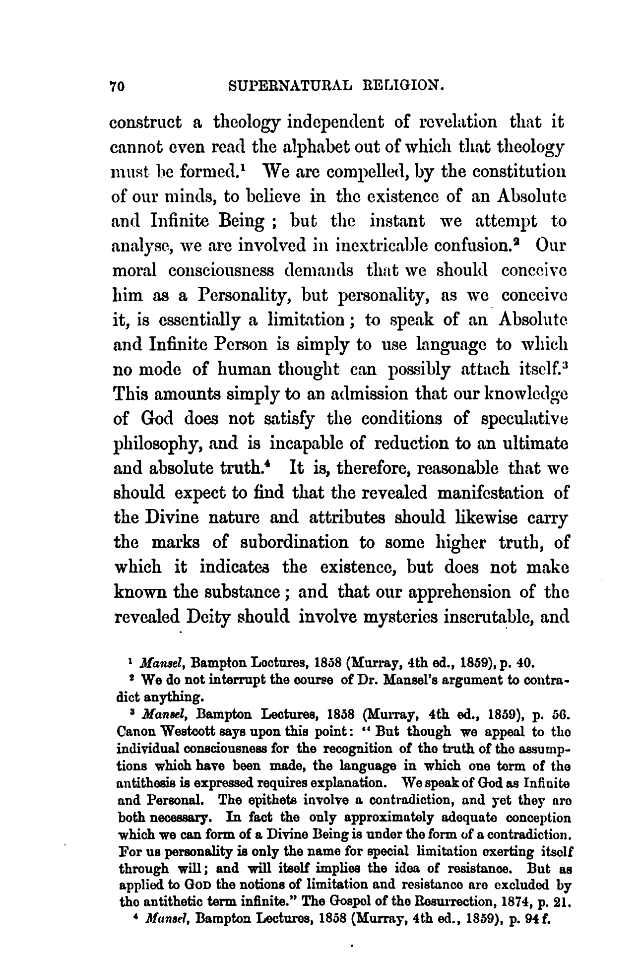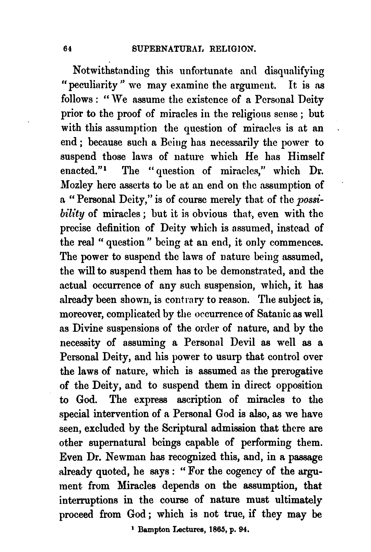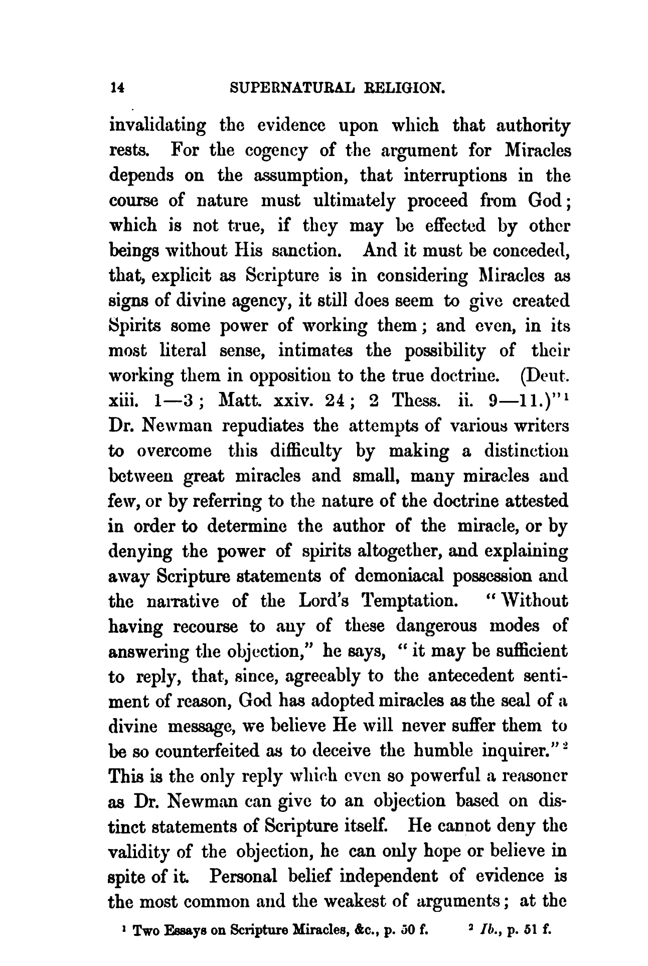 The best and most powerful reasons which able divines and apologists have been able to bring forward against its main argument have, I submit, not only failed to shake it, but have, by inference, shown it to be unassailable. Very many of those who have professedly advanced against the citadel itself have practically attacked nothing but some outlying fort, which was scarcely worth defence, whilst others, who have seriously attempted an assault, have shown that the Church has no artillery capable of making a practicable breach in the rationalistic stronghold. I say this solely in reference to the argument which I have taken upon myself to represent, and in no sense of my own individual share in its maintenance.