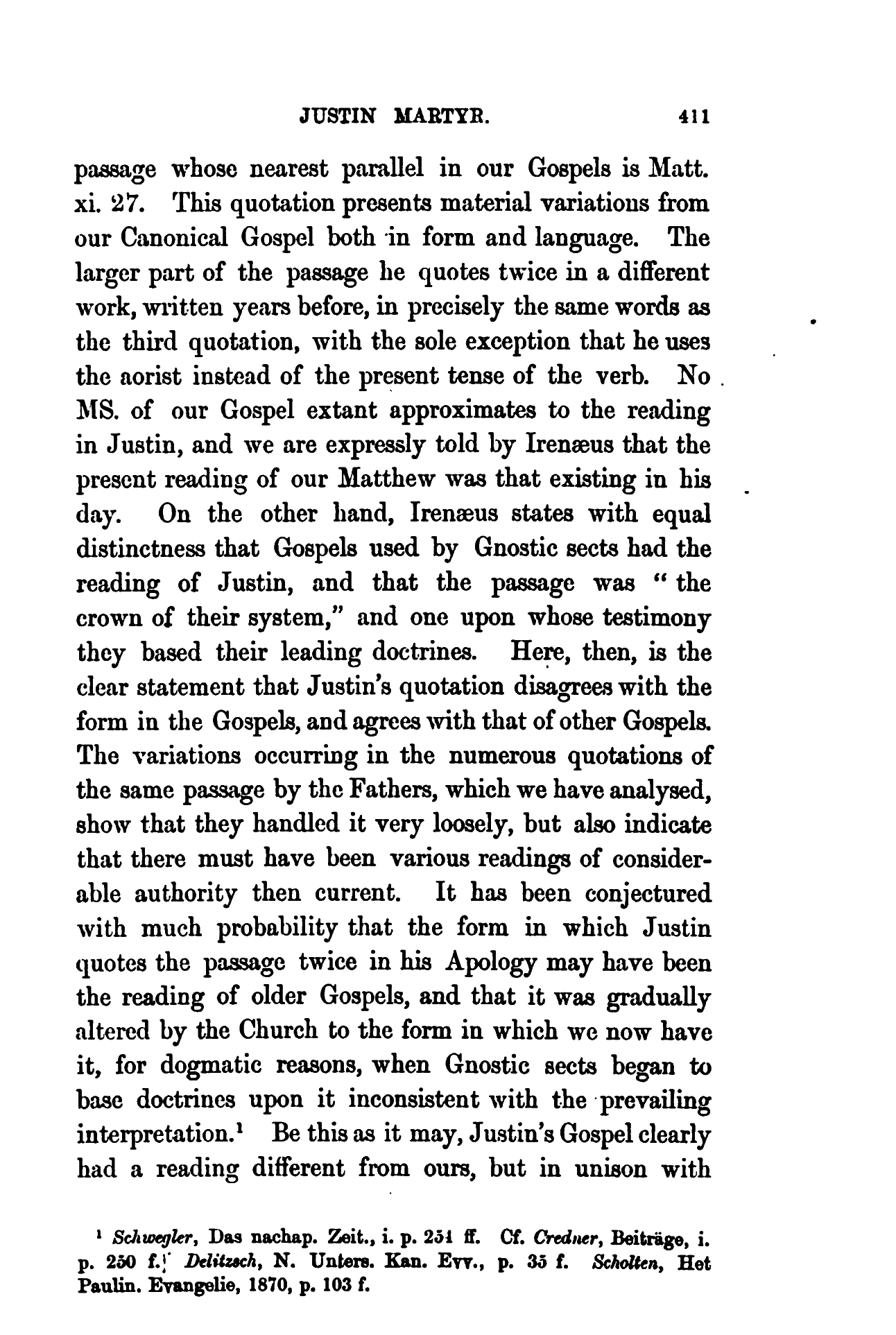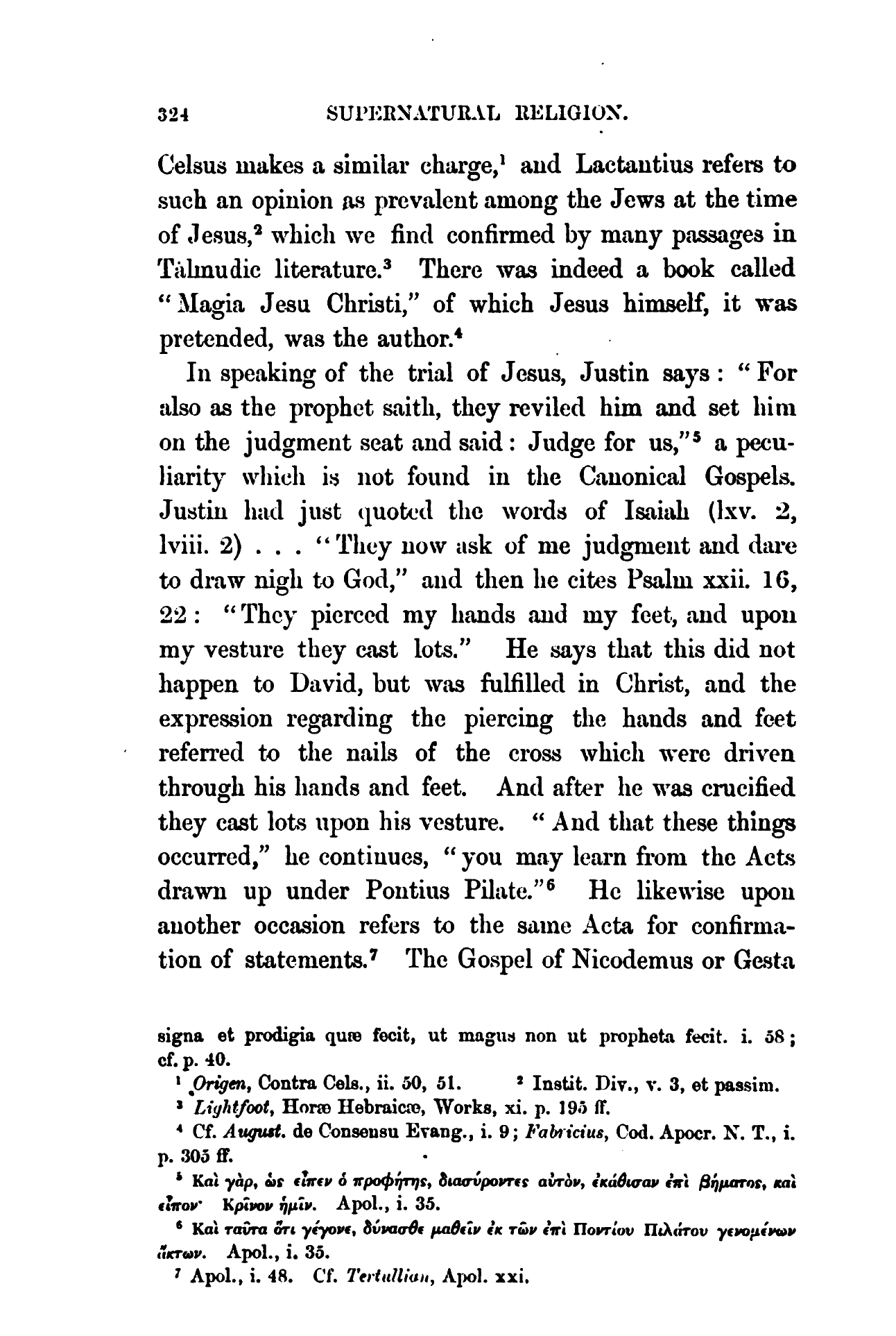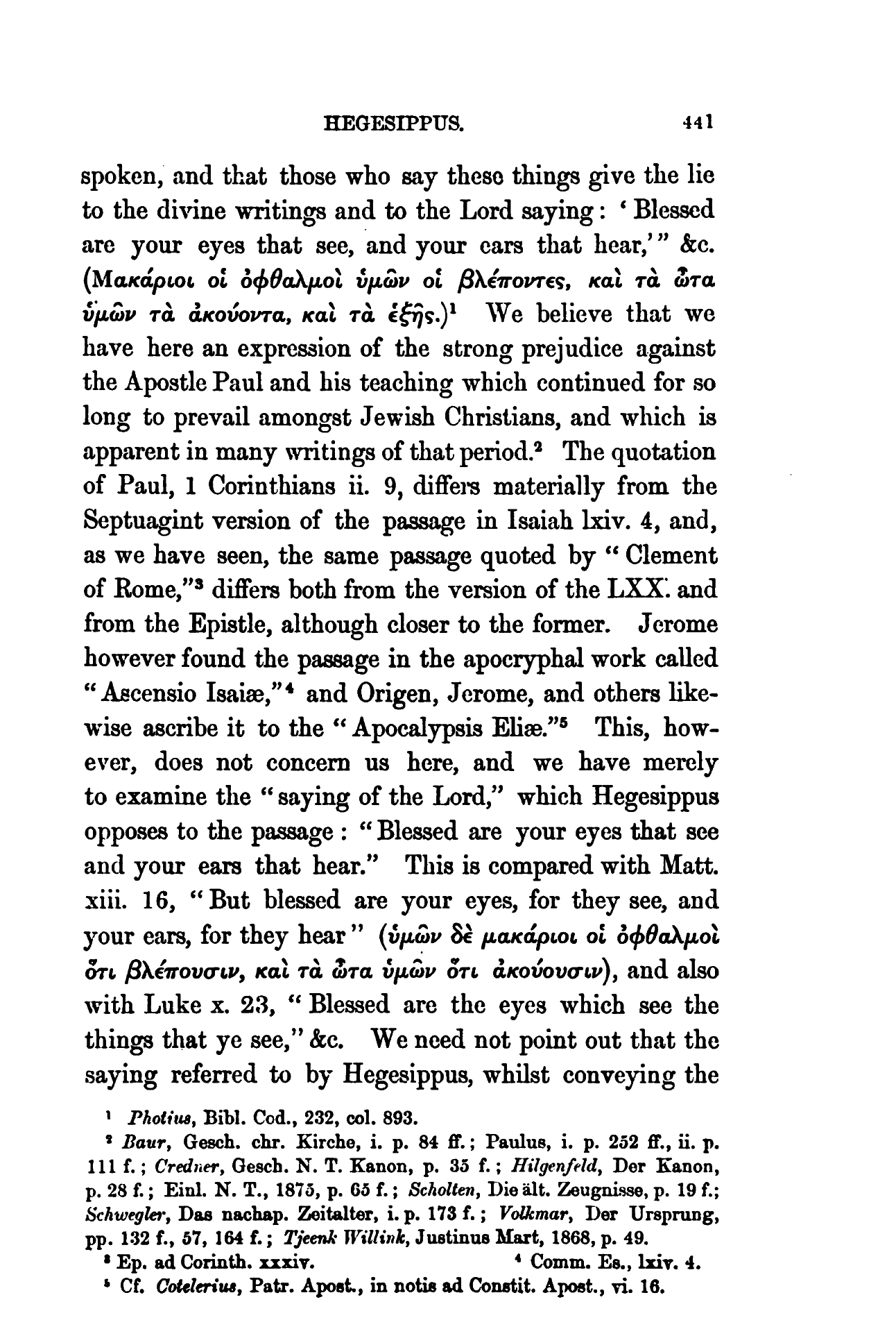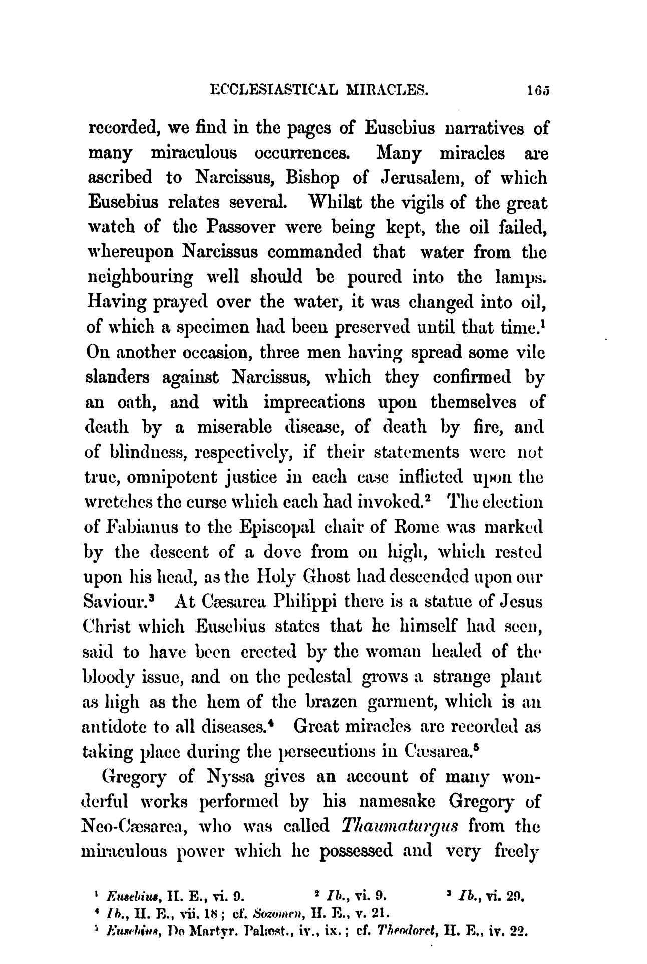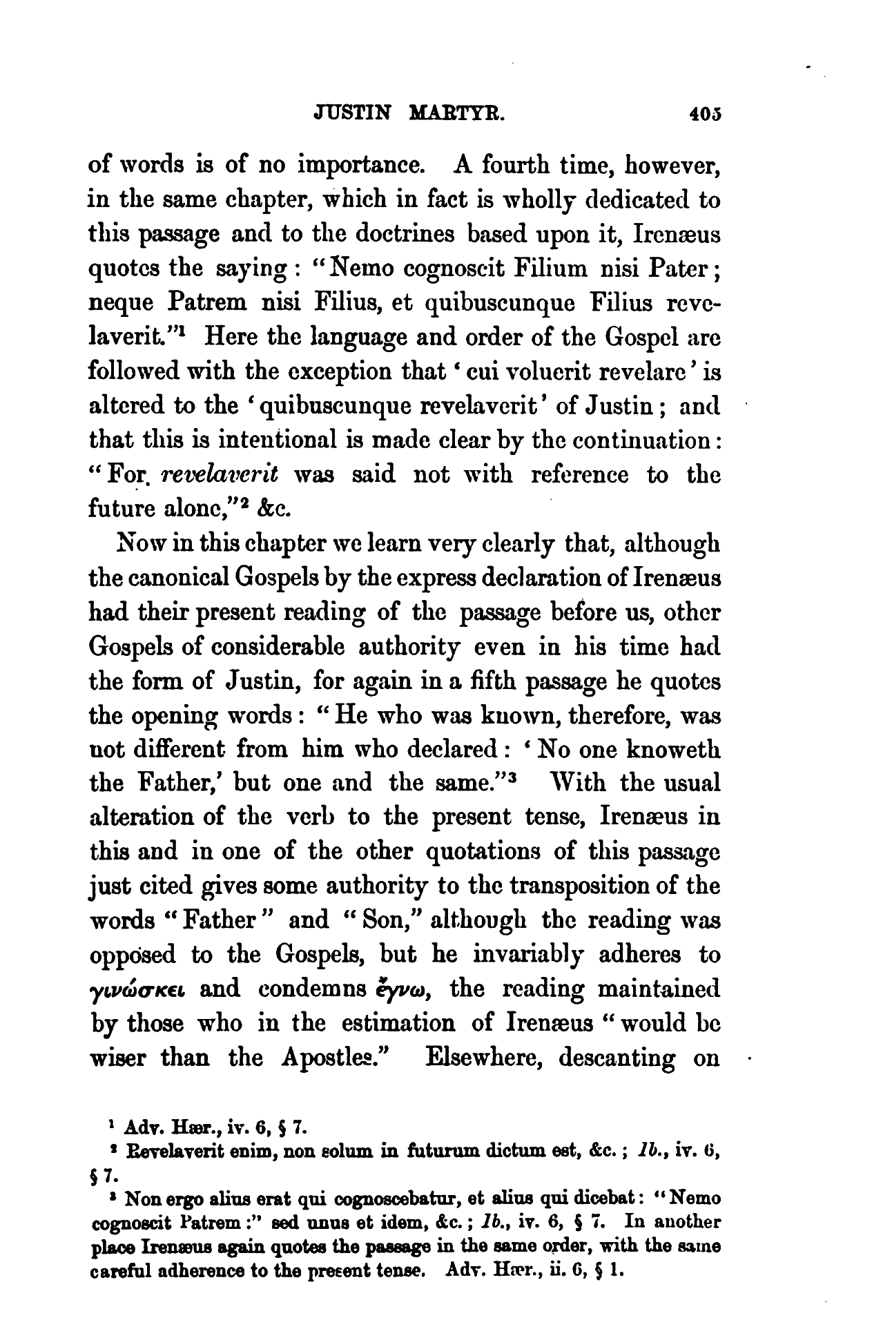 The first point (1) to which I shall refer is an elaborate argument by Dr. Lightfoot regarding the "Silence of Eusebius." (2) I had called attention to the importance of considering the silence of the Fathers, under certain conditions;(3) and I might, omitting his curious limitation, adopt Dr. Lightfoot's opening comment upon this as singularly descriptive of the state of the case: "In one province more especially, relating to the external evidences for the Gospels, silence occupies a prominent place." Dr. Lightfoot proposes to interrogate this "mysterious oracle," and he considers that "the response elicited will not be at all ambiguous." I might again agree with him, but that unambiguous response can scarcely be pronounced very satisfactory for the Gospels. Such silence may be very eloquent, but after all it is only the eloquence of—silence. I have not yet met with the argument anywhere that, because none of the early Fathers quote our Canonical Gospels, or say anything with regard to them, the fact is unambiguous