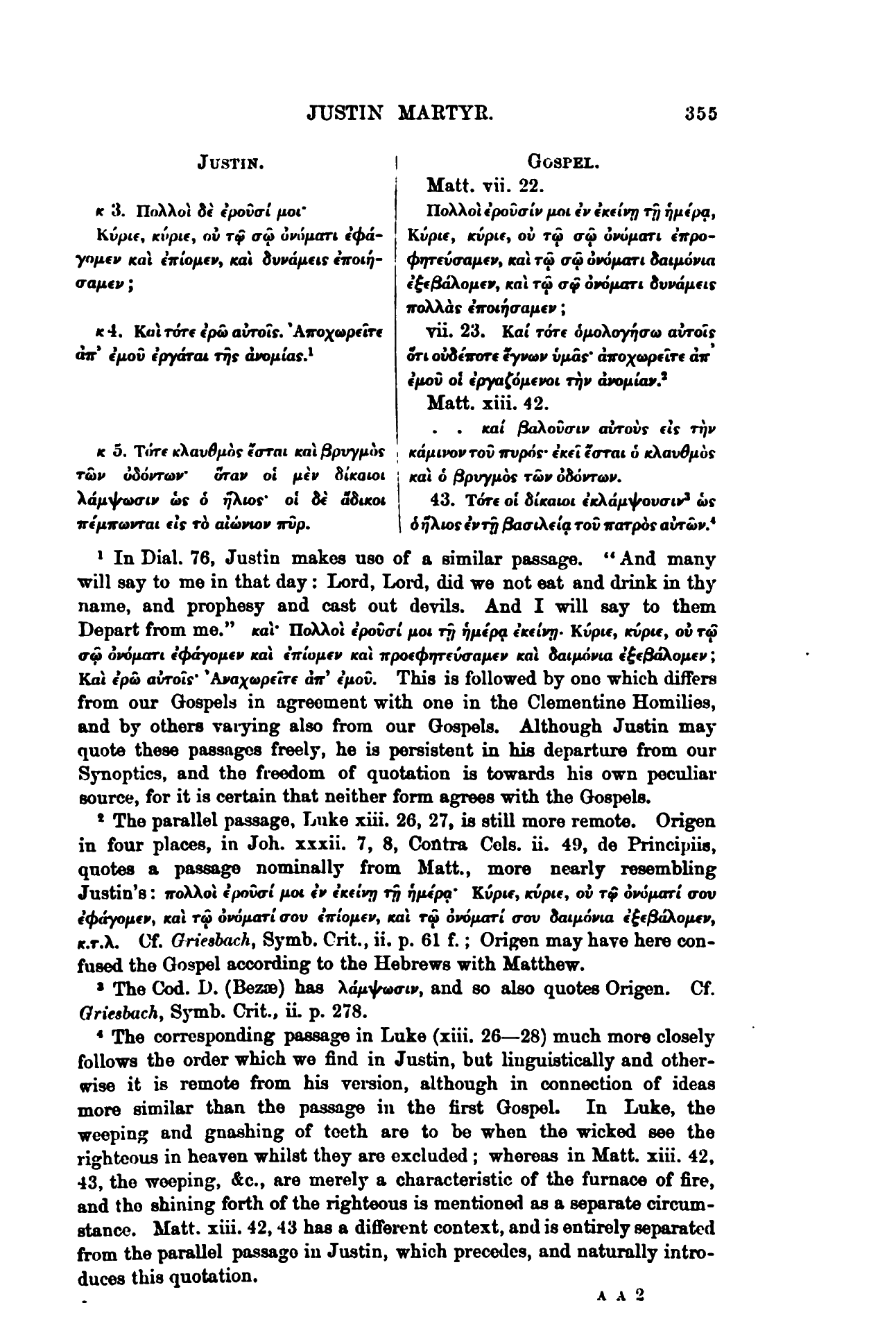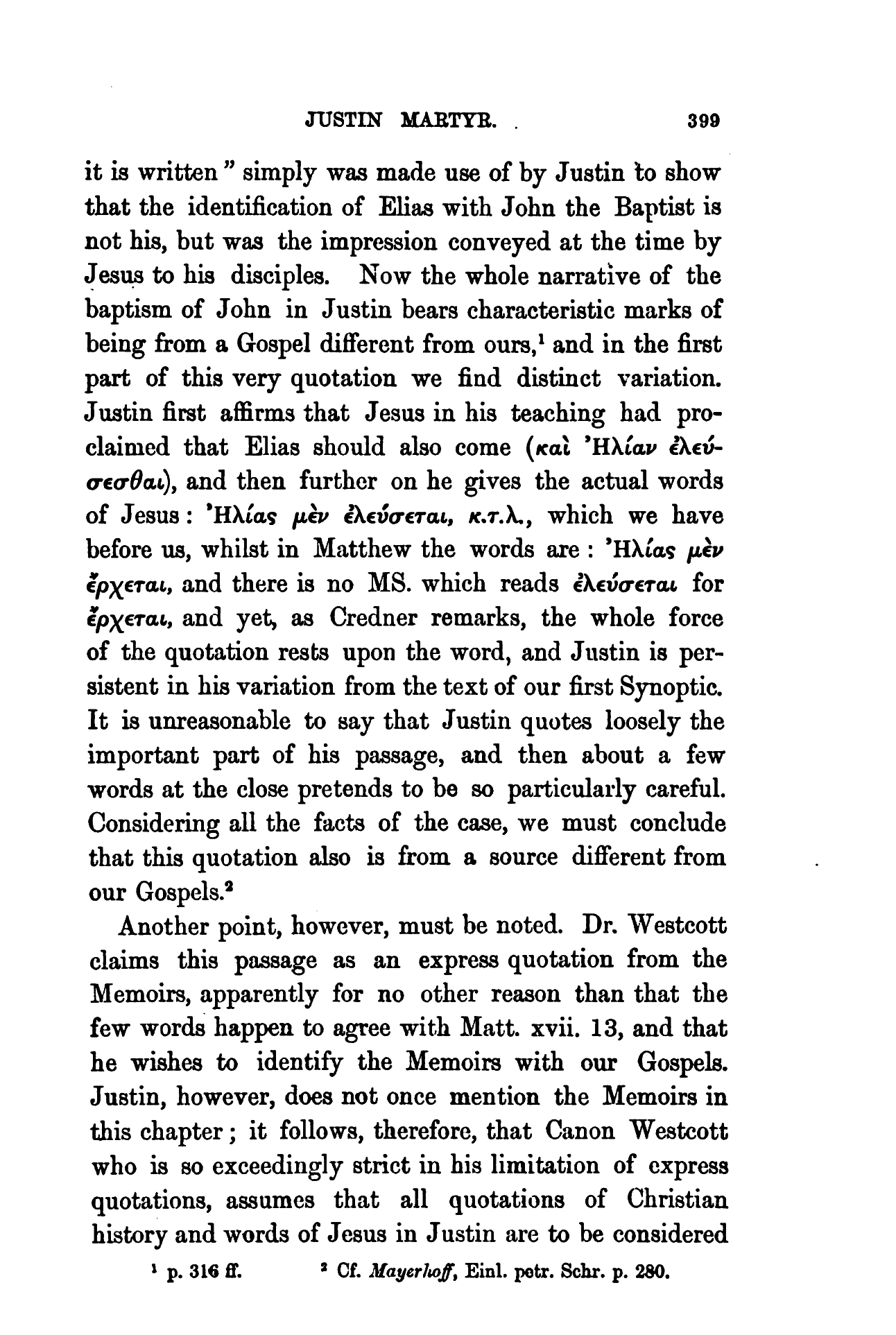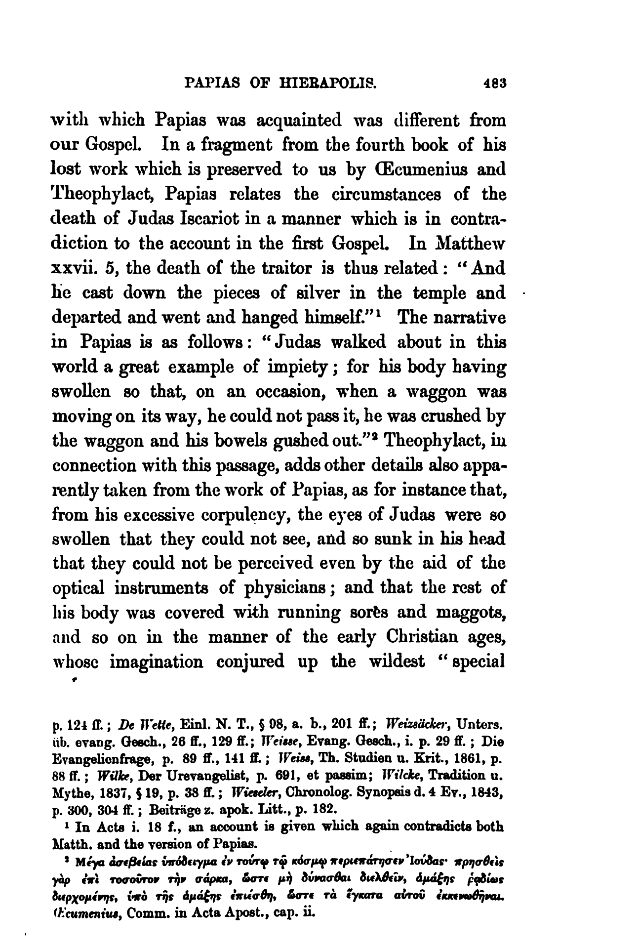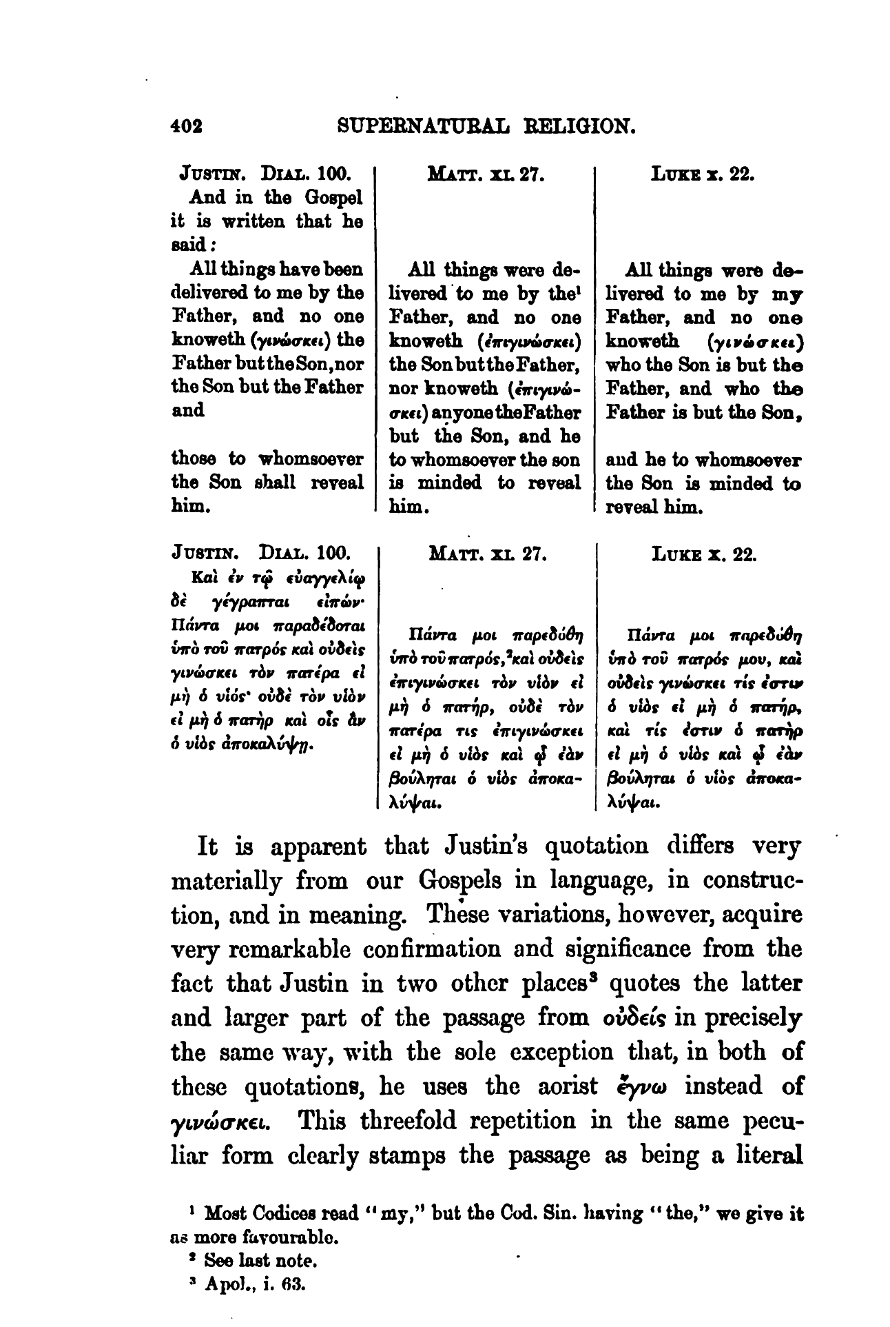 The first point (1) to which I shall refer is an elaborate argument by Dr. Lightfoot regarding the "Silence of Eusebius." (2) I had called attention to the importance of considering the silence of the Fathers, under certain conditions;(3) and I might, omitting his curious limitation, adopt Dr. Lightfoot's opening comment upon this as singularly descriptive of the state of the case: "In one province more especially, relating to the external evidences for the Gospels, silence occupies a prominent place." Dr. Lightfoot proposes to interrogate this "mysterious oracle," and he considers that "the response elicited will not be at all ambiguous." I might again agree with him, but that unambiguous response can scarcely be pronounced very satisfactory for the Gospels. Such silence may be very eloquent, but after all it is only the eloquence of—silence. I have not yet met with the argument anywhere that, because none of the early Fathers quote our Canonical Gospels, or say anything with regard to them, the fact is unambiguous
