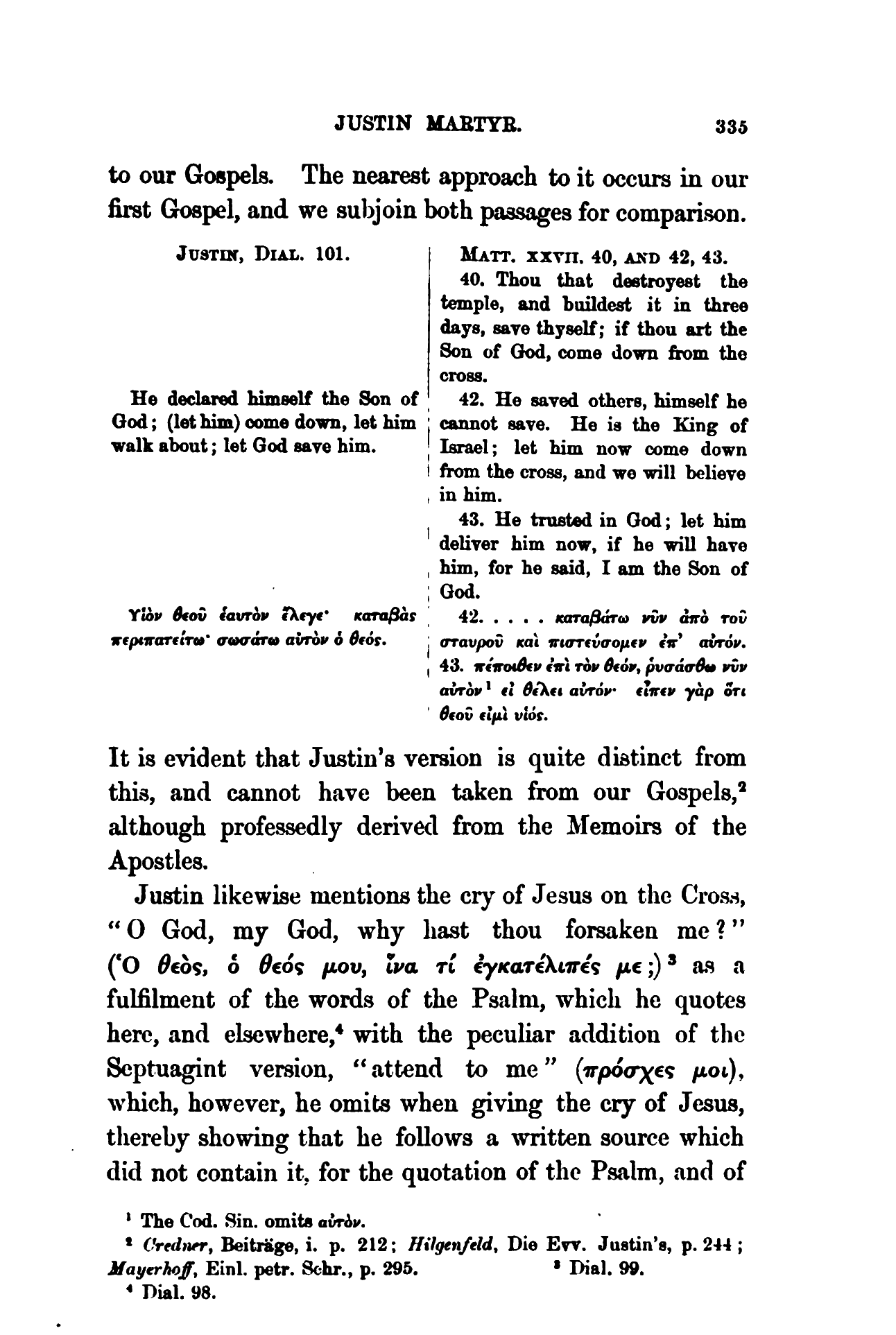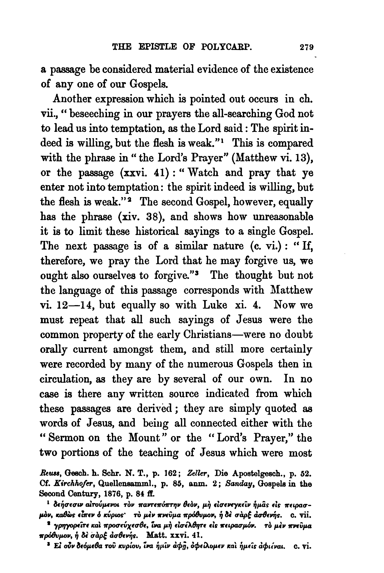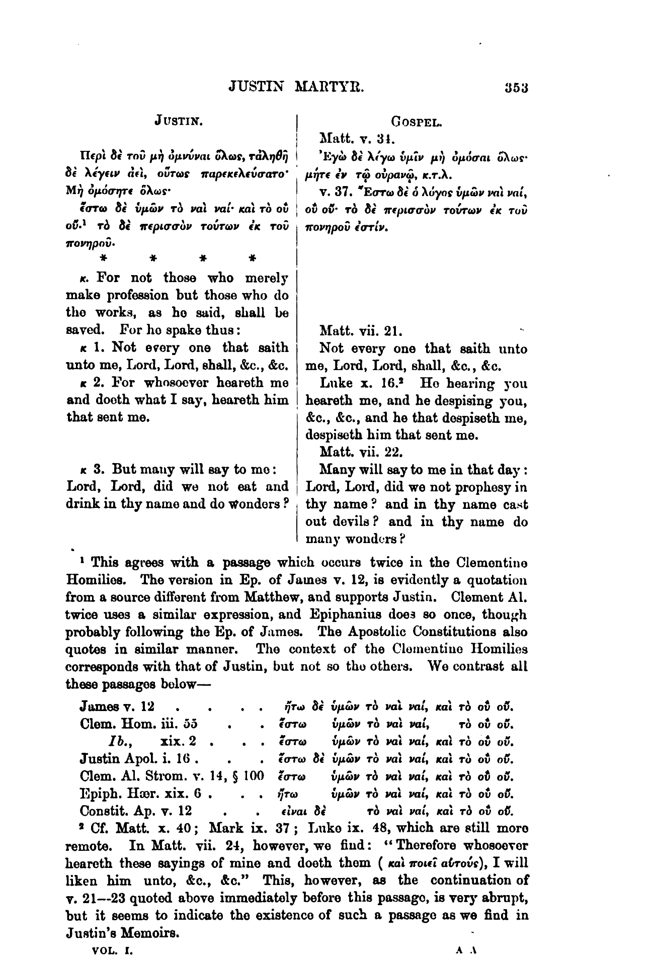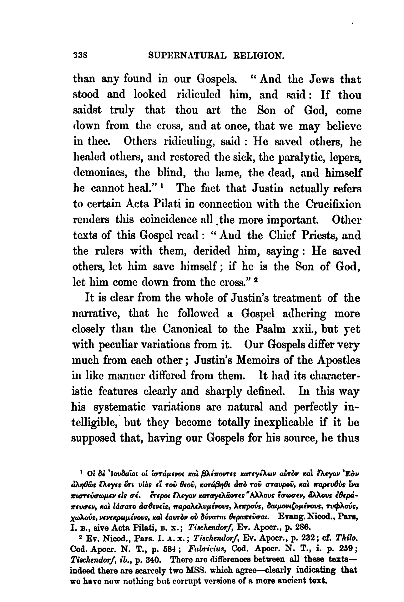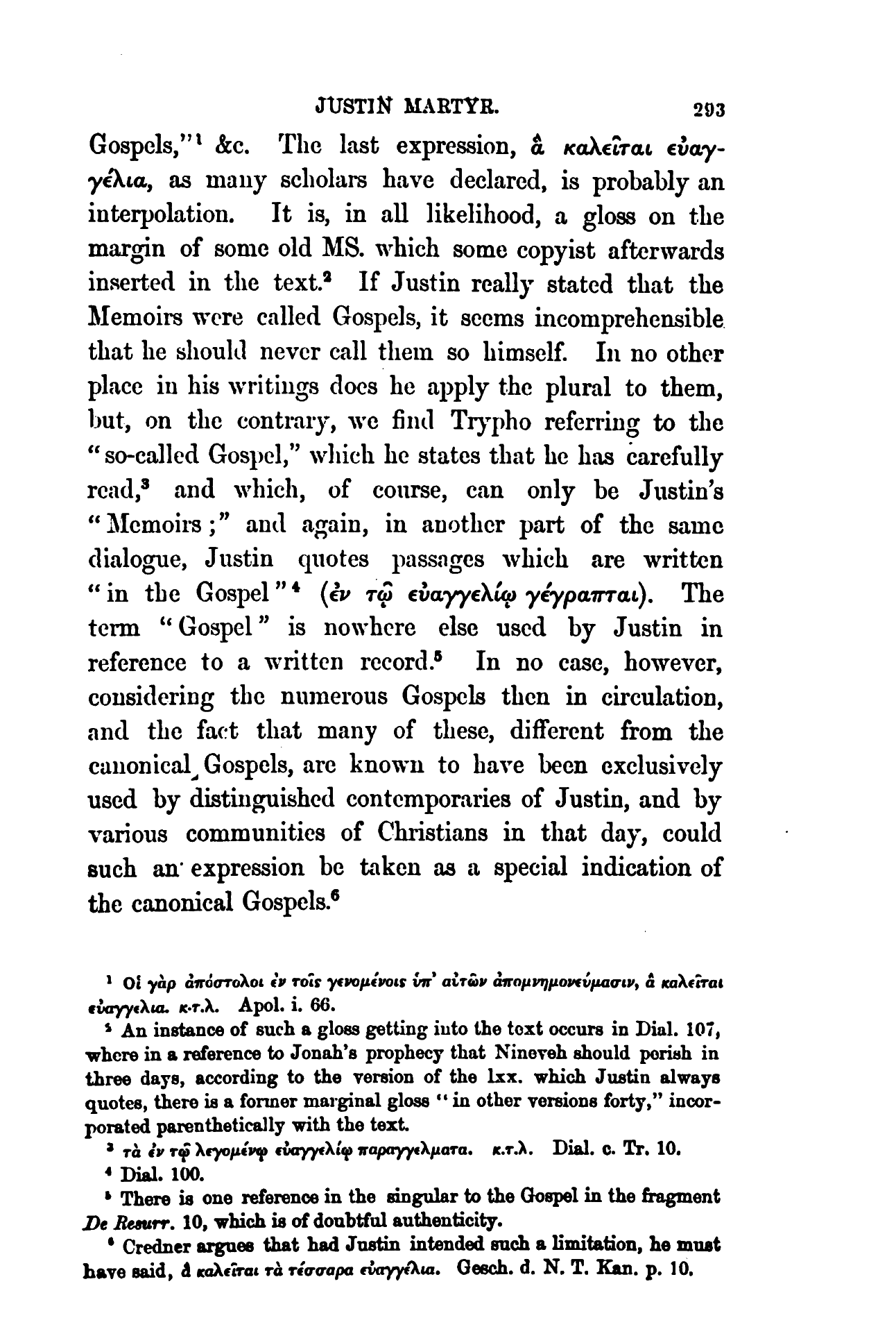 The first point (1) to which I shall refer is an elaborate argument by Dr. Lightfoot regarding the "Silence of Eusebius." (2) I had called attention to the importance of considering the silence of the Fathers, under certain conditions;(3) and I might, omitting his curious limitation, adopt Dr. Lightfoot's opening comment upon this as singularly descriptive of the state of the case: "In one province more especially, relating to the external evidences for the Gospels, silence occupies a prominent place." Dr. Lightfoot proposes to interrogate this "mysterious oracle," and he considers that "the response elicited will not be at all ambiguous." I might again agree with him, but that unambiguous response can scarcely be pronounced very satisfactory for the Gospels. Such silence may be very eloquent, but after all it is only the eloquence of—silence. I have not yet met with the argument anywhere that, because none of the early Fathers quote our Canonical Gospels, or say anything with regard to them, the fact is unambiguous