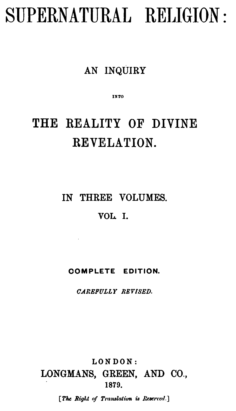 The Project Gutenberg EBook of Supernatural Religion, Vol. I. (of III), by