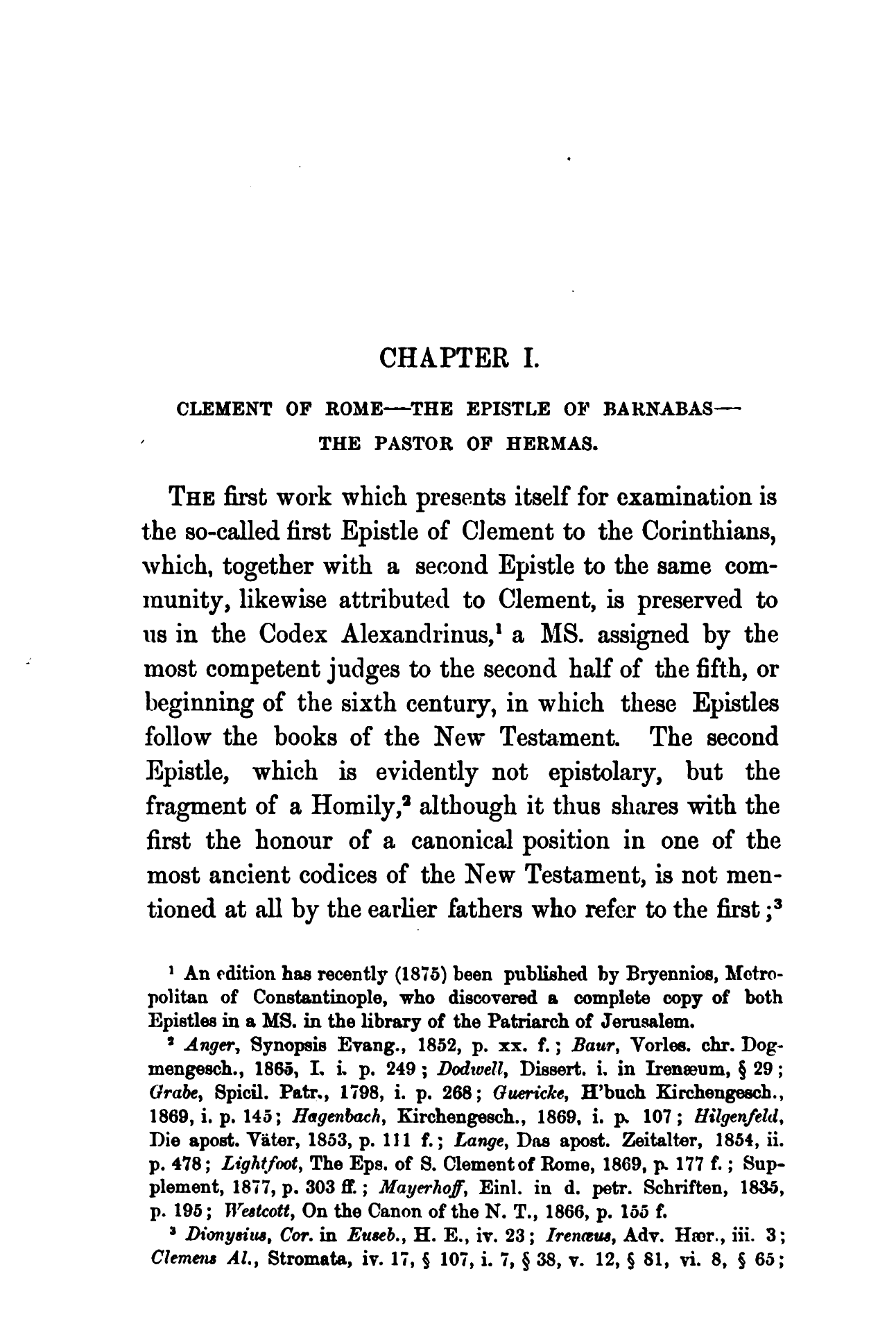 CHAPTER I. CLEMENT OF ROME—THE EPISTLE OF BARNABAS—THE PASTOR OF HERMAS