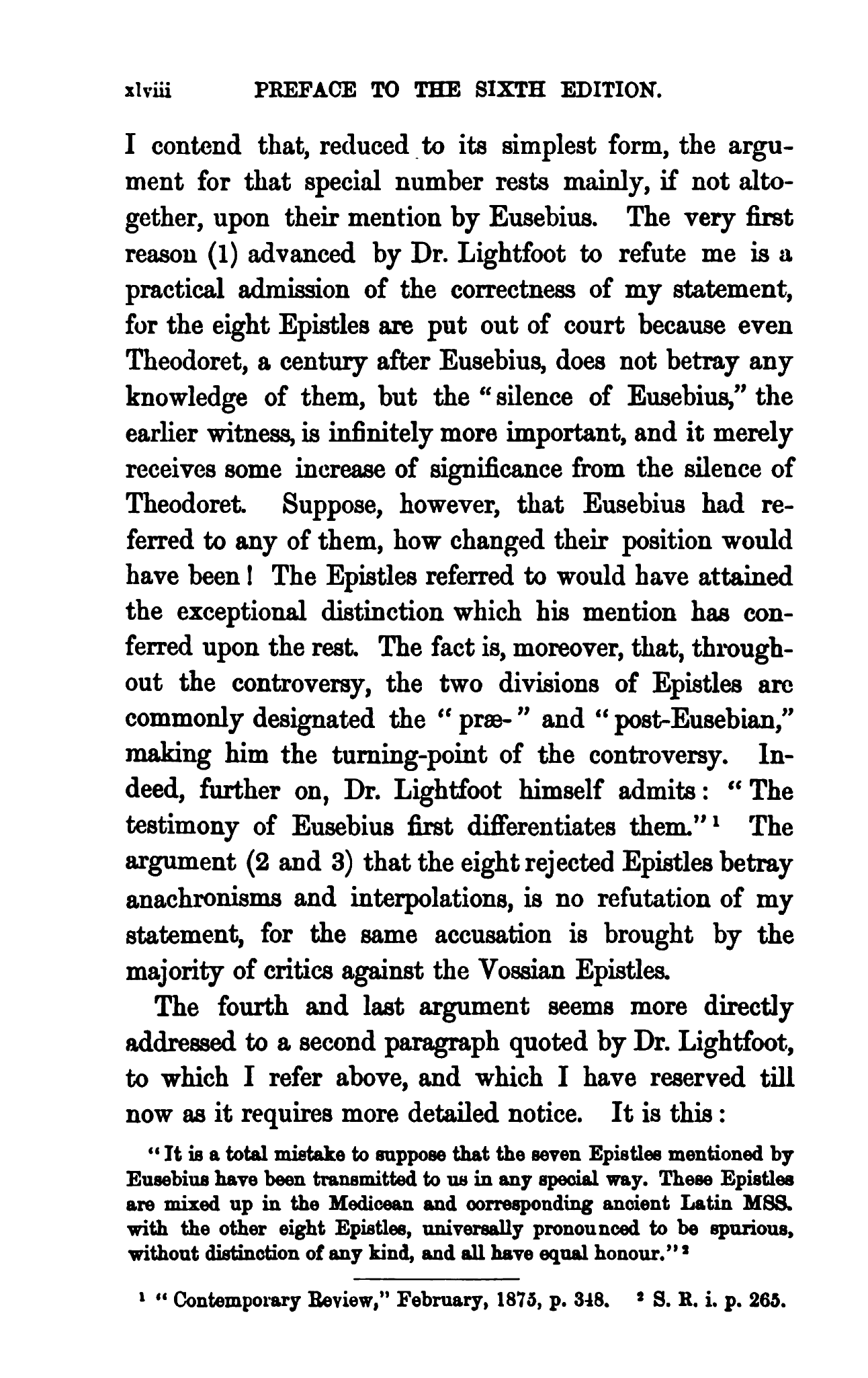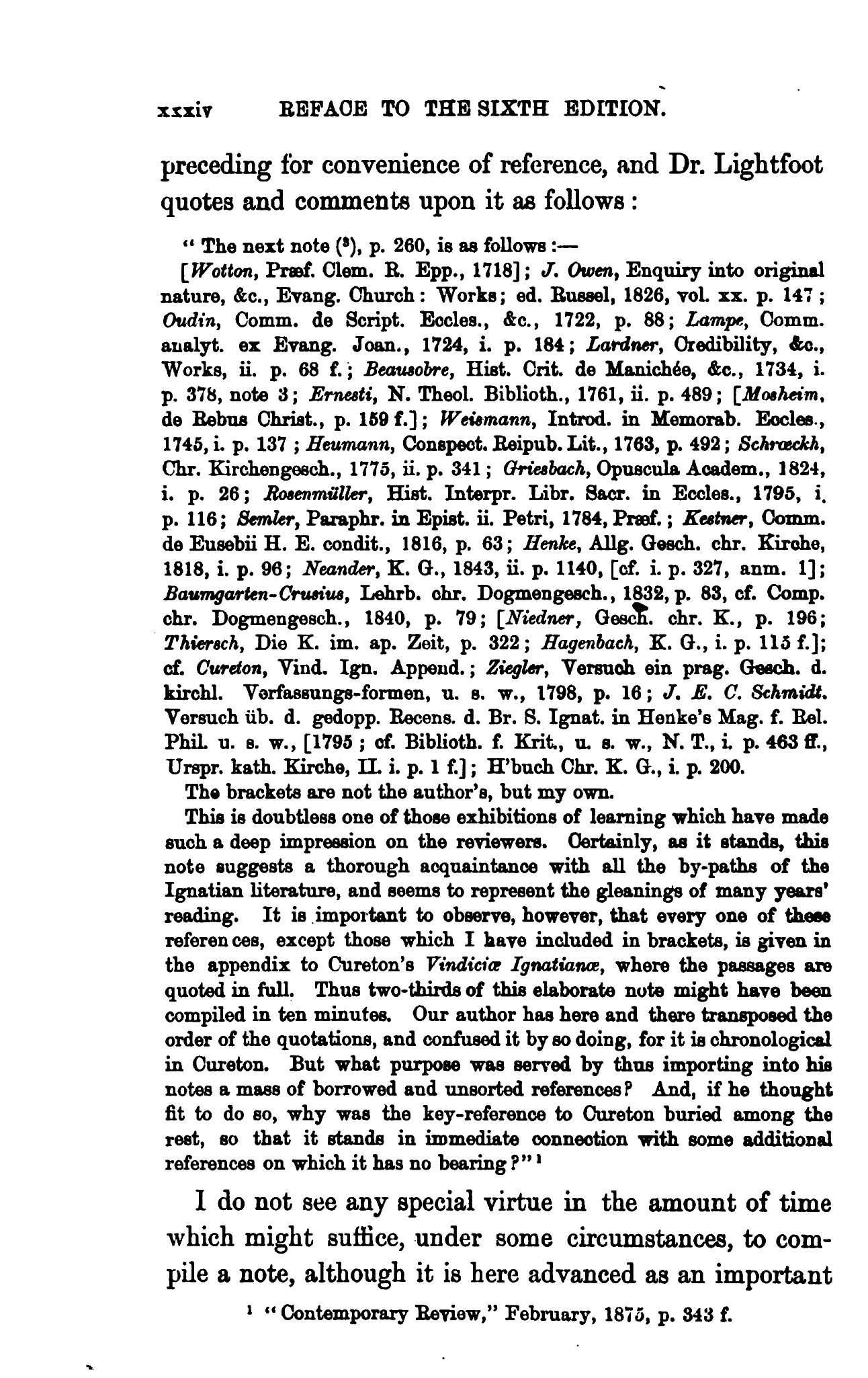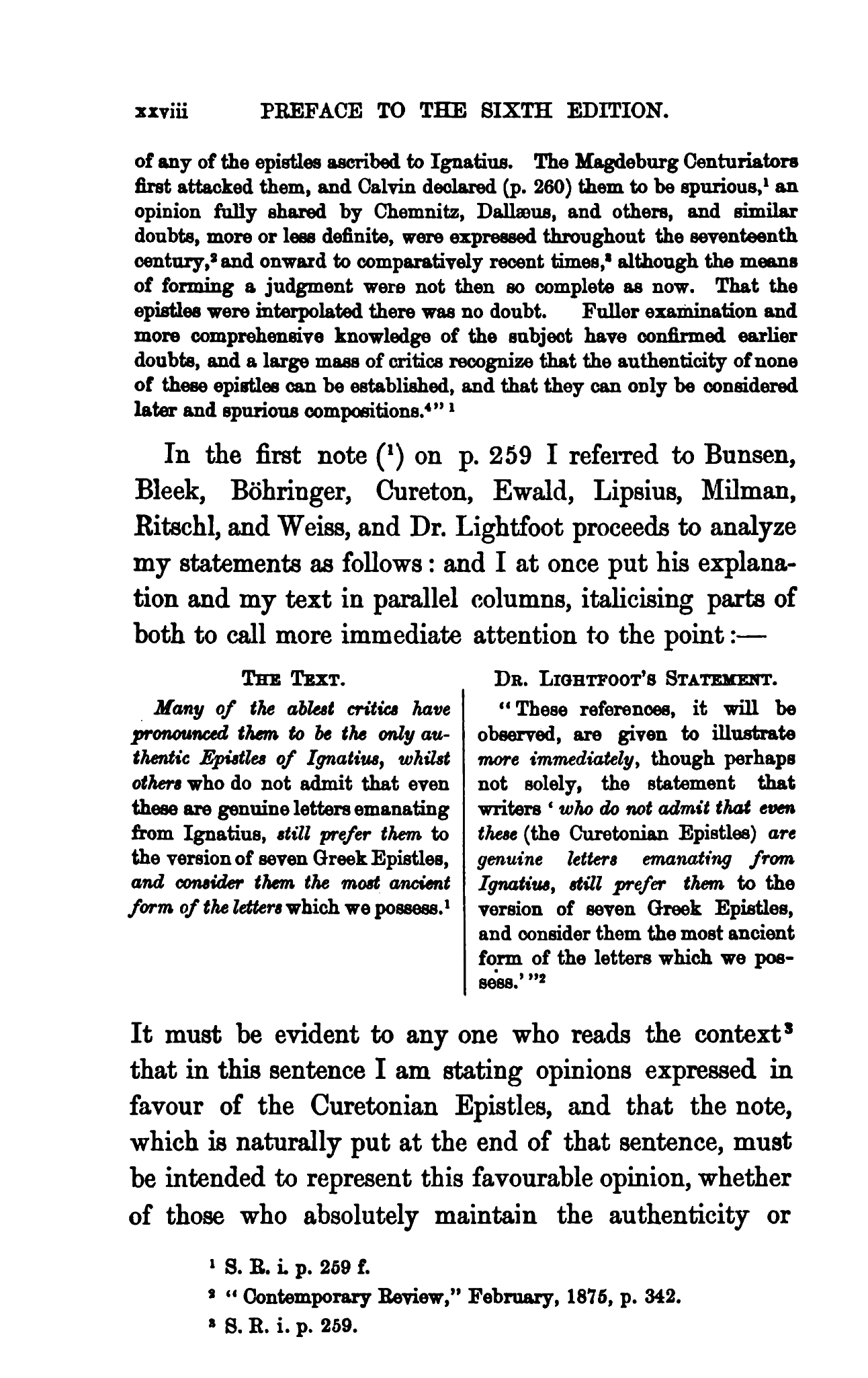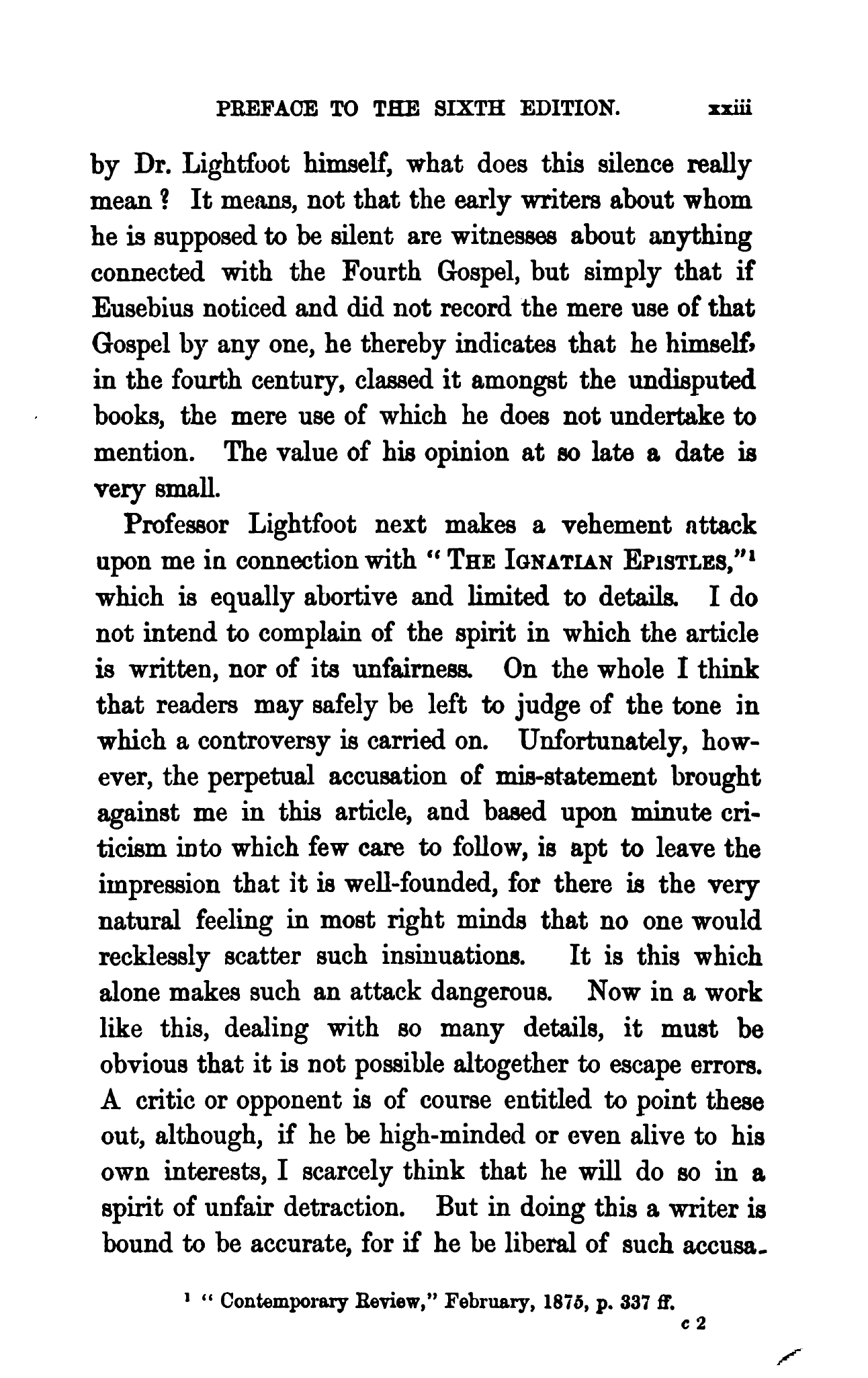 I must now address myself more particularly to two of my critics who, with great ability and learning, have subjected this work to the most elaborate and microscopic criticism of which personal earnestness and official zeal are capable. I am sincerely obliged to Professor Lightfoot