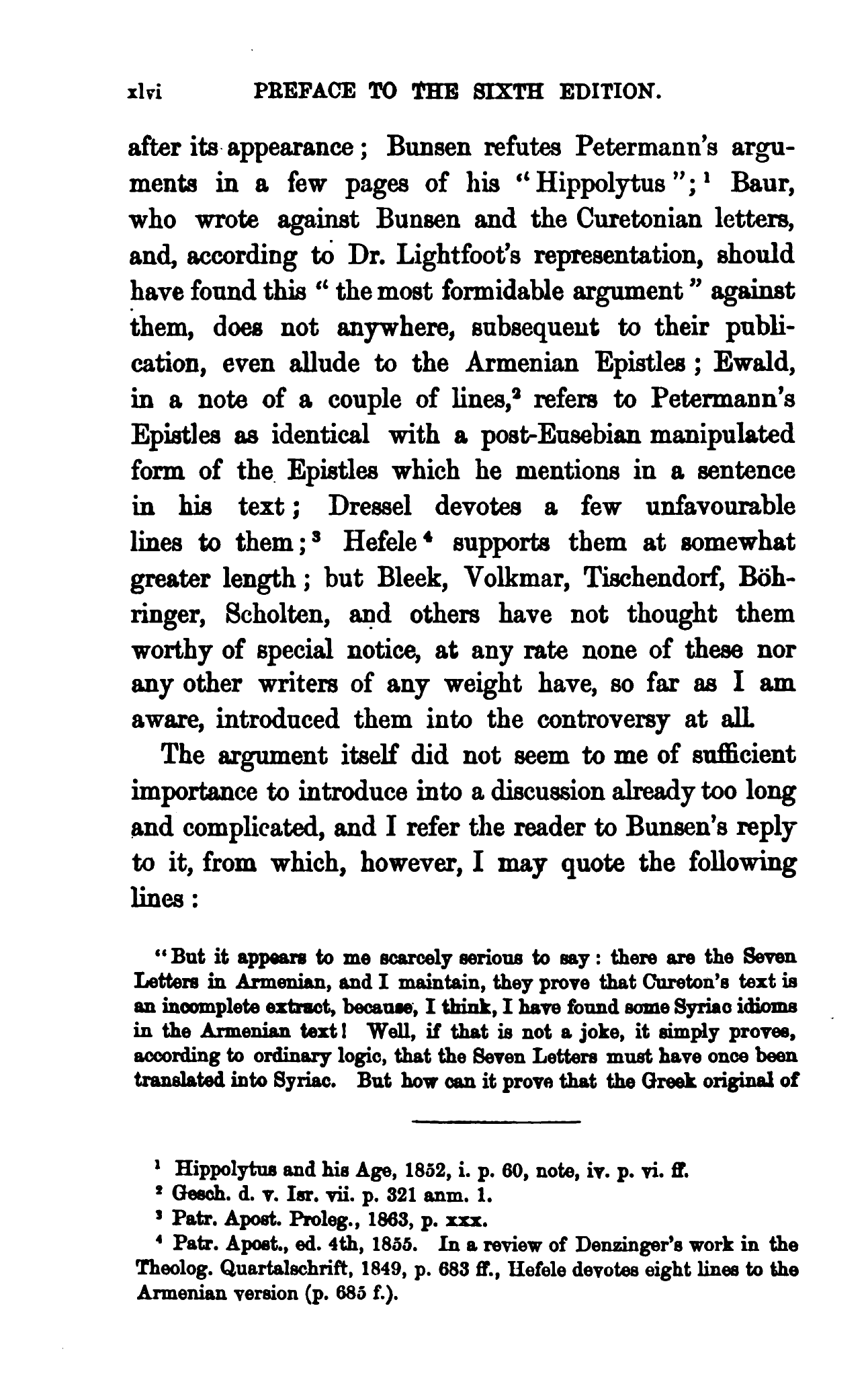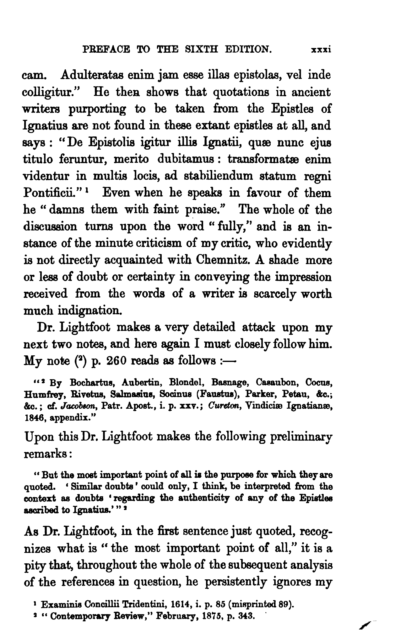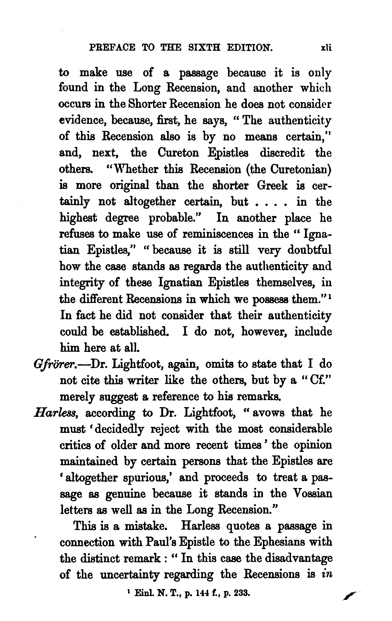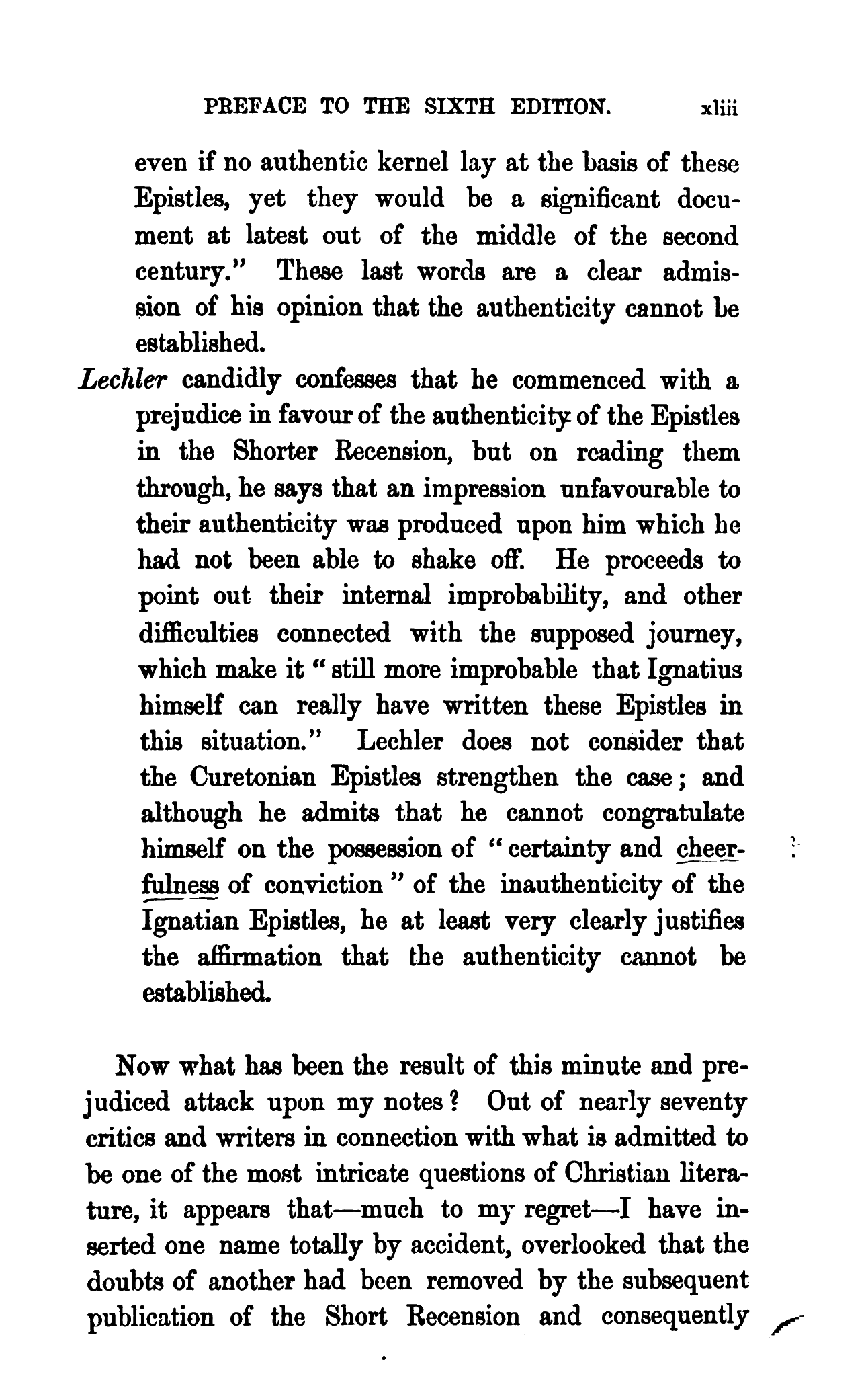 I must now address myself more particularly to two of my critics who, with great ability and learning, have subjected this work to the most elaborate and microscopic criticism of which personal earnestness and official zeal are capable. I am sincerely obliged to Professor Lightfoot