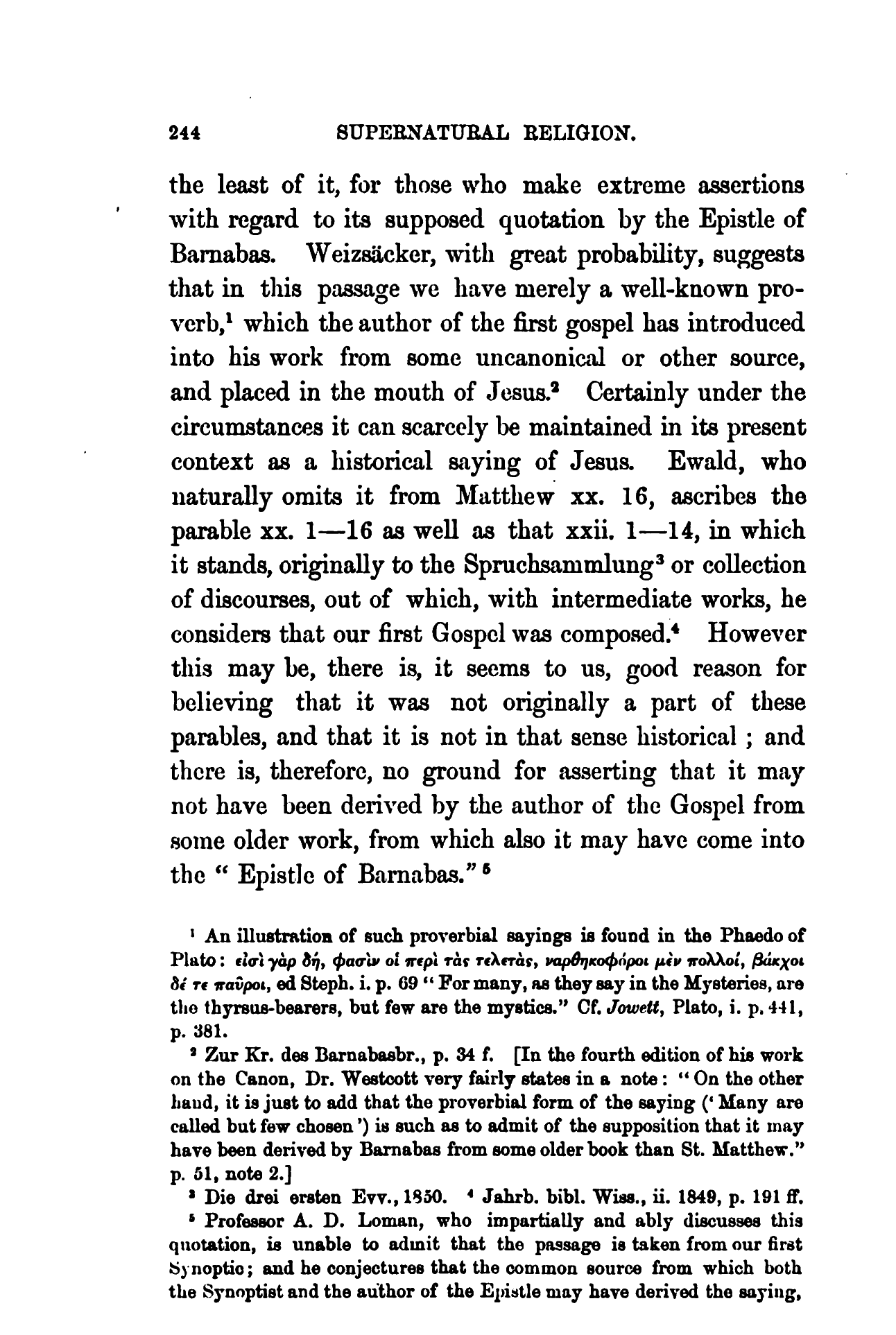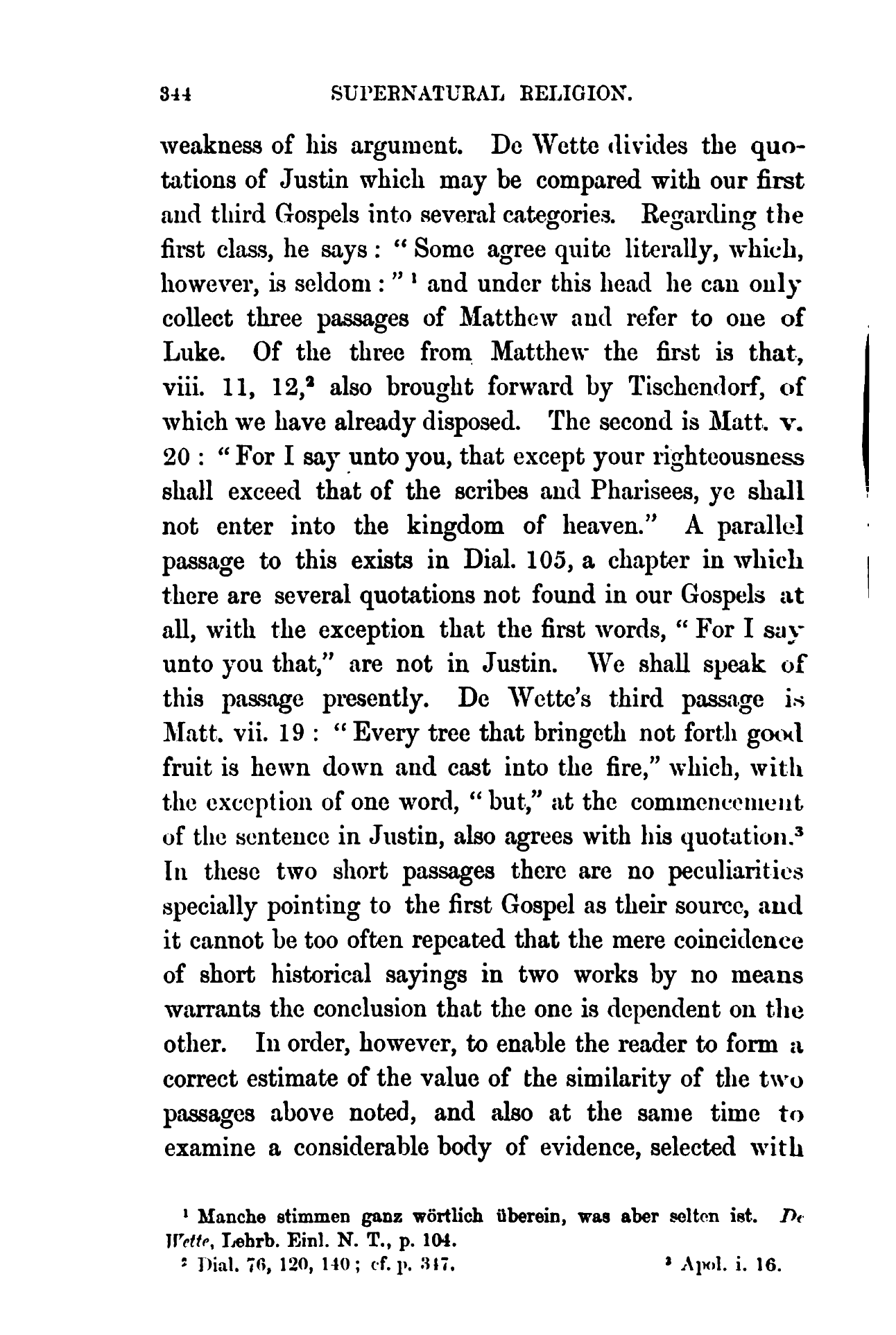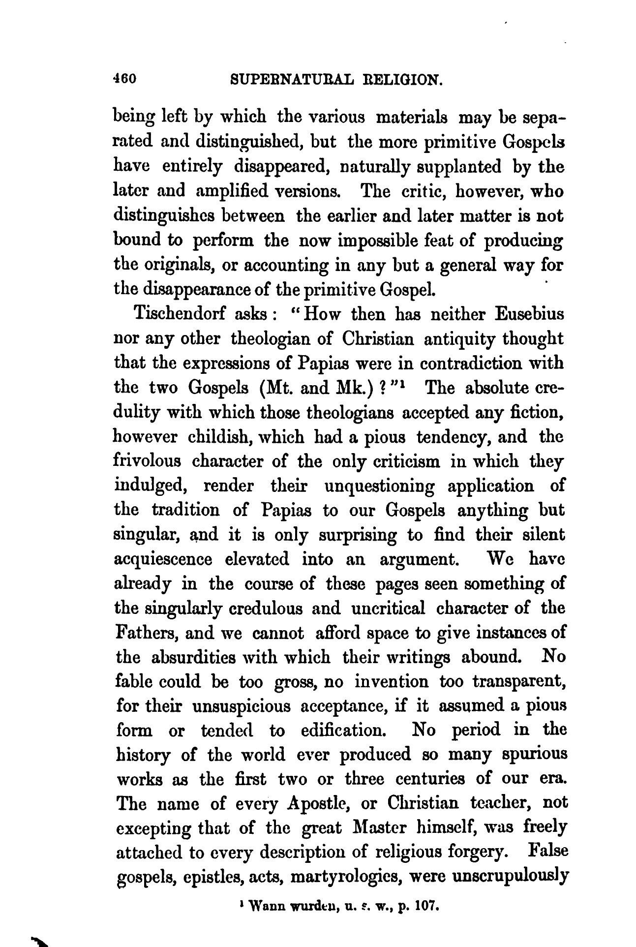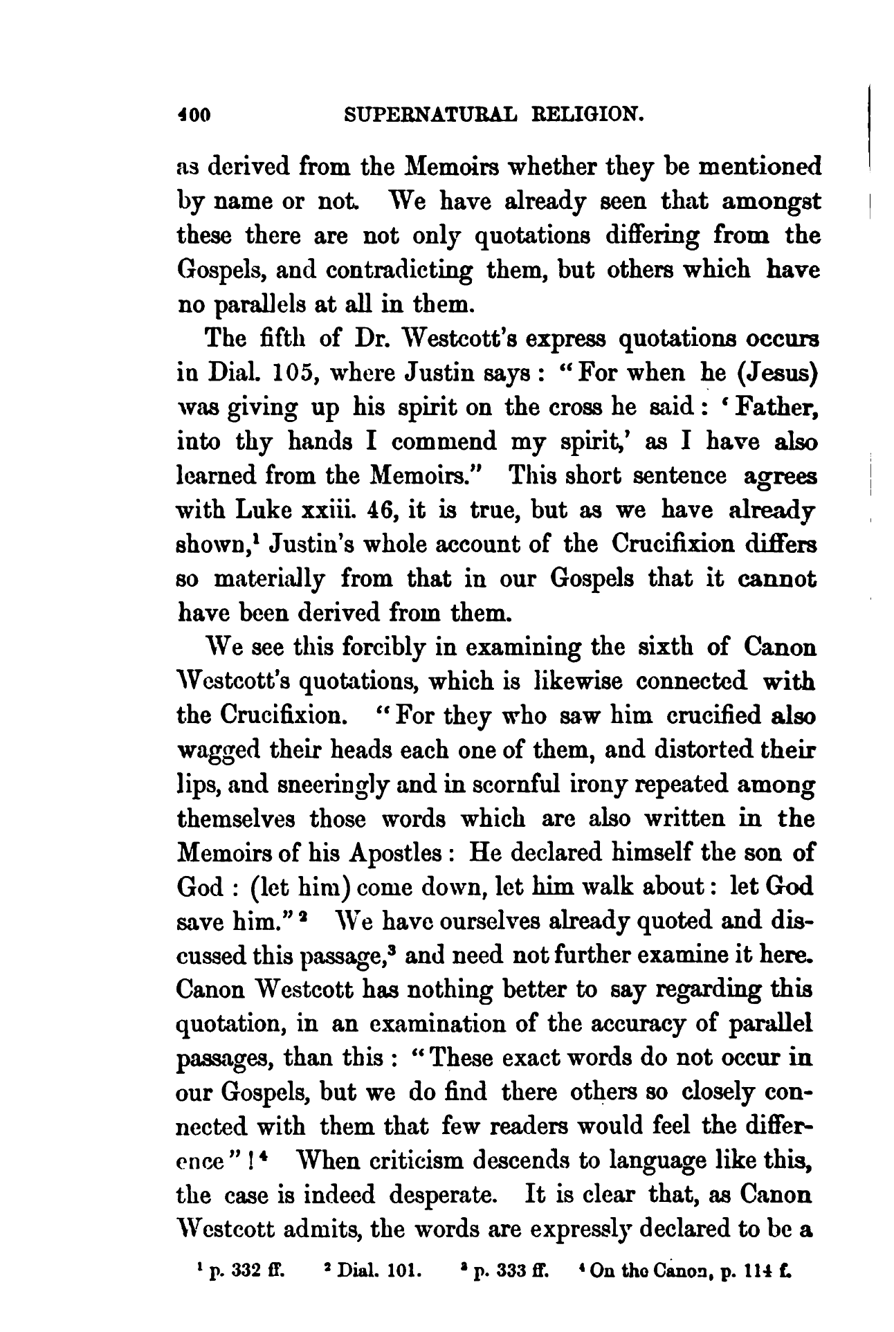 "If they are, then the reader will not fail to see how large a part of the argument in 'Supernatural Religion' has crumbled to pieces." (1)