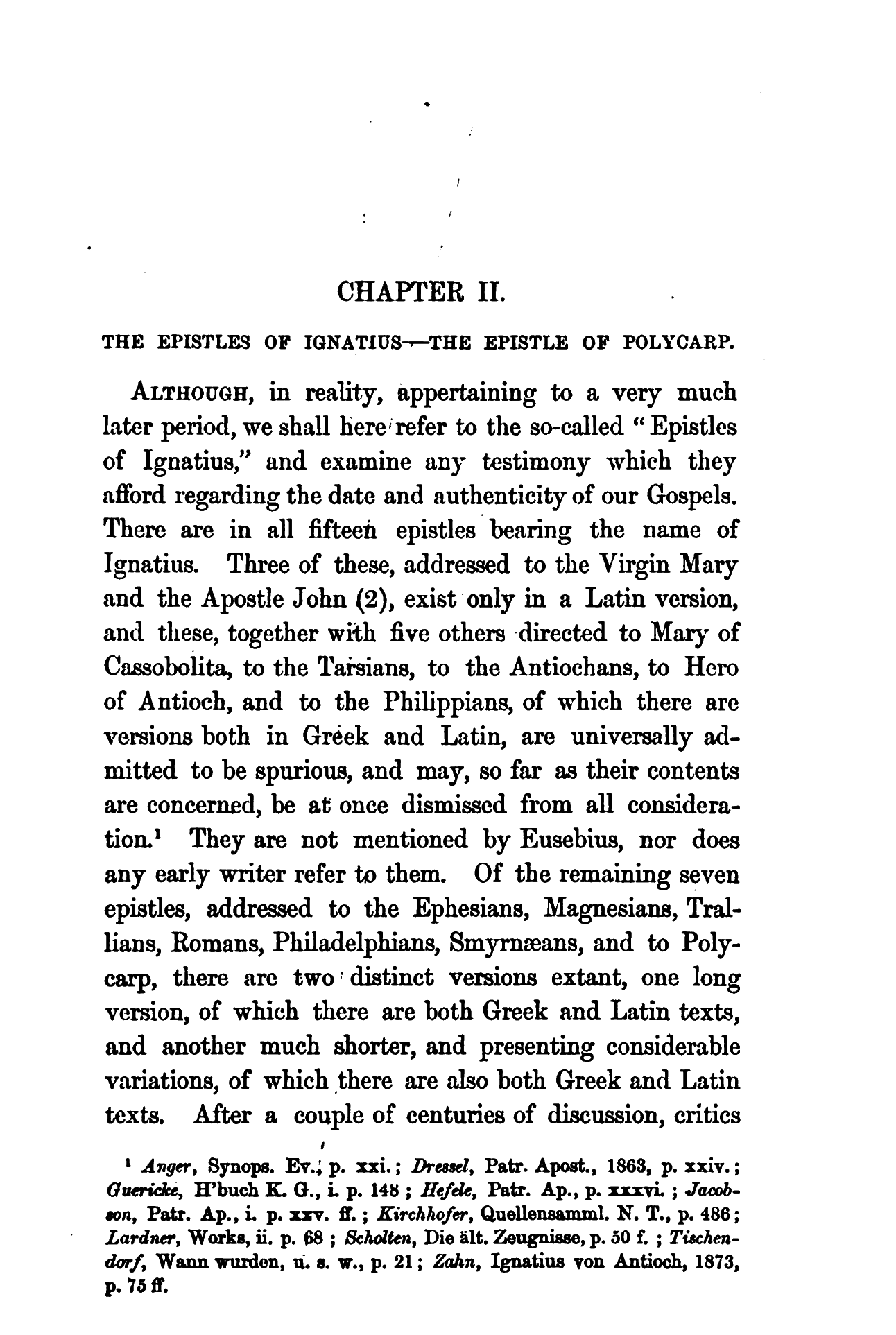 Dr. Lightfoot, however, has not rightly understood him. Lipsius has only withdrawn his opinion that the Syriac letters are authentic, but whilst now asserting that in all their forms the Ignatian Epistles are spurious, he still