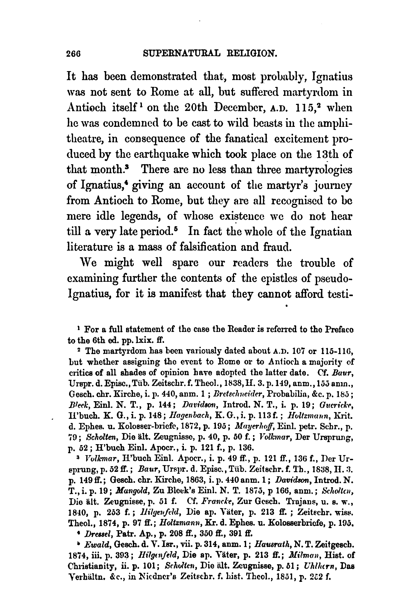 The first point attacked, like most of those subsequently assailed, is one of mere critical history. I wrote: "The strongest internal, as well as other evidence, into which space forbids our going in detail, has led (1) the majority of critics to recognize the Syriac version as the most genuine form of the letters of Ignatius extant, and (2) this is admitted by most of those who nevertheless deny the authenticity of any of the epistles."(2)