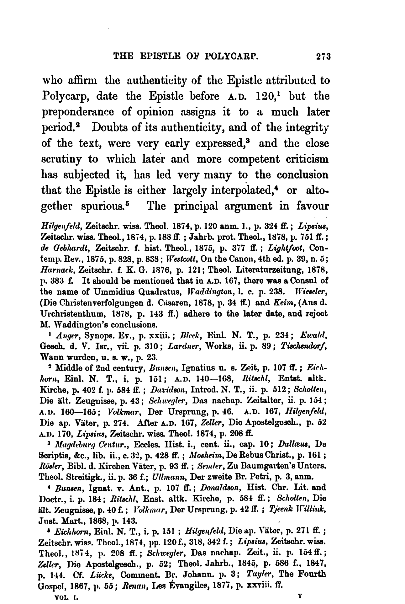 evidence that they were well acquainted with them, and considered them apostolic and authoritative. Dr. Lightfoot's argument from Silence is, for the present at least, limited to Eusebius.