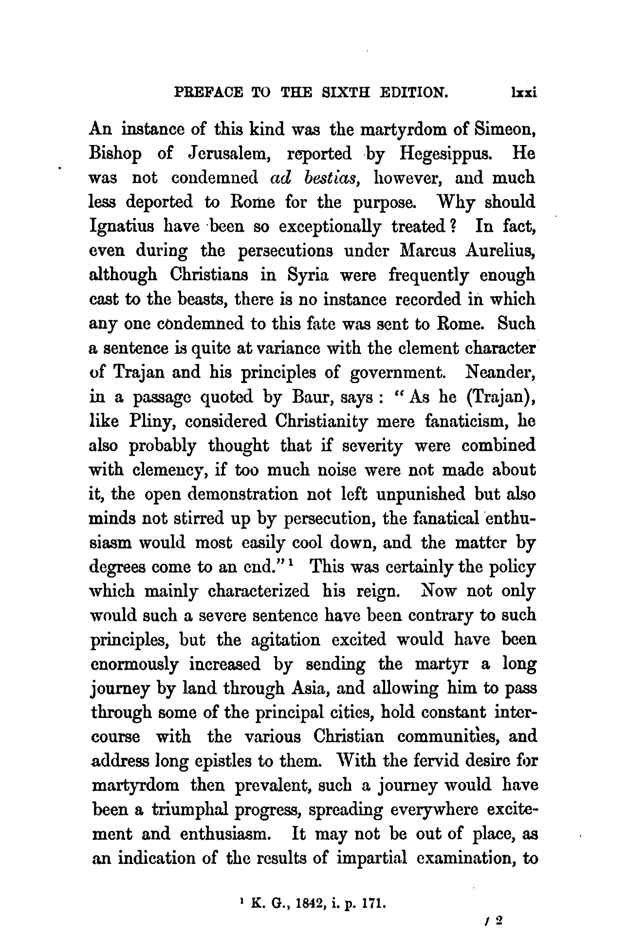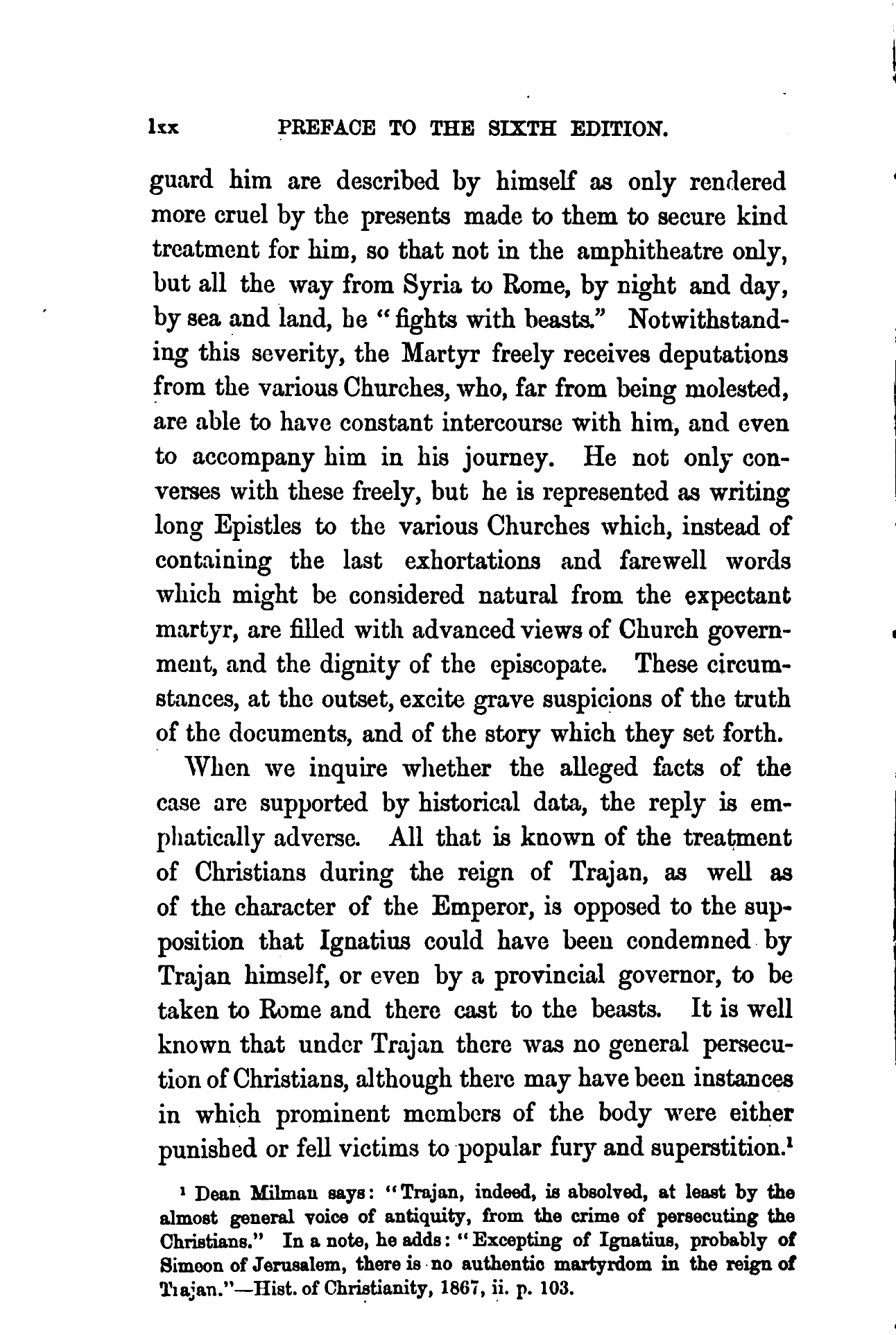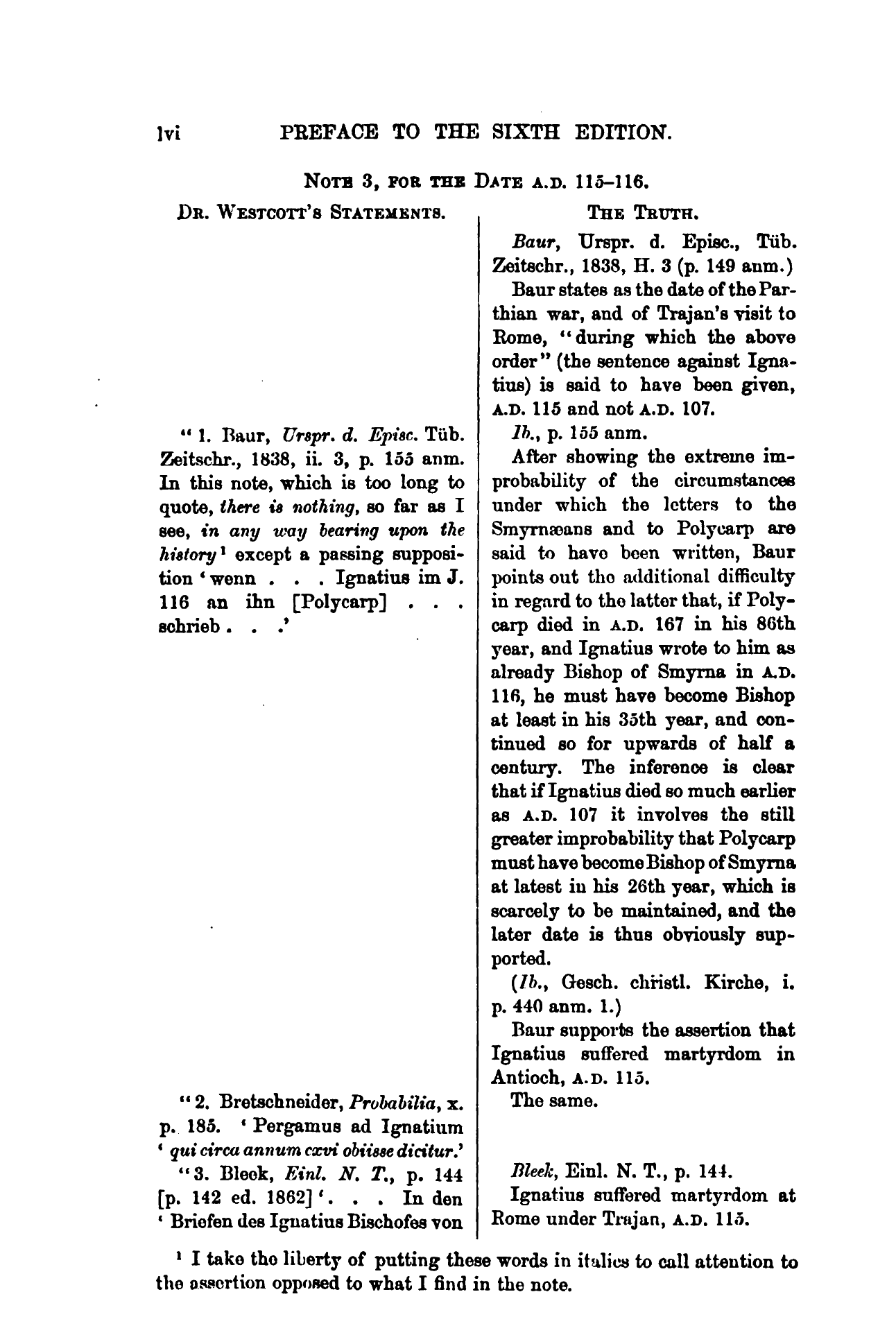 Professor Lightfoot next makes a vehement attack upon me in connection with "The Ignatian Epistles,"(1) which is equally abortive and limited to details. I do not intend to complain of the spirit in which the article is written, nor of its unfairness. On the whole I think that readers may safely be left to judge of the tone in which a controversy is carried on. Unfortunately, however, the perpetual accusation of mis-statement brought against me in this article, and based upon minute criticism into which few care to follow, is apt to leave the impression that it is well-founded, for there is the very natural feeling in most right minds that no one would recklessly scatter such insinuations. It is this which alone makes such an attack dangerous. Now in a work like this, dealing with so many details, it must be obvious that it is not possible altogether to escape errors. A critic or opponent is of course entitled to point these out, although, if he be high-minded or even alive to his own interests, I scarcely think that he will do so in a spirit of unfair detraction. But in doing this a writer is bound to be accurate, for if he be liberal of such accusations