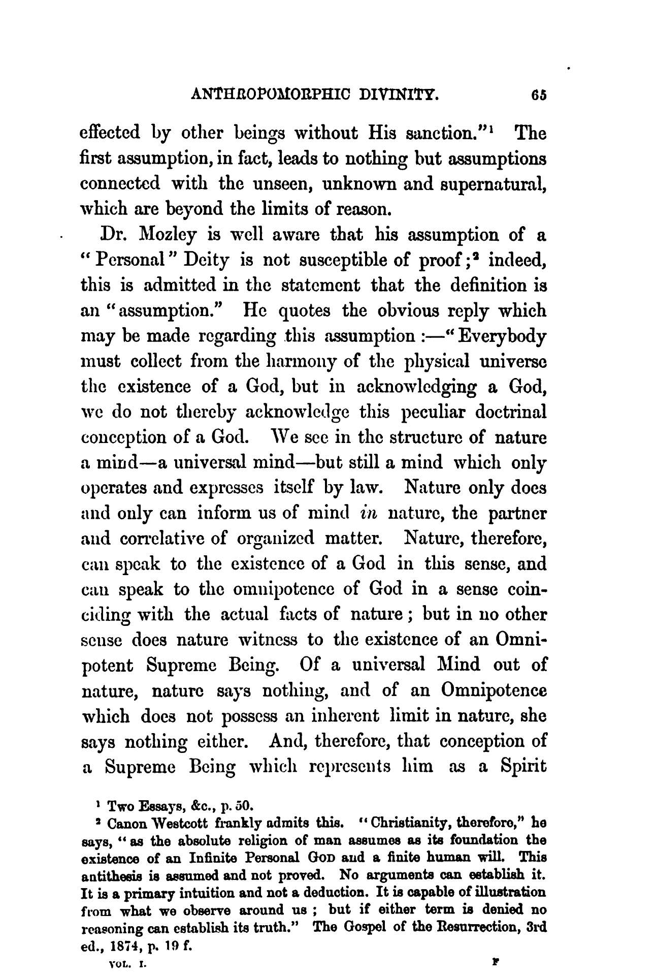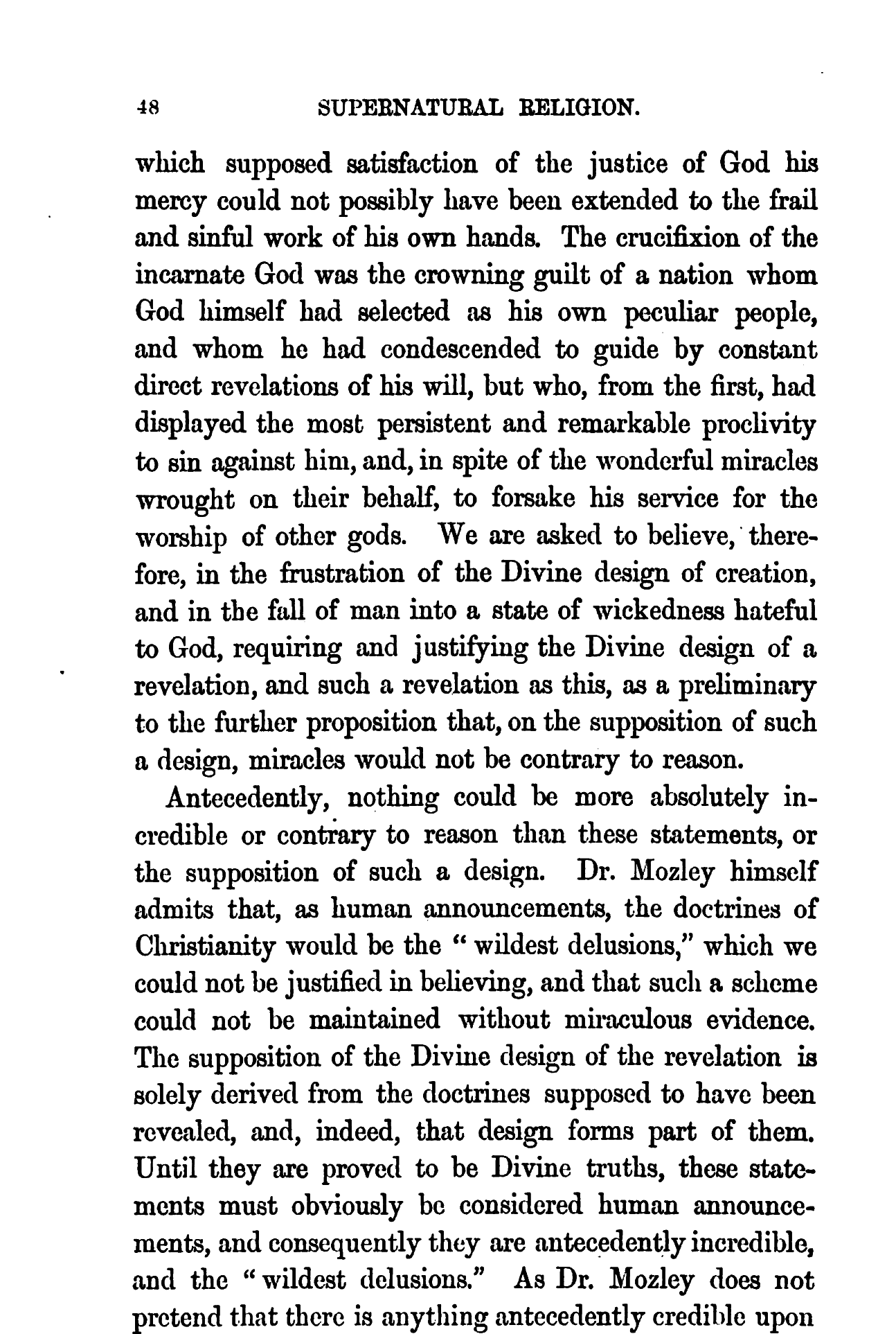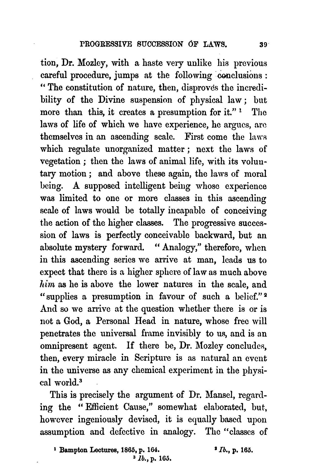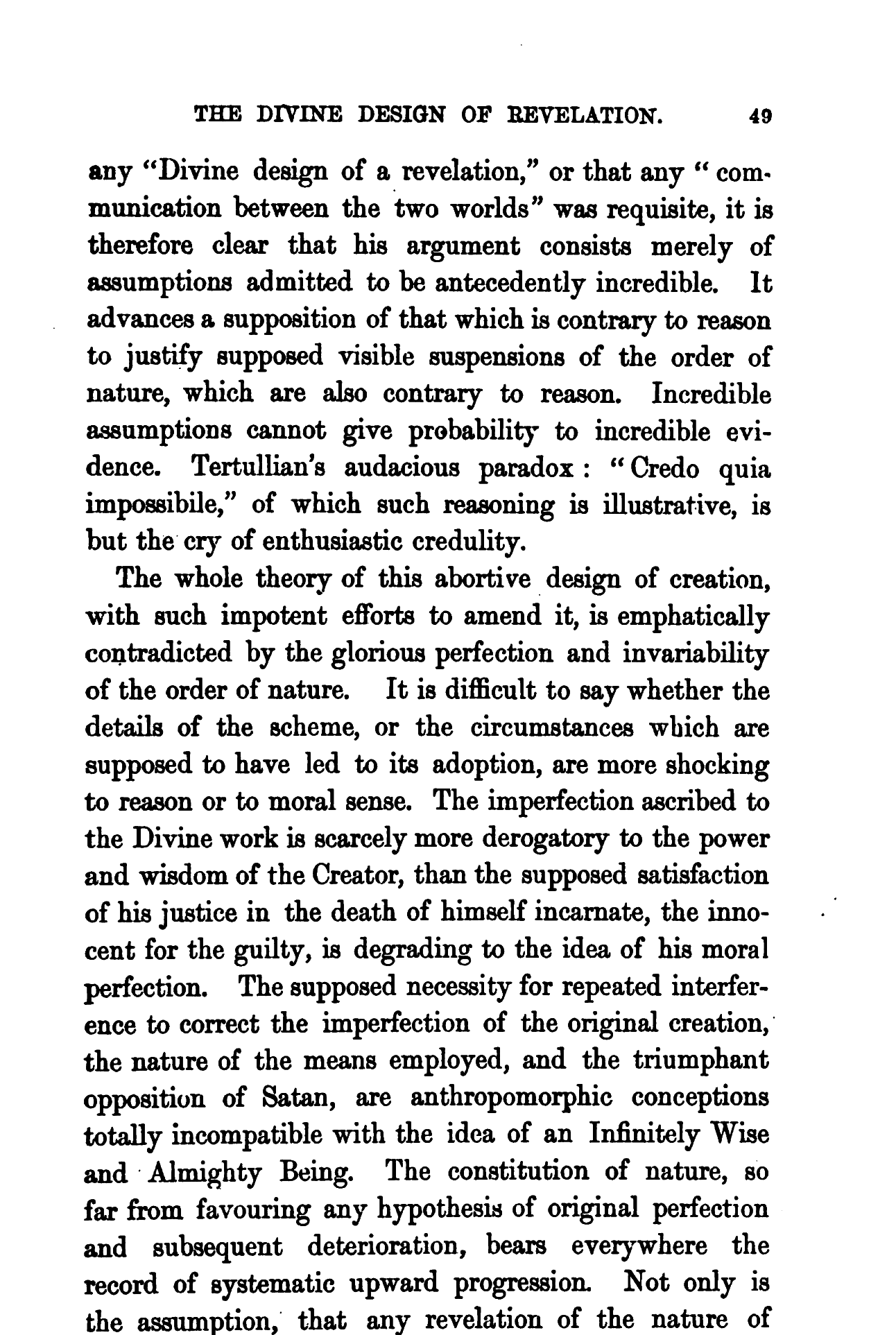 "This indeed is the fundamental assumption which lies at the basis of his reasoning; and the reader will not need to be reminded how much of the argument falls to pieces, if this basis should prove to be unsound. A wise master-builder would therefore have looked to his foundations first, and assured himself of their strength, before he piled up his fabric to this height. This our author has altogether neglected to do." (1)