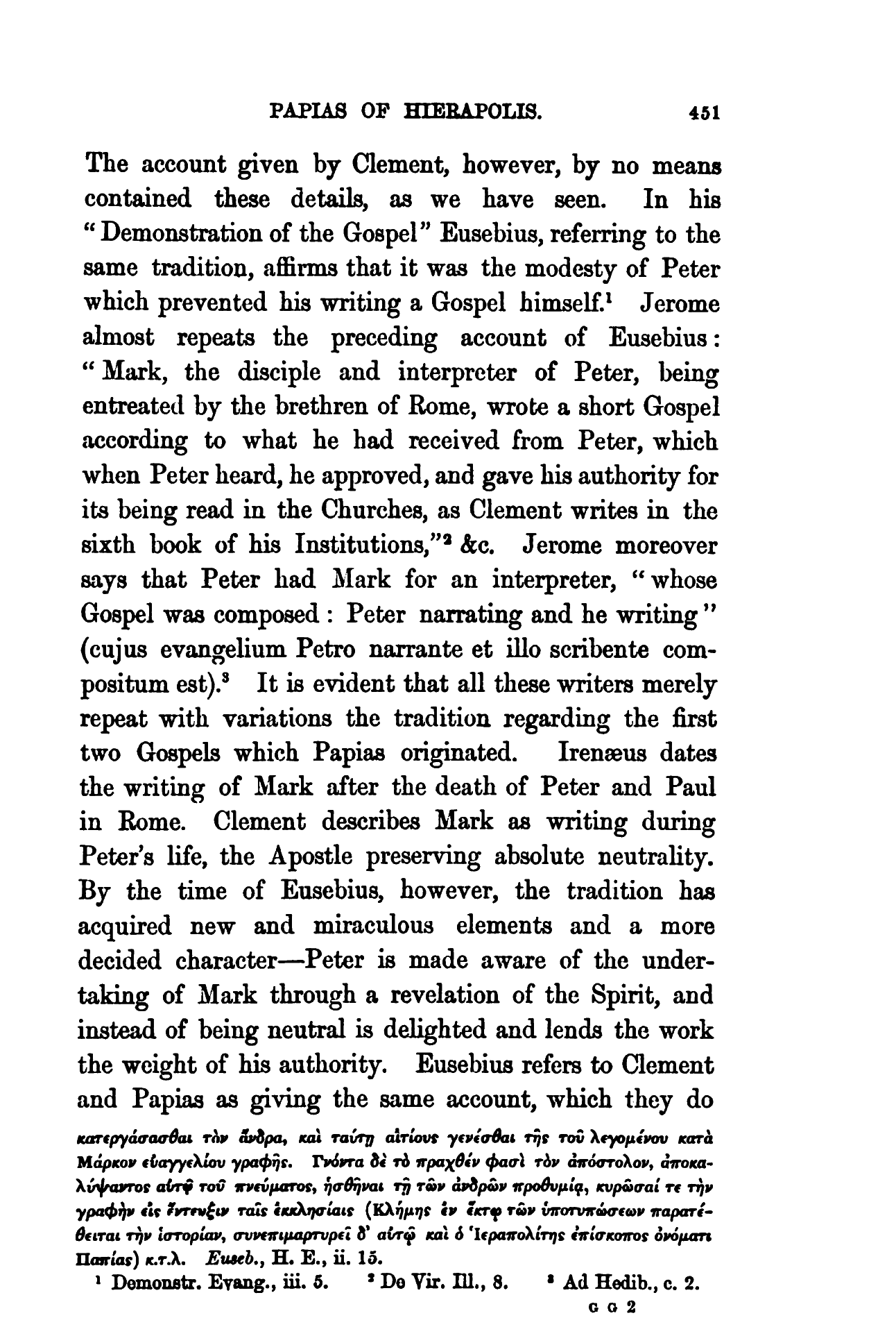 (3) But in their case he nowhere leads us to expect that he will allude to mere quotations however numerous and however precise."(1)