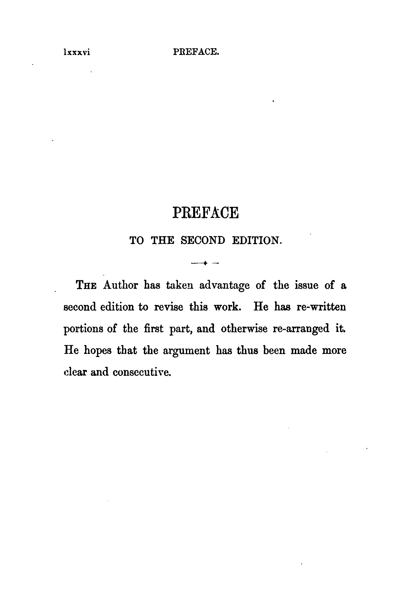 In preparing a complete edition of this work, I have revised it throughout. I have not hesitated to make any alterations, omissions or additions which seemed to me likely to improve it. I have endeavoured as much as possible to avoid presenting openings for side issues, and, with this object, I have softened statements which, however sustainable in themselves, might give rise to discussions apart from the direct purpose of the Inquiry. Wherever my argument has appeared to me either involved or insufficiently expressed I have as freely recast it as my limits permitted, and I have in several parts introduced new data discovered or elaborated since the work was first written, or which I may then have overlooked.