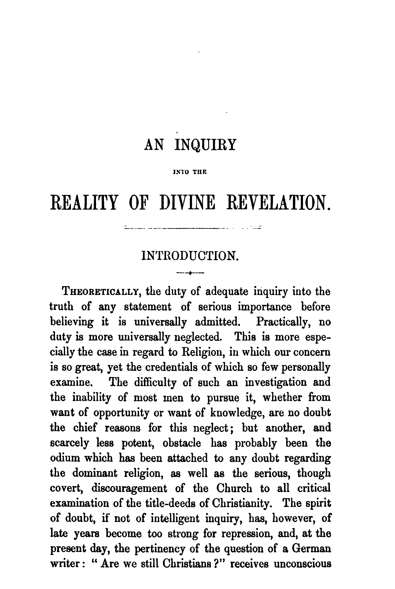 AN INQUIRY INTO THE REALITY OF DIVINE REVELATION.
