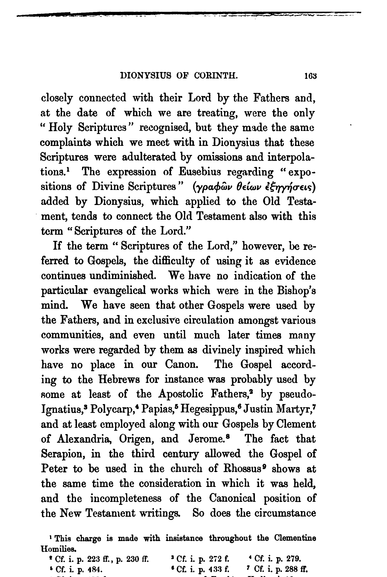 We need scarcely remark that, unless the date at which these Homilies were composed can be ascertained, their value as testimony for the existence of our Synoptic Gospels is seriously affected. The difficulty of arriving at a correct conclusion regarding this point, great under almost any circumstances, is of course increased by the fact that the work is altogether apocryphal, and most certainly not held by any one to have