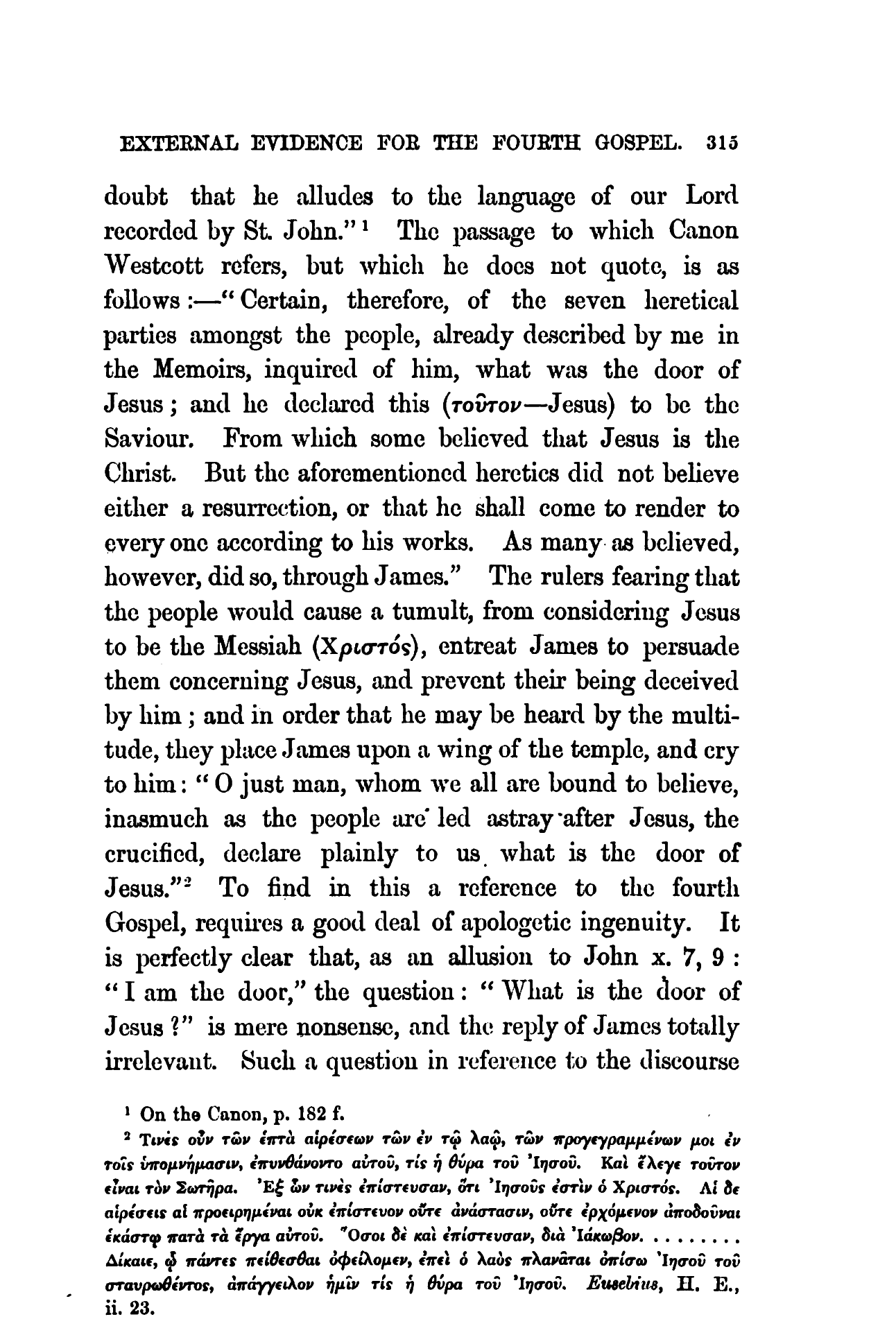 to be from the fourth Gospel. On the Canon, p. 251 f. [In