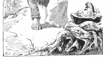 Mowgli, who had never known what real hunger meant, fell back on stale honey, three years old, scraped out of deserted rock-hives—honey black as a sloe, and dusty with dried sugar. He hunted, too, for deep-boring grubs under the bark of the trees, and robbed the wasps of their new broods. All the game in the Jungle was no more than skin and bone, and Bagheera could kill thrice in a night, and hardly get a full meal. But the want of water was the worst, for though the Jungle People drink seldom they must drink deep.