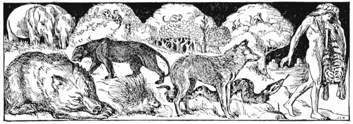 "It is an evil time," said the Black Panther, one furnace-hot evening, "but it will go if we can live till the end. Is thy stomach full, Man cub?"