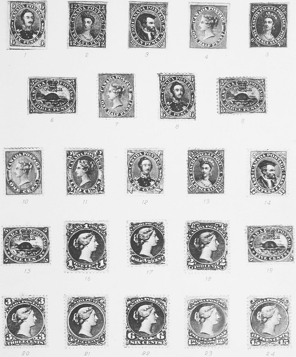This work had its inception in the now popular handbook idea, but in looking over the ground it was soon realized by the author that there was need of and material enough for a much more extended treatment of the subject than could be encompassed in the limits of the usual brochure. Plans were therefore laid for a thorough study of all available material, and in furtherance of this it was found necessary to make a special trip to Ottawa, where, in the library of the House of Commons, is to be found the only complete set available of the Reports of the Postmasters General of Canada. These naturally proved a mine of first hand information which was availed of to its full extent; and in this connection must be expressed the deep appreciation of the assistance rendered the author by his friend M. Henri R. Landry, through whose influence and untiring interest the way was made easy for convenient and rapid examination of these invaluable files. Thanks are also due Mr. Edward Y. Parker of Toronto, for notes and specimens furnished, as well as Mr. A. McKechnie of Ottawa.