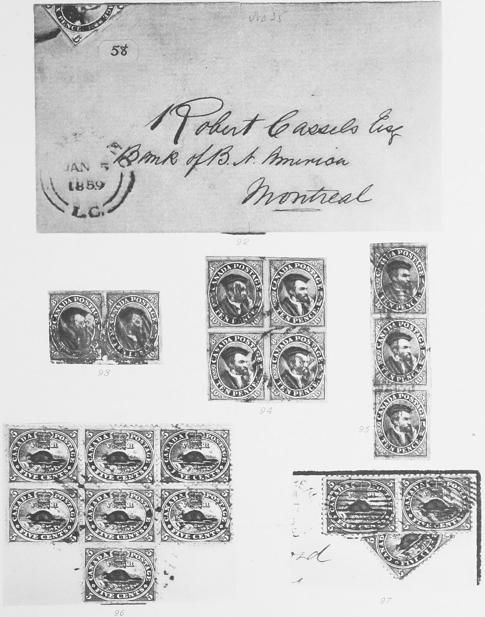 But documents and descriptions are not enough for the thorough study of any subject which concerns tangible objects, and three famous collections were inspected for first hand information upon the stamps themselves. To Mr. Charles Lathrop Pack of Lakewood, N. J., Mr. George H. Worthington of Cleveland, Ohio, and the lamented Mr. John F. Seybold, late of Syracuse, N. Y., are due not only the author's fullest thanks for opportunities freely given to examine their magnificent collections of Canada, but the debt extends to philatelists in general for thus being enabled to share, through study, description, listing and pictorial reproduction, in the results of their specializing. Mr. Pack's wonderful array of rarities, beautiful copies and[Pg 10] remarkable series of shades has been largely used in the compilation of the stamp lists. This collection though since much enlarged and improved, obtained the gold medal at the International Philatelic Exhibition in London, 1906. Mr. Worthington's fine collection has also been used in the same way and has furnished much information concerning plate numbers and marginal imprints. Mr. Seybold's covers were particularly interesting in showing the actual use of the stamps, the cancellations employed, and various other features to be gleaned from the study of original covers, particularly of early date. Selections for illustrative purposes were made from all three collections, as will be noted.