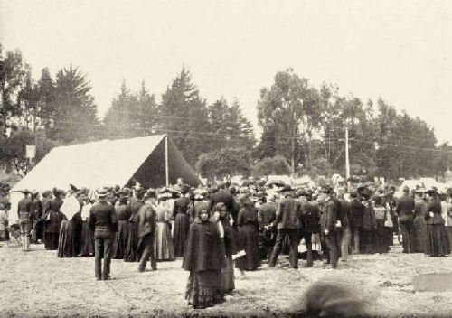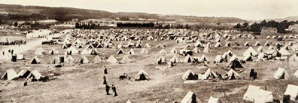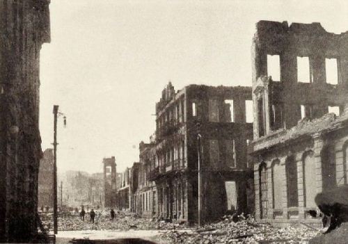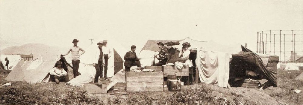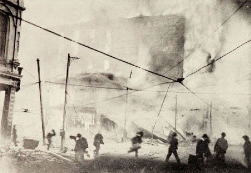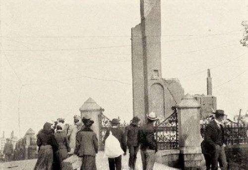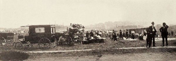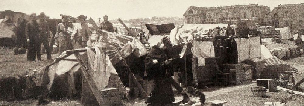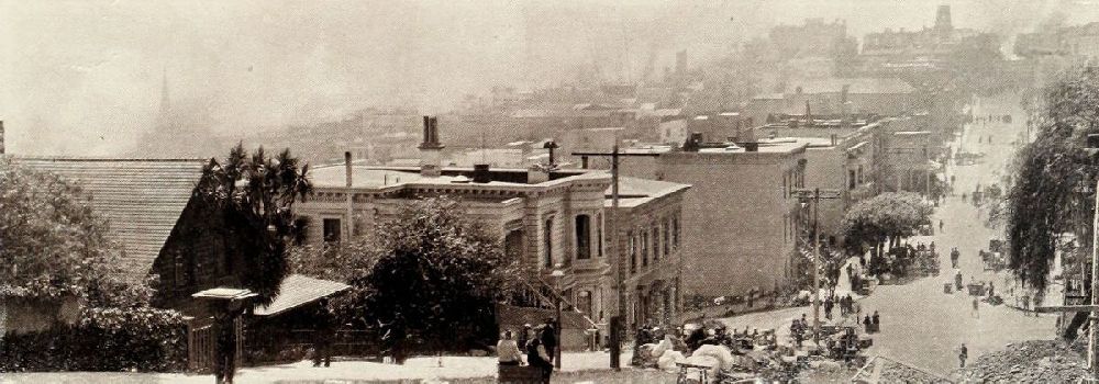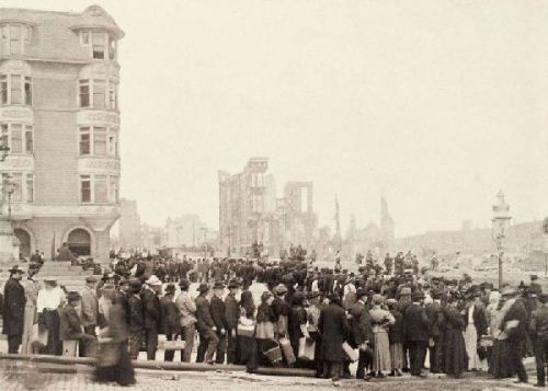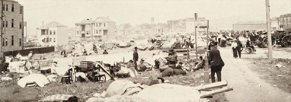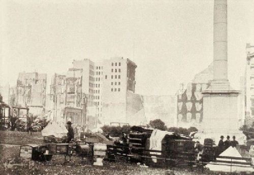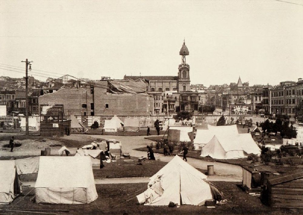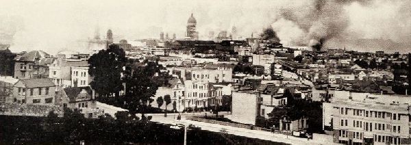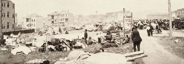 Aided, ordered and guarded by the United States Army and Marine forces, assisted by the California National Guard, who were at once called out by the Governor, George C. Pardee, the excited and frenzied San Franciscans made their way to squares, parks and the open hills, over two hundred thousand fleeing to these places of refuge and another hundred thousand making their way by ferry-boats and other craft across the bay to the cities of Berkeley, Oakland and Alameda, caring for naught except to get away from the awful havoc and destruction of the place they once proudly called their City.