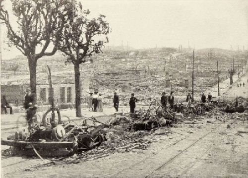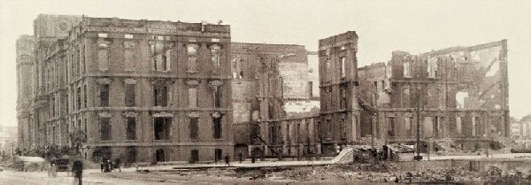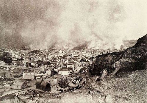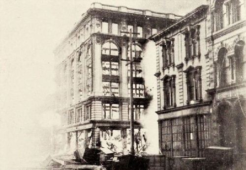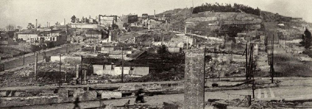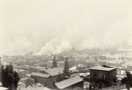 In three days, which seemed only as so many hours, there faded out of existence noble business blocks, grand and imposing structures, beautiful and superb residences the homes of the Argonauts, the sea kings, mining barons and merchant princes, together with the marts and dwellings of those who toil and delve and go down to the sea in ships, completely desolating and razing by fire three-fourths of this once beautiful metropolis of the whole Pacific Coast on either the northern or southern continents.