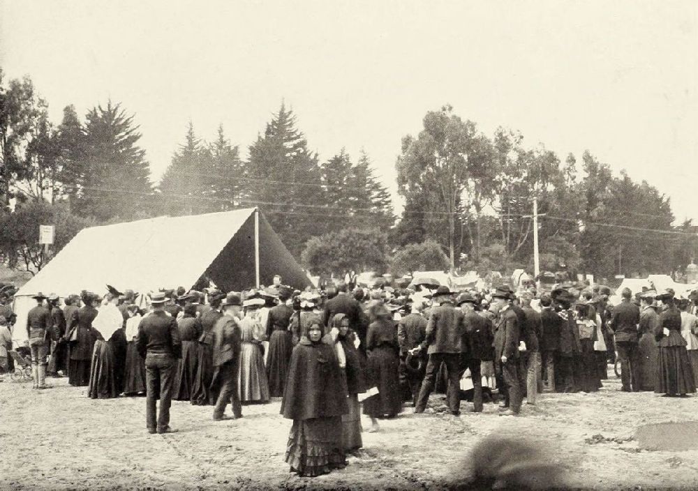 On the cessation of the first quake and the breaking out of the flames all means of surface transportation was rendered useless, except the automobile, which did good and swift work in rescuing the wounded and carrying the living to places of safety, as well as transporting dynamite and other high explosives to the busy fire-fighters, also rendering invaluable aid in getting food and water to the refugee camps in the parks, when the relief trains, so generously and beneficiently forwarded by all the cities of the land, began to arrive laden with provisions and clothing for the hungry and the destitute. The sister city, Los Angeles, which by her nearness was enabled to supply physicians, nurses and medical supplies, as well as foodstuffs, getting the first relief train to the stricken city on the night of the first day.