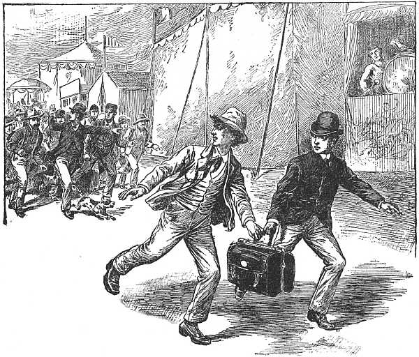 "I can have the right to run what I want to,[11] every day the fair lasts, for ten dollars, an' now, if you lend me fifteen, I'll be all right," the boy cried as he burst into Nathan Hargreaves' store, just as the old gentleman was adding a trifle more sand to the sugar, in order to compensate for what might possibly have been spilled by the careless clerk.