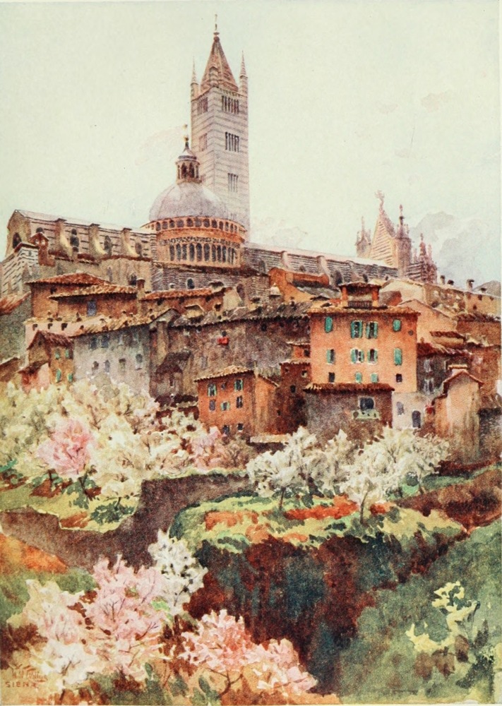 THE cathedral cities of Italy, the heir of all the ages in art, are as full of enchantment to the lover of architecture as to the poet, the painter, and the historian. Side by side with the great churches that give them their crowning splendour are the public buildings, universities, palaces, and fountains that tell the story of the glorious past, and form the best monument of their great creators. These architectural jewels are often set amidst scenes of great natural beauty, which relieve and enhance the perfection of their art. Every traveller in Italy will recall the emotion with which he first saw Rome rising from the green stretches of the Campagna, recognised the domes and campaniles of Florence, or lifted up his eyes to one of those towered "cities set upon an hill, which cannot be hid"—Siena, Perugia, or Orvieto. Among the many appeals which Italy makes to æsthetic appreciation is that of infinite variety. In no country are the different styles and periods so wonderfully exemplified. Here we may range from Rome and Verona, with their relics of the antique world—amphitheatres, temples, and thermæ—to the Byzantine glories of Ravenna and Venice, the Romanesque grandeur that finds typical expression in the cathedral of Pisa, and thence to the manifestations of that Gothic art which, though it was alien to the climate and character of Italy and so struck no deep roots into the soil, intervened between Romanesque architecture and that of the Renaissance as a brilliant episode, and finds stupendous expression in the thousand pinnacles of Milan.