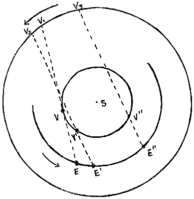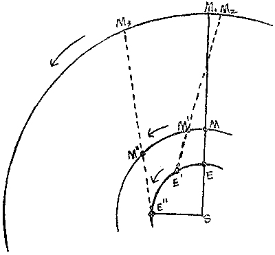 According to the Ptolemaic system the earth is a motionless sphere fixed at the center of the universe. It can have no motion, for there must be some fixed point in the universe to which all the motions of the heavenly bodies may be referred; if the earth had motion, it was argued, this would be proportionate to the great mass of the earth and would cause objects and animals to fly off into the air and be left behind. Ptolemy believed this reason sufficient to make untenable the idea of a rotatory motion of the earth, although he was fully aware that to suppose such a motion of the earth would simplify exceedingly the representations of the celestial movements. It did not occur to him that to suppose the earth’s atmosphere to participate in its motion would obviate this difficulty. The earth was but a point in comparison with the immense sphere to which the stars were attached and which revolved about the earth once in every twenty-four hours, imparting its motion to sun, moon, and planets, thus causing day and night and the rising and setting of the heavenly bodies. The irregular motions of the planets were accounted for by supposing them to move on circles of small spheres called ‘epicycles’, the centres of which moved around the ‘deferents’, or circles of large spheres which carried the planets in courses concentric to the star sphere. By giving each of the planets an epicycle and deferent of the proper relative size and velocity the varied oscillations of the planets, as far as they could be followed by means of the simple instruments then in use, were almost perfectly accounted for.