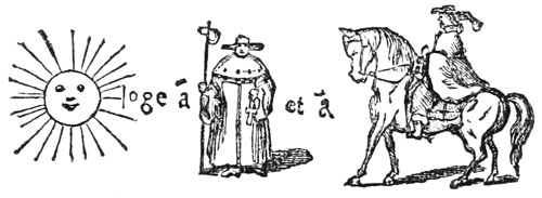 En effet, outre le carré de fer-blanc, orné de découpures à jour, qui grinçait au moindre vent, au bout d'une tringle terminée par un croissant doré, carré de fer-blanc qui représentait le Grand-Turc, orné d'une barbe du ponceau le plus éclatant, ce qui justifiait ce nom étrange de l'hôtellerie de la Barbe Peinte, on pouvait, sur la façade de la maison et au-dessus de la porte d'entrée, lire le rébus suivant: