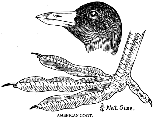 Toes four with lobate webs; tipped with a broad nail; tail wanting.