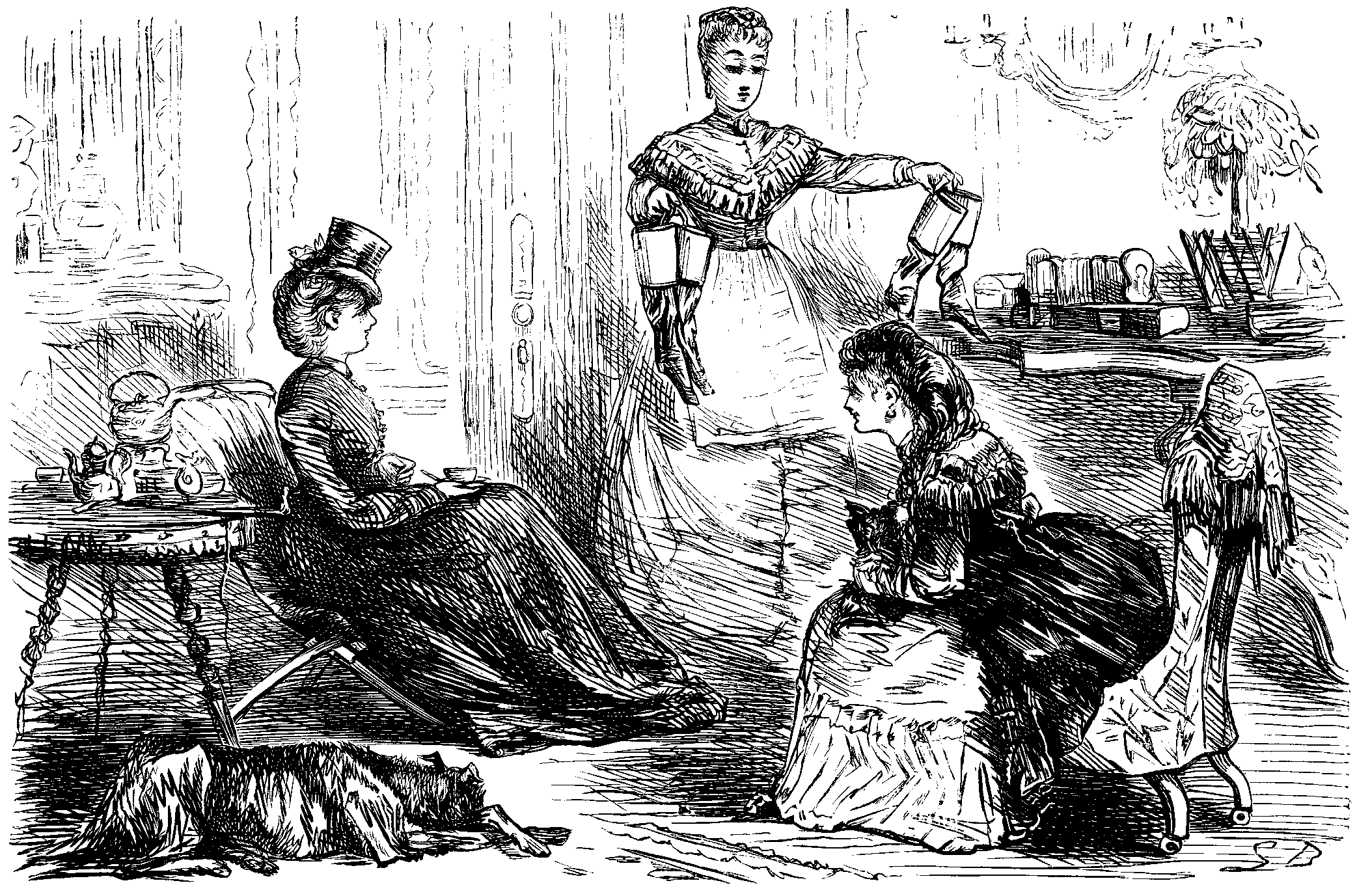 Monday, May 11. Received, by appointment, a deputation from the electors of New Marylebone, inviting me to candidate that District at the next General Election. Mrs. Admiral Stenterton, and Miss Lydia Boss Wolloby, the dominant spokeswomen. Spread out my views on the Husbands' Regulation Movement, the Cigar-Tax, the Compulsory Inspection of Men's Clubs, and the Repudiation of the National Debt. All satisfactory, and I agreed to retire from Jutley. Deputation luncheoned with me. No place kept for Alfred, who had to sit at a side-table.