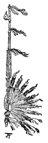 The "war bonnet," worn by the leading warriors, was a headdress of skins and feathers, which trailed down the back and often to the ground, and was highly picturesque. Add to this, the general habit of tattooing, or, on ceremonial occasions, of fantastically, often hideously, painting the face and neck and breast in blue, black, and red, and one can well imagine that an Indian village, on a fête day, or at other times of popular excitement, presented a striking scene.