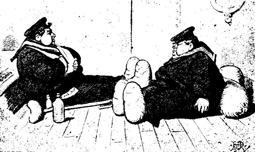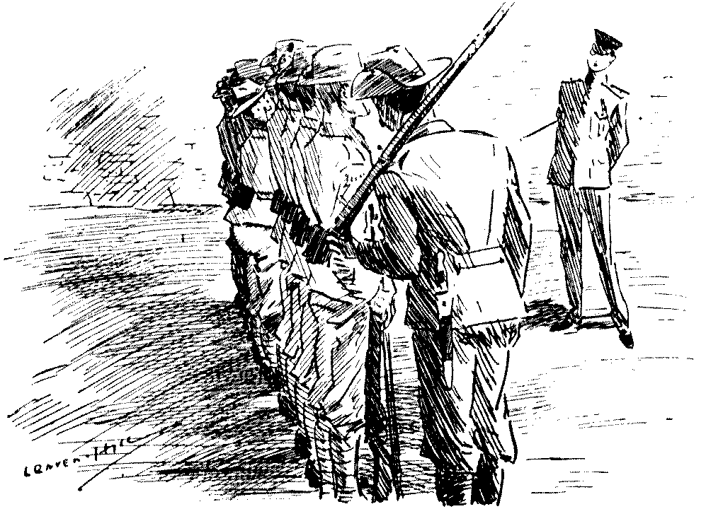 Orderly Sergeant (to officer). "Beg your pardon, sorr, but 'm wan ration short. Who will I give it to?"
